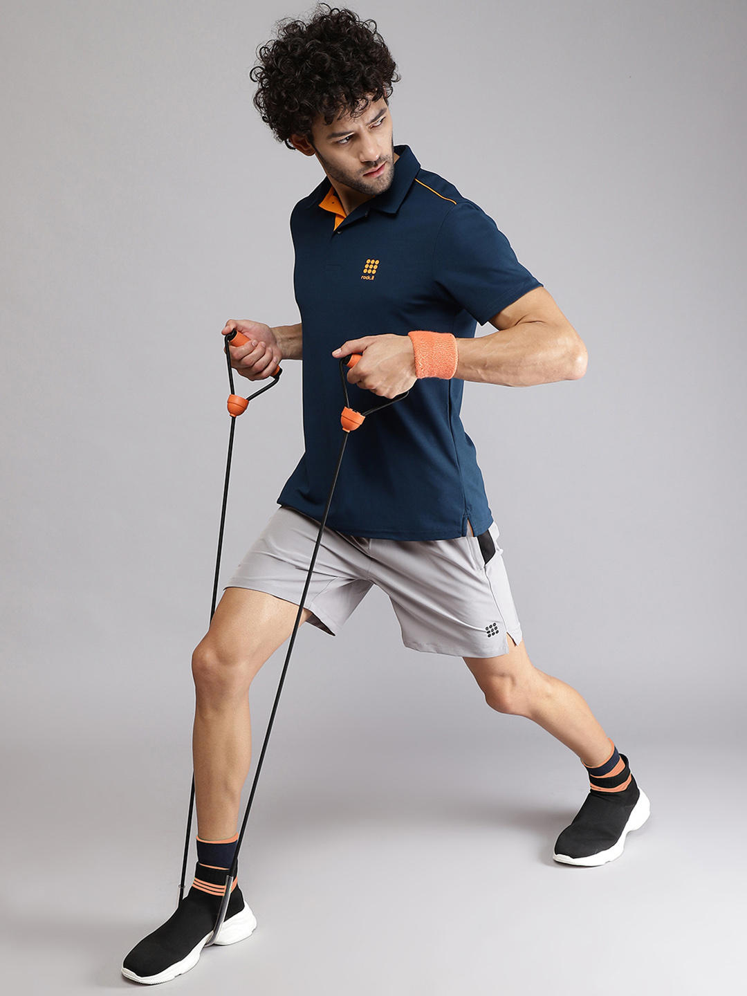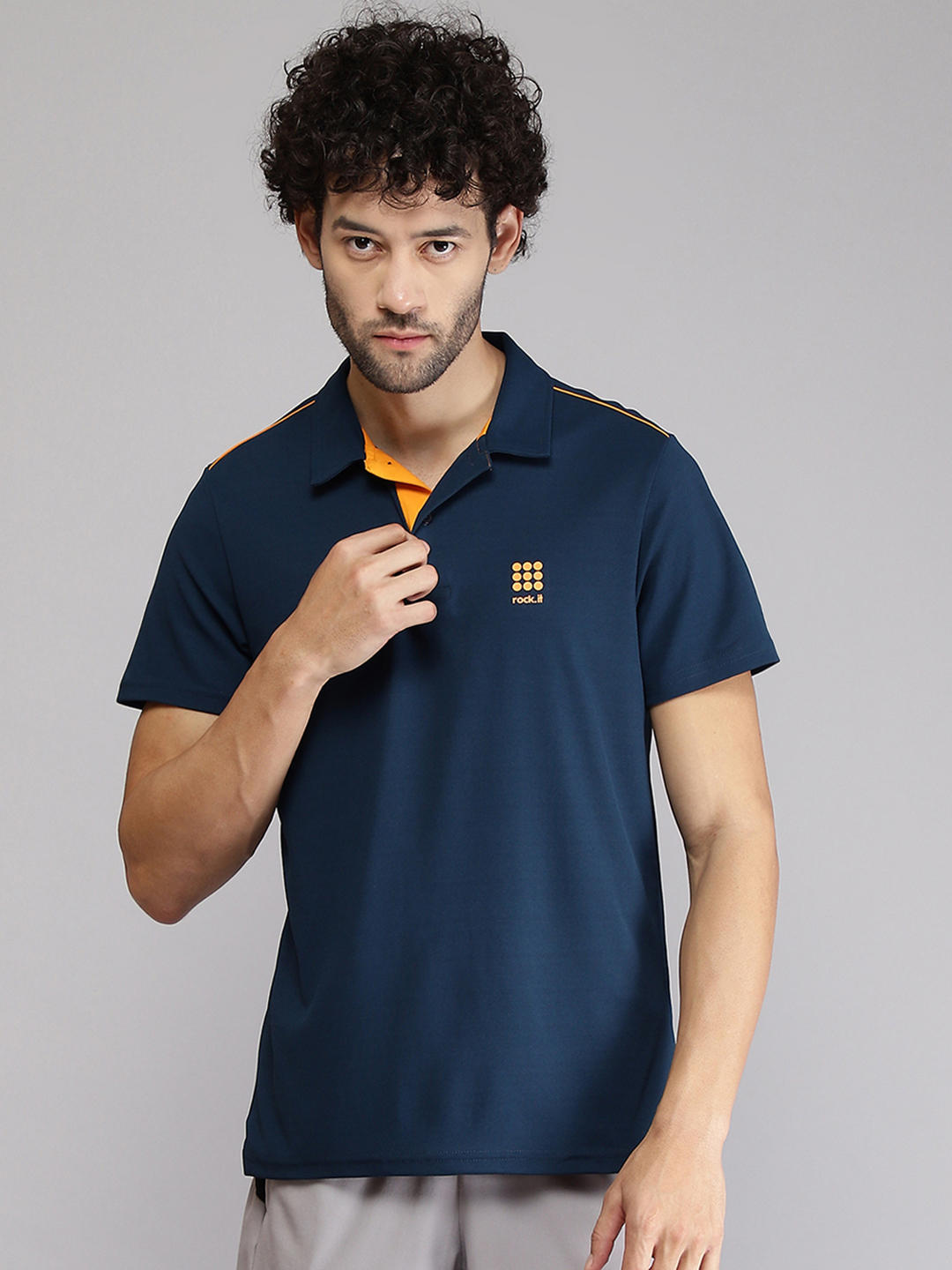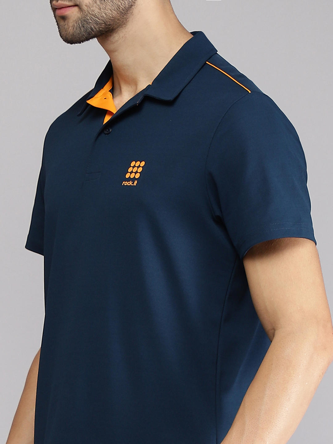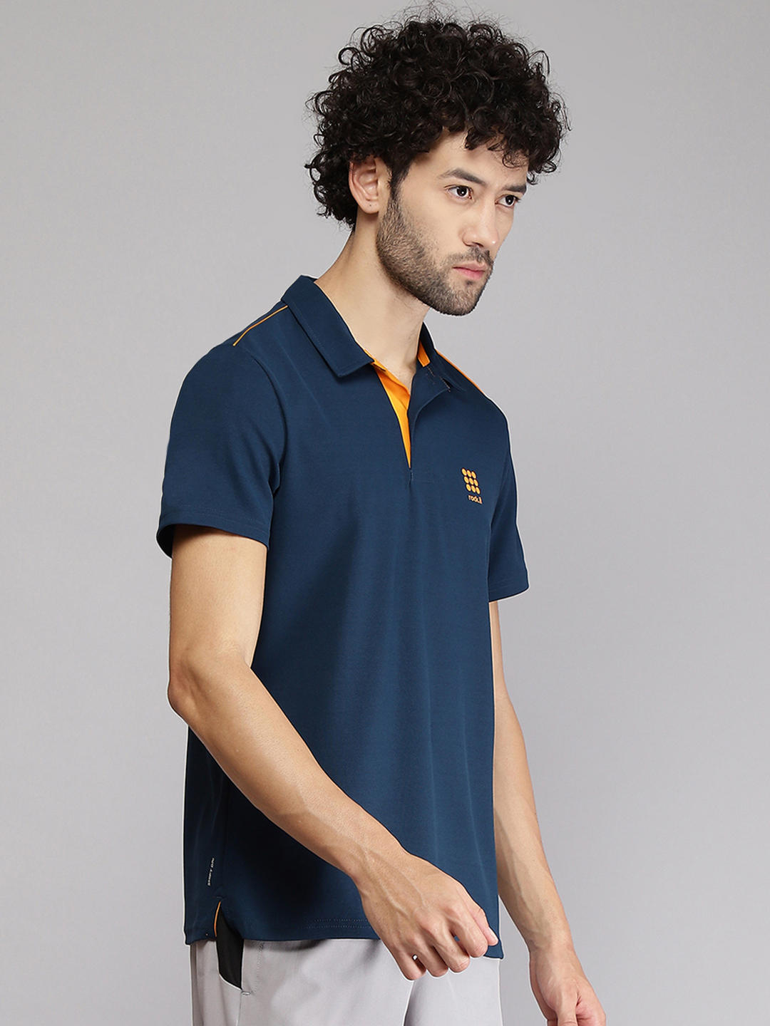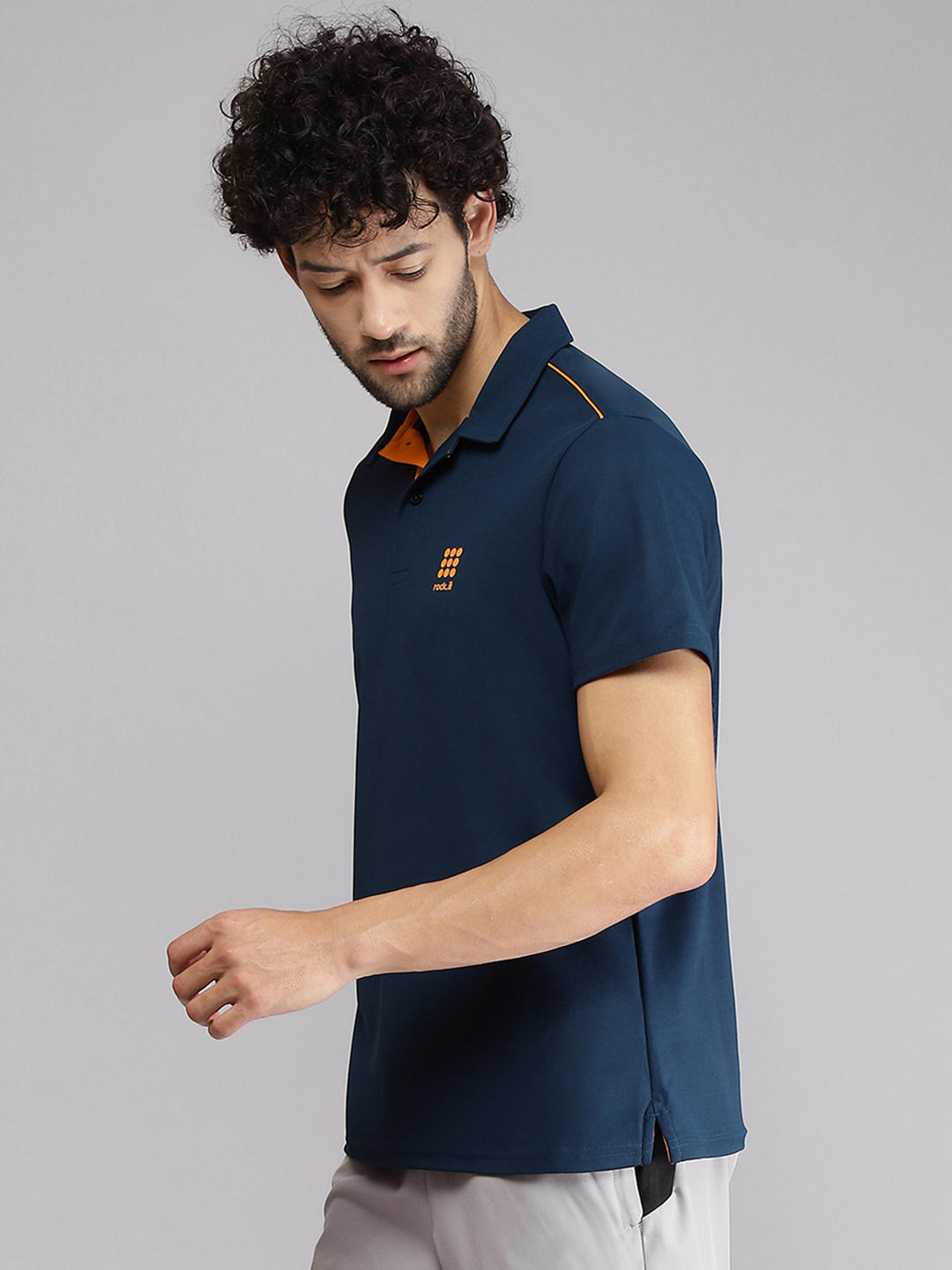 - Mens Polyester Blend Teal Solid Collar T-Shirt