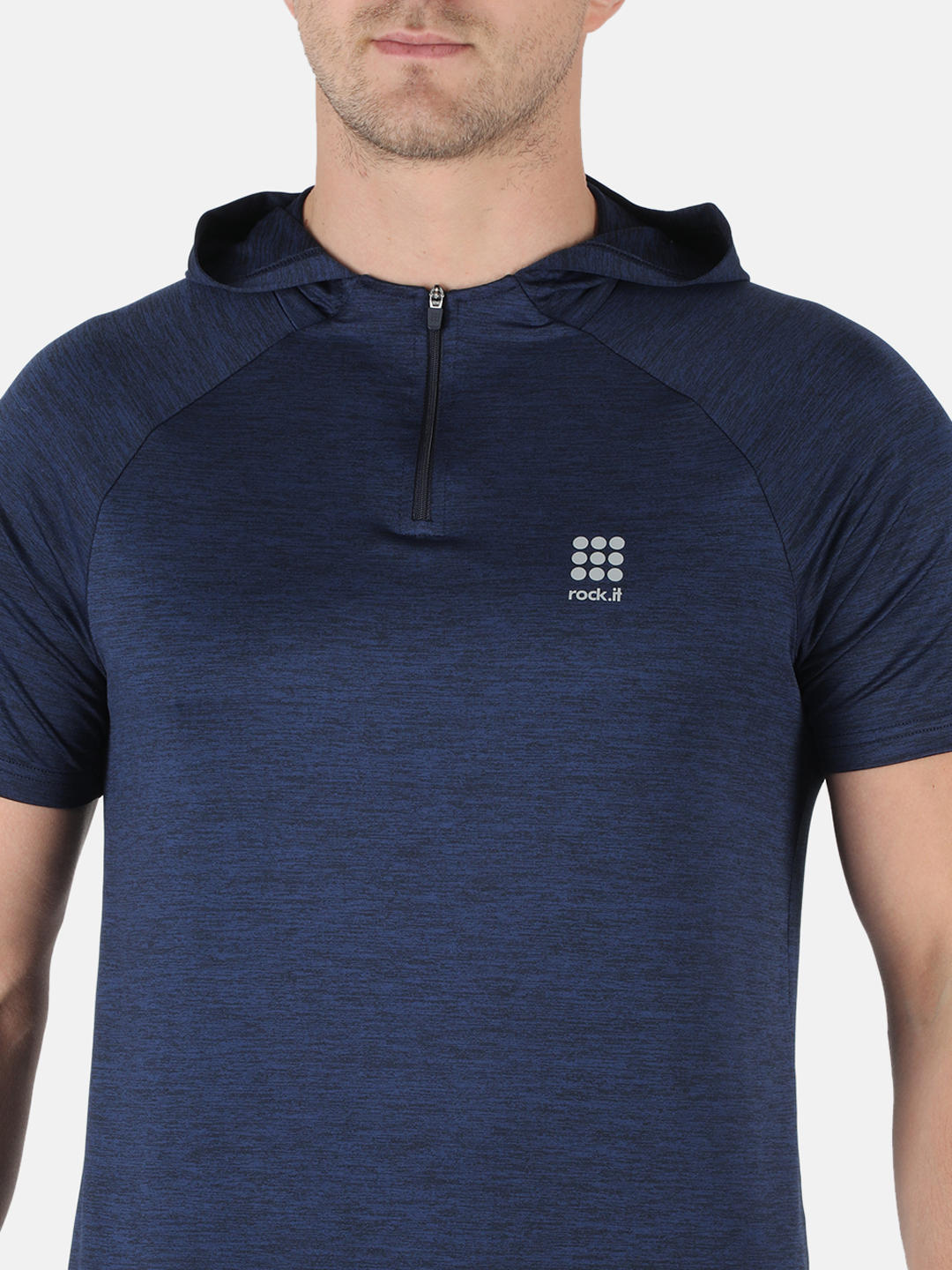 - Men Navy Hood Smart Fit Half Sleeve T-shirt
