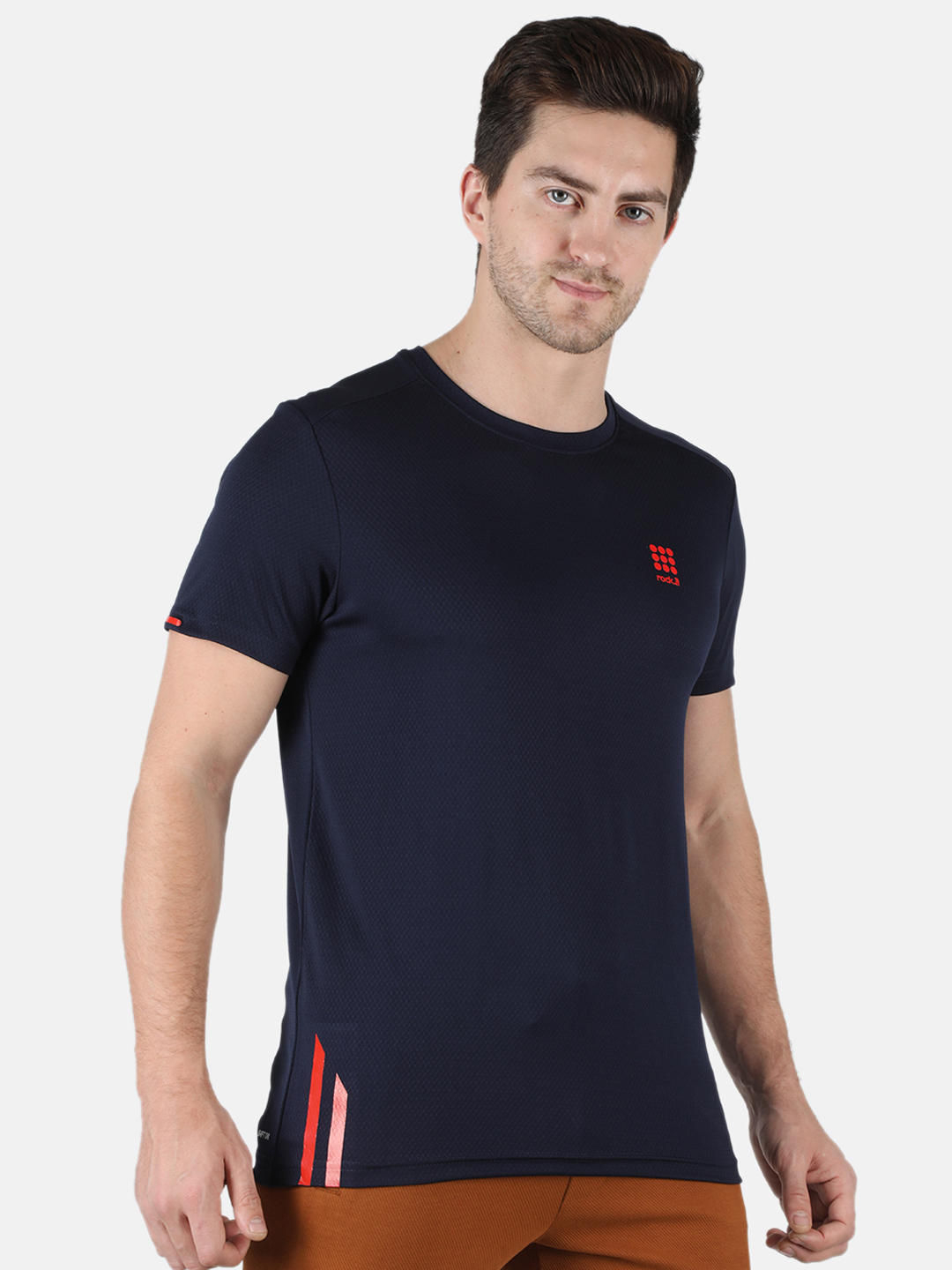 - Men Navy Round Neck Regular Fit Half Sleeve T-Shirt