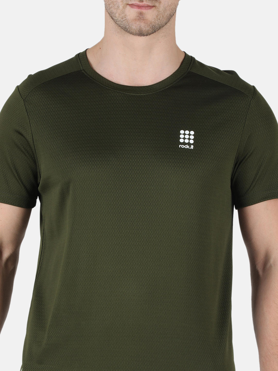 Men Olive Round Neck Regular Fit Half Sleeve T-Shirt