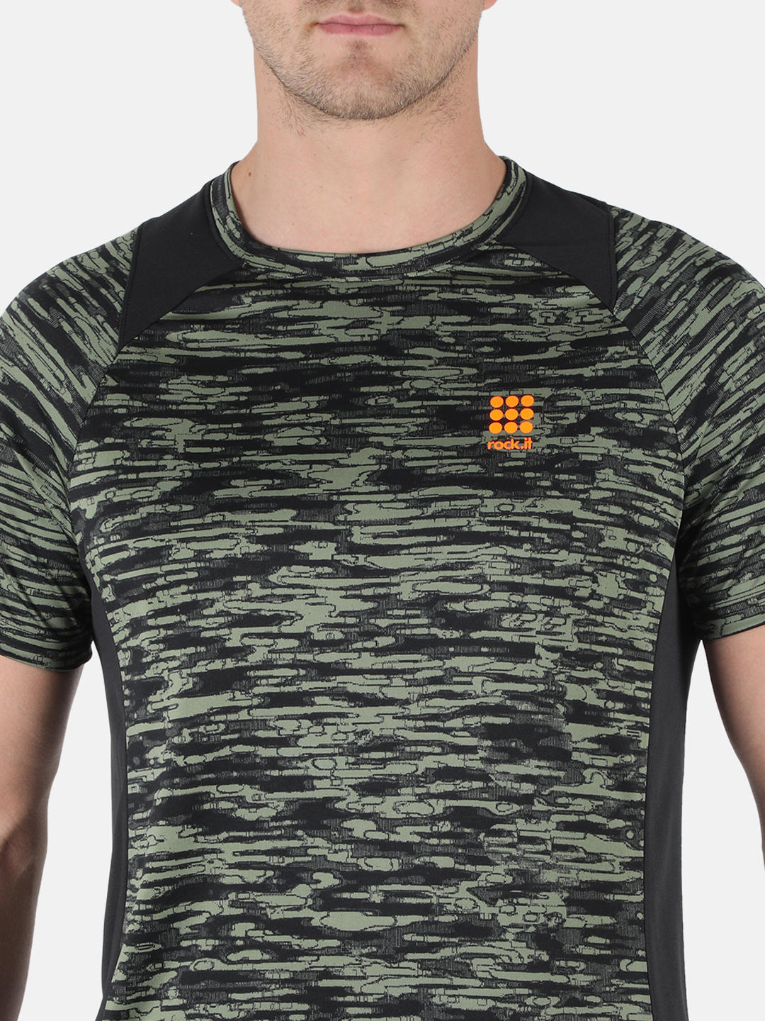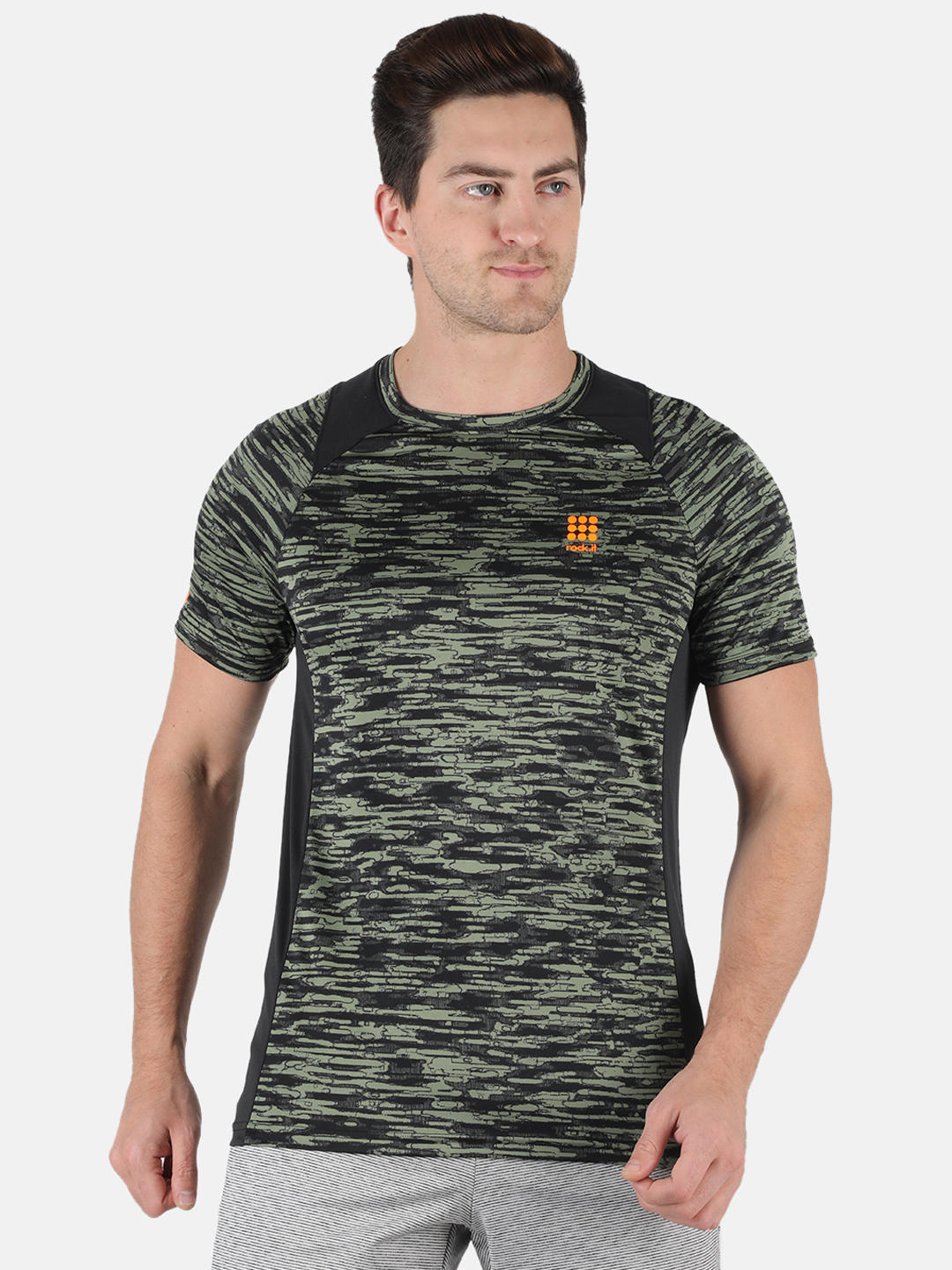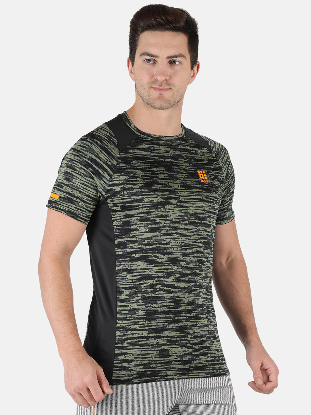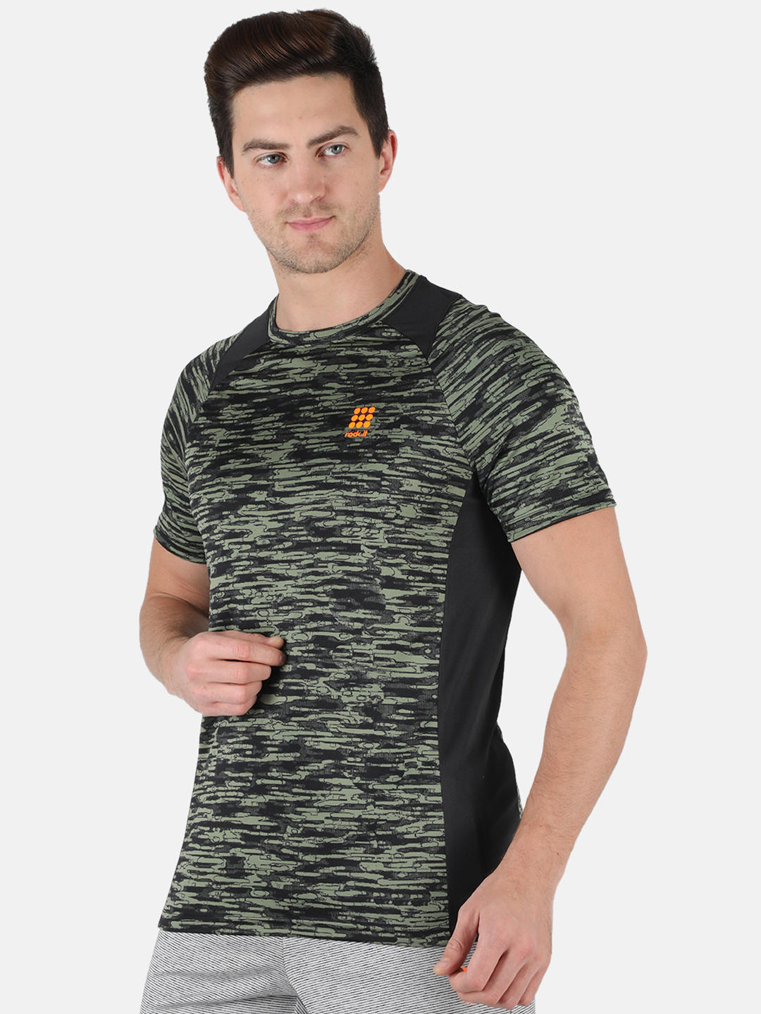Men Olive Round Neck Smart Fit Half Sleeve T-shirt