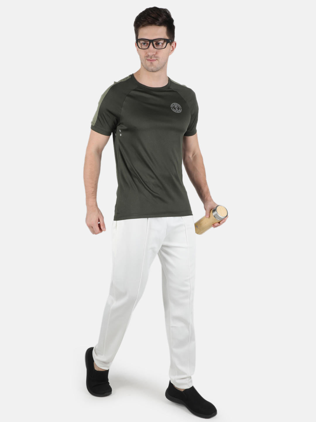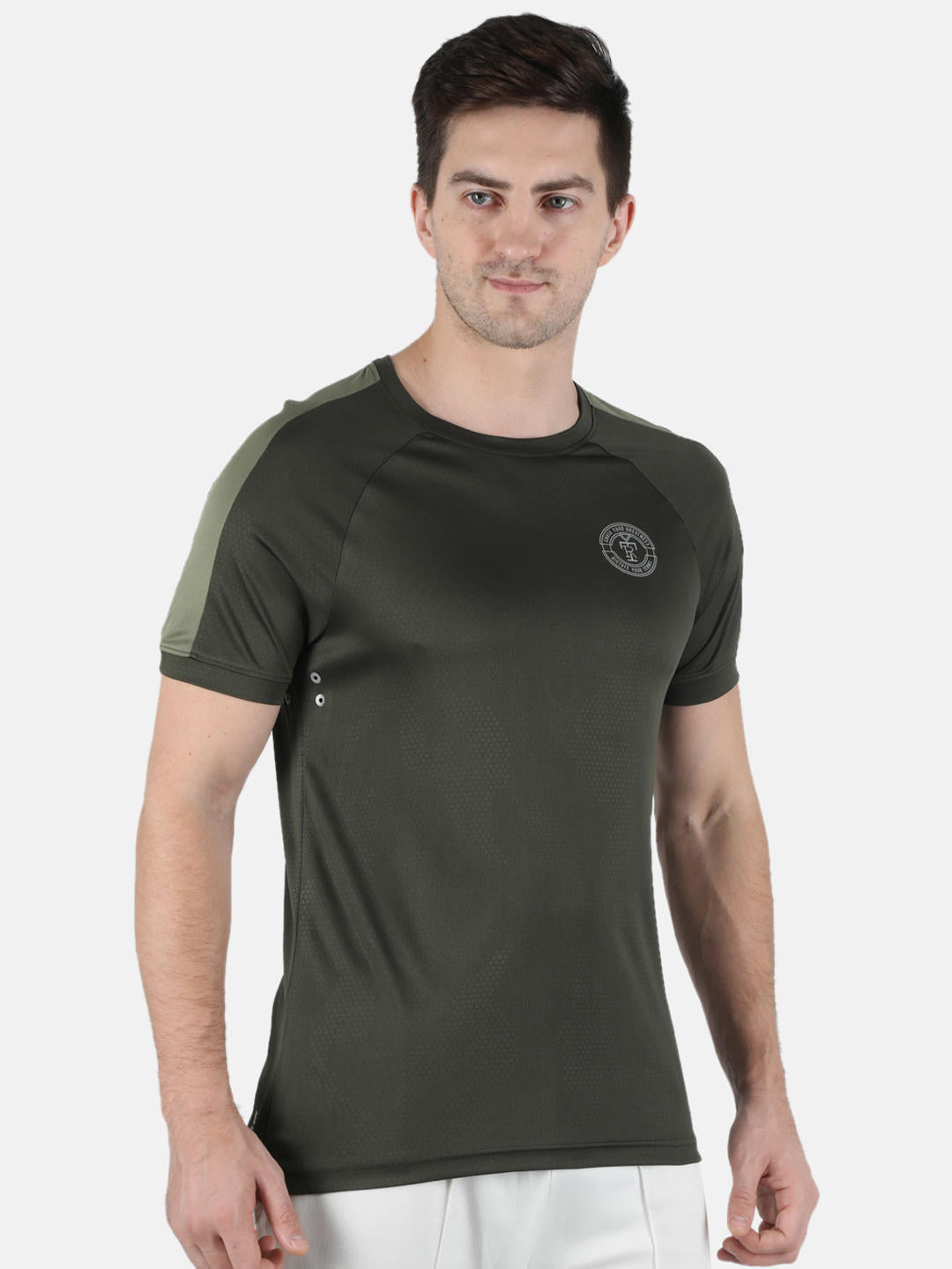 - Men Olive Round Neck Smart Fit Half Sleeve T-Shirt