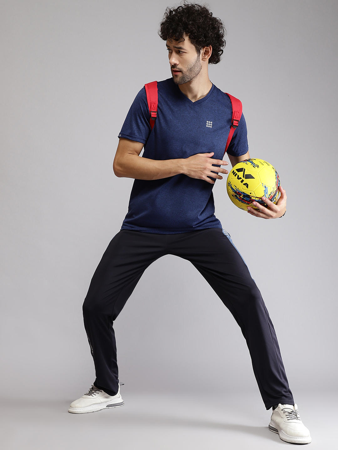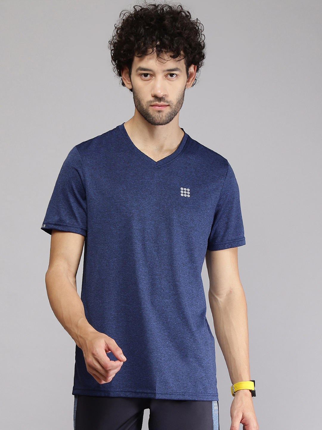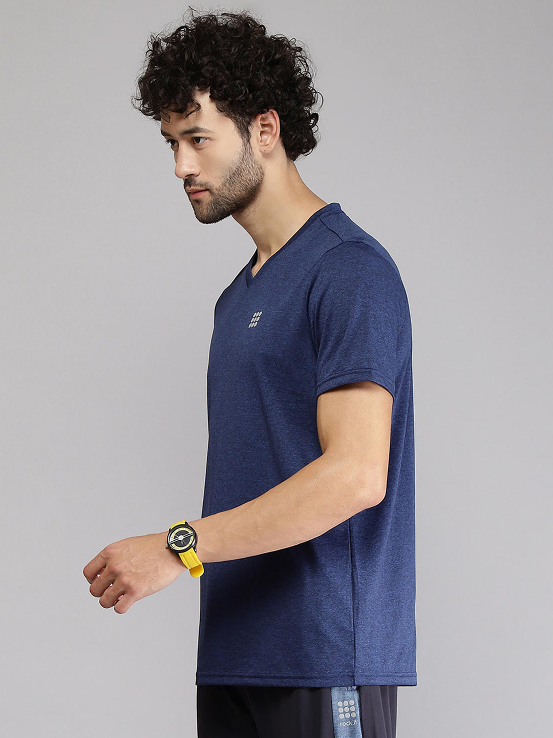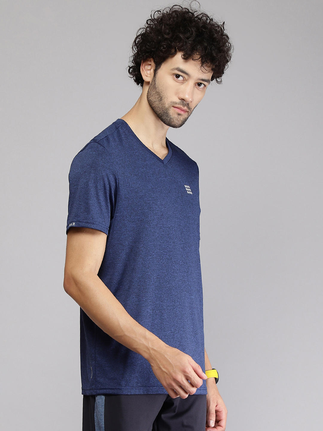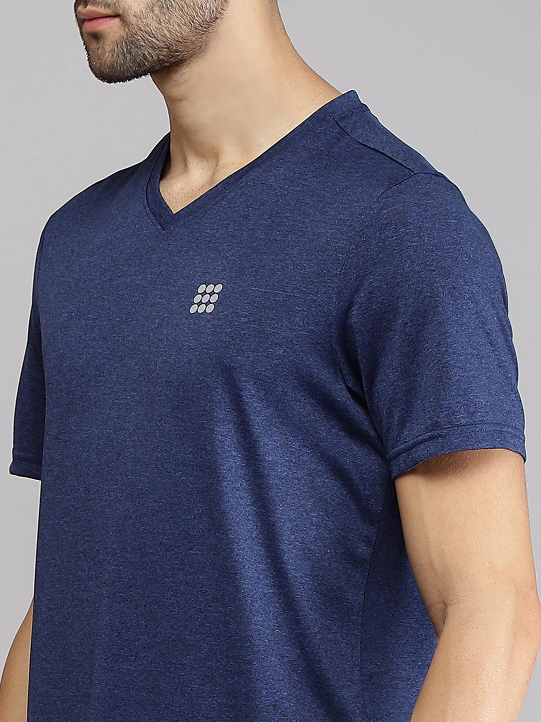 - Men Polyester Blend Blue Solid V Neck T-Shirt