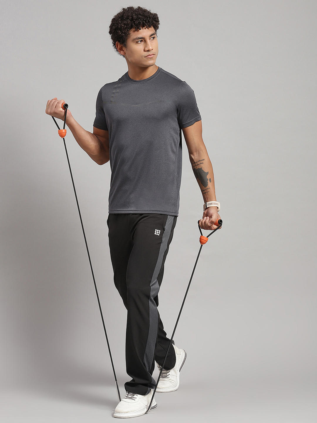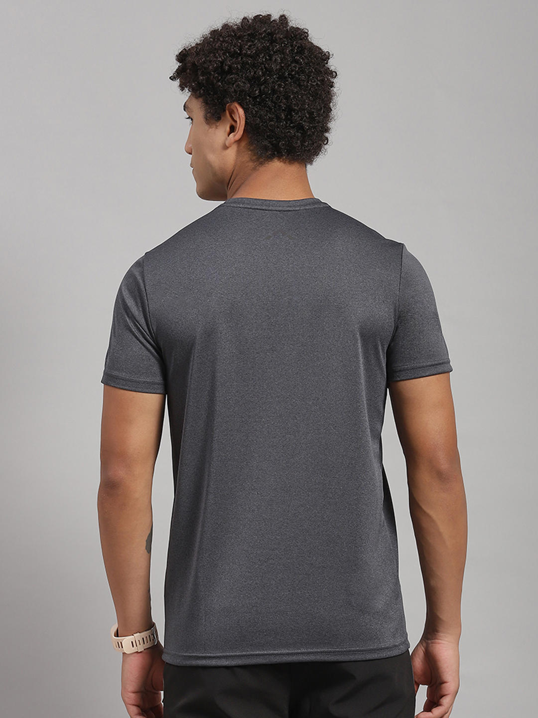 - Men Polyester Blend Charcoal Solid T-Shirt