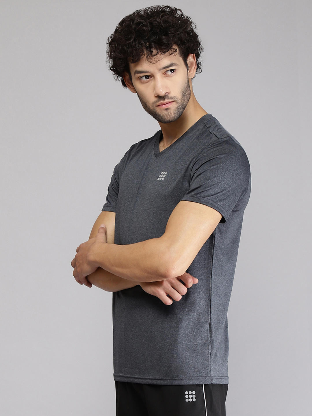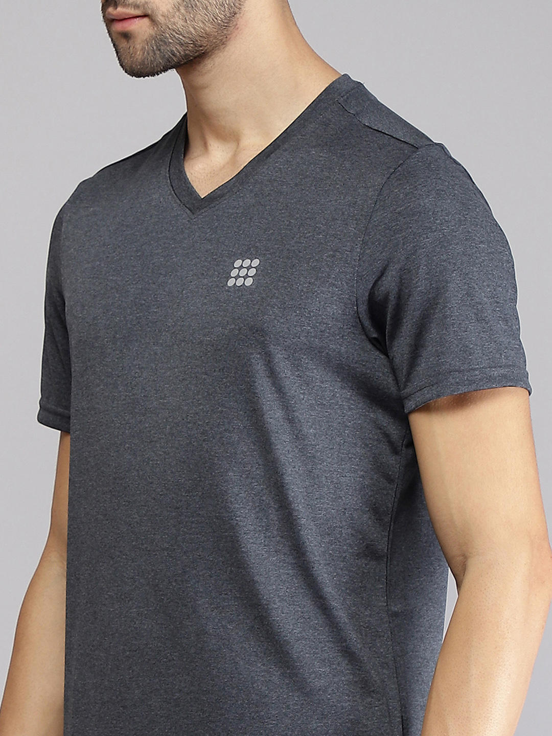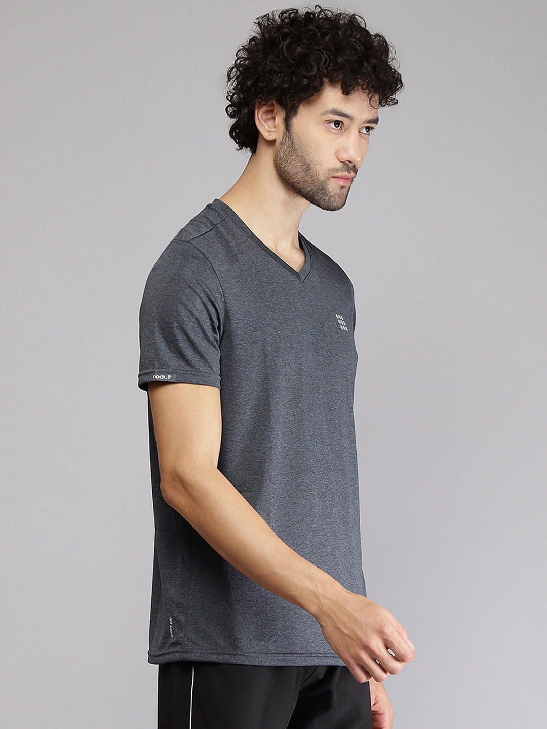 - Men Polyester Blend Charcoal Solid V Neck T-Shirt