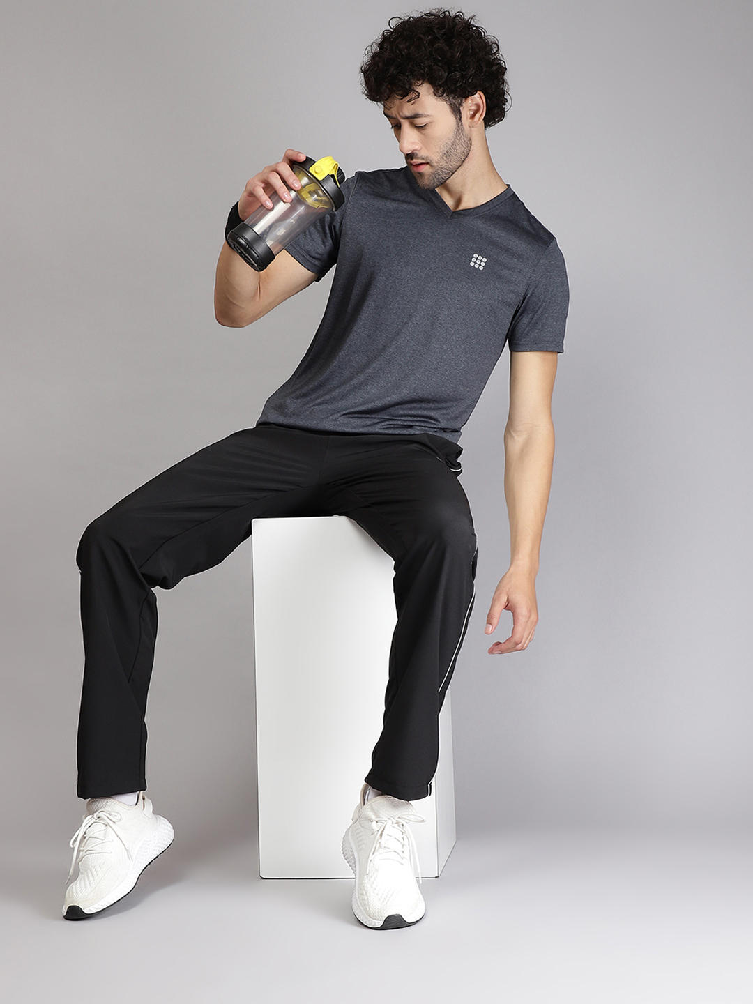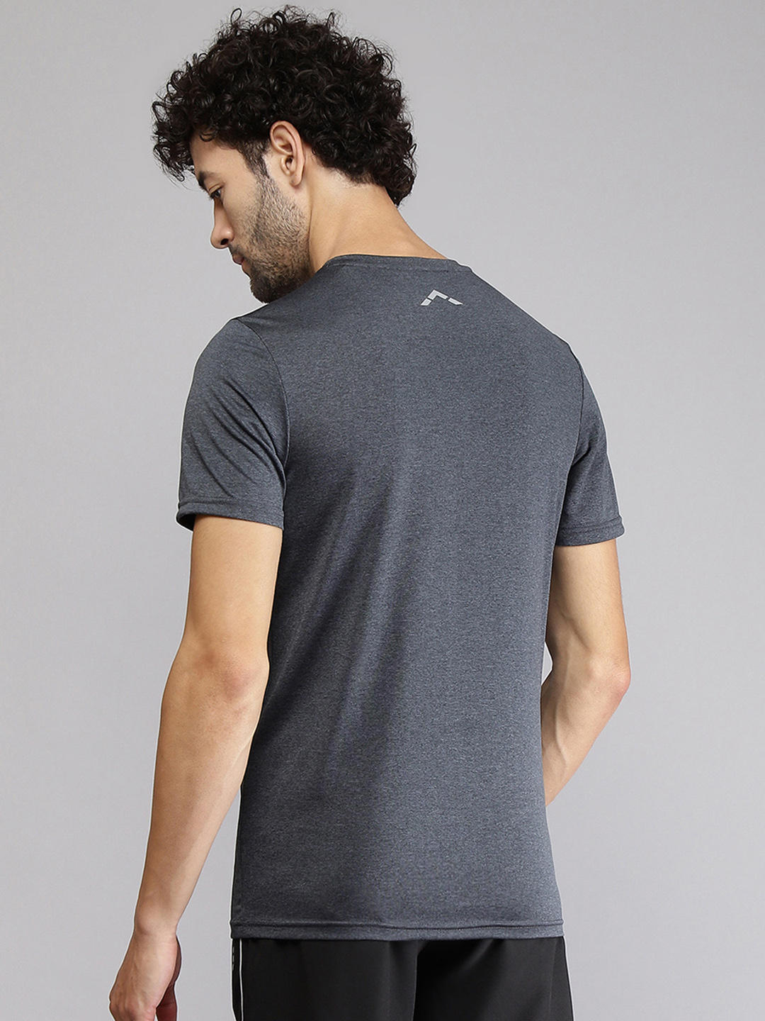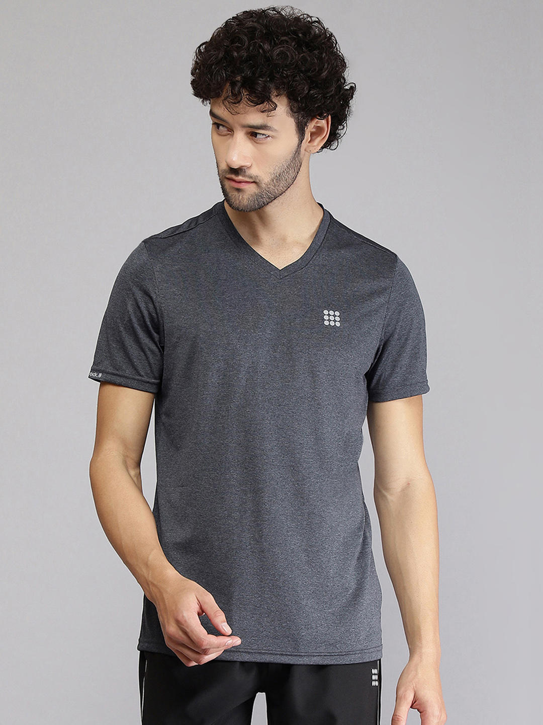 - Men Polyester Blend Charcoal Solid V Neck T-Shirt