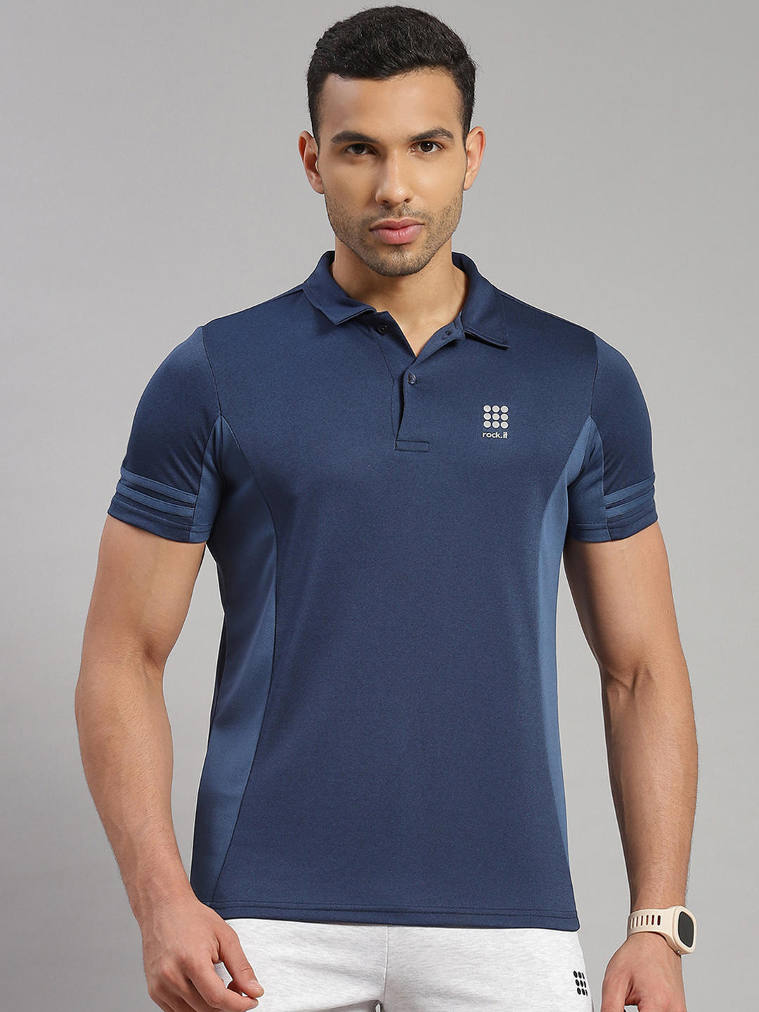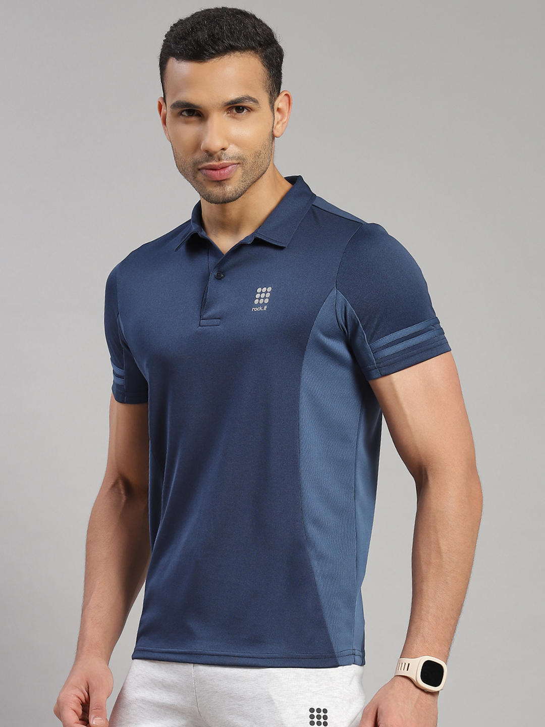 - Men Polyester Blend Collar T-Shirt