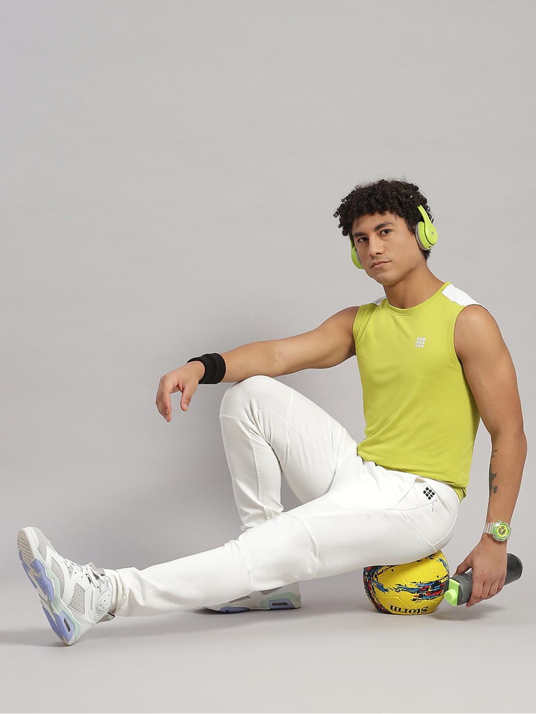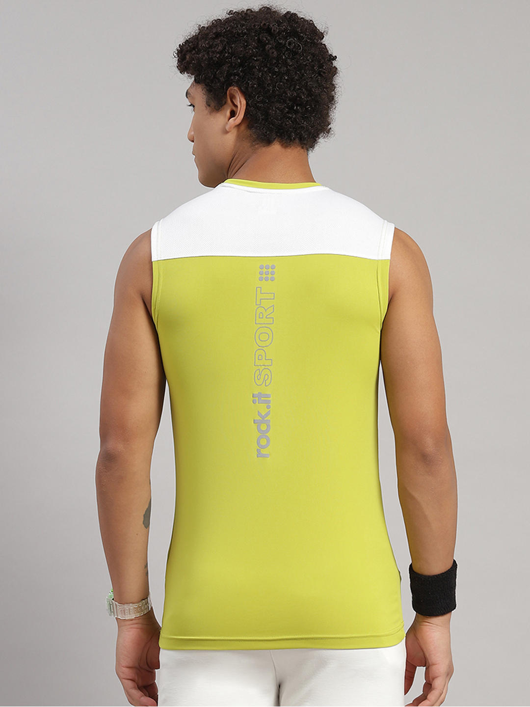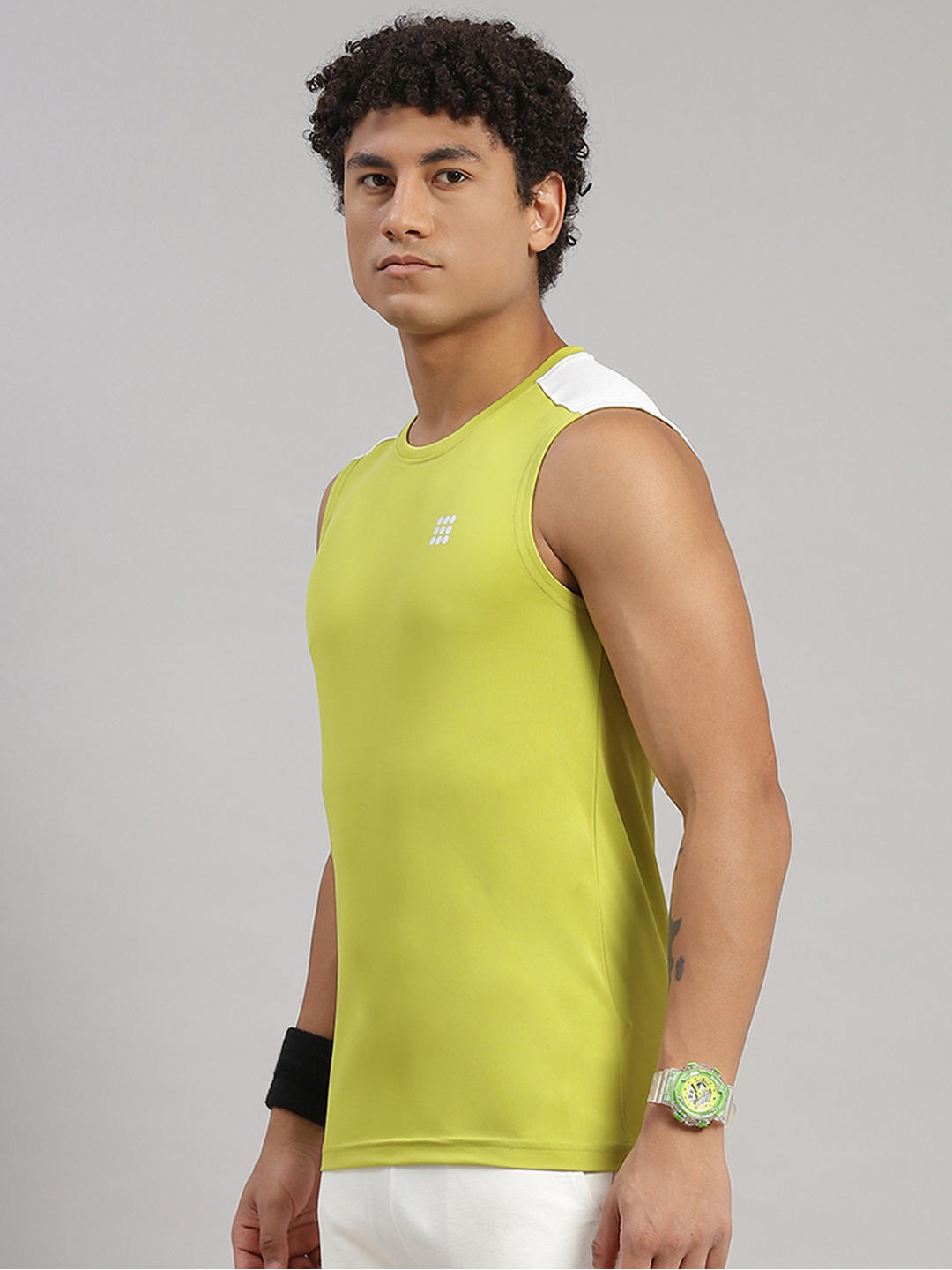 - Men Polyester Blend Lime Green Solid T-Shirt