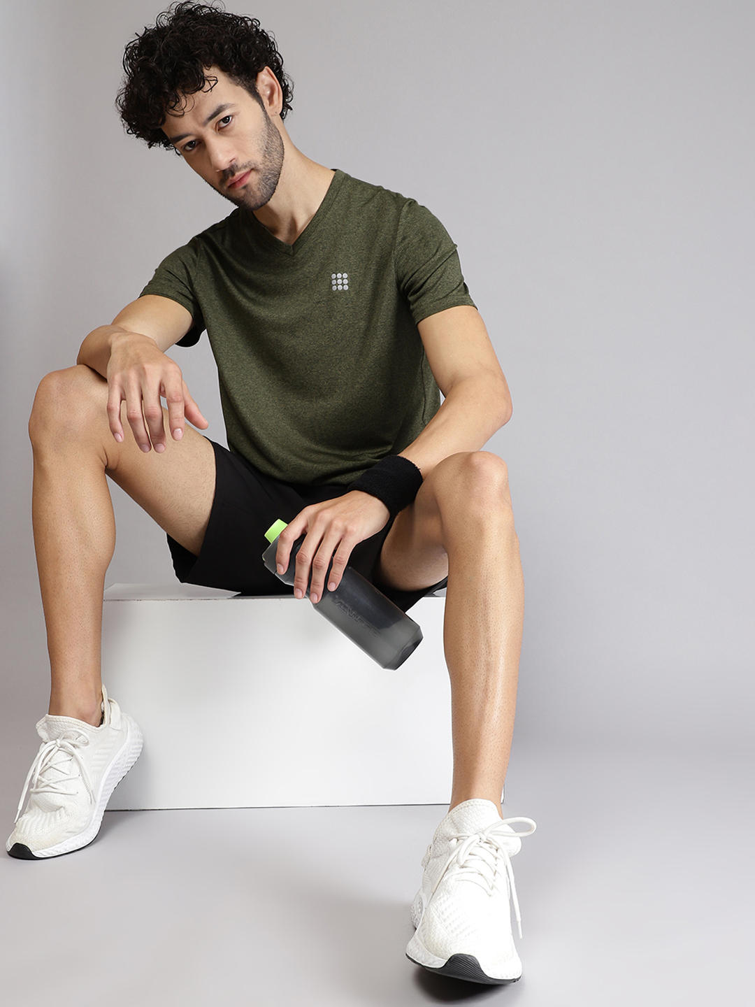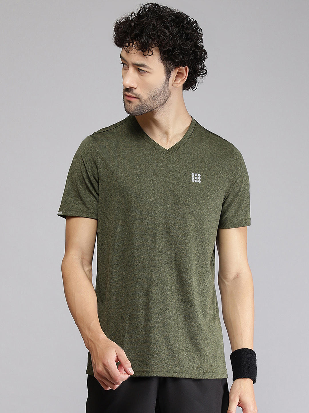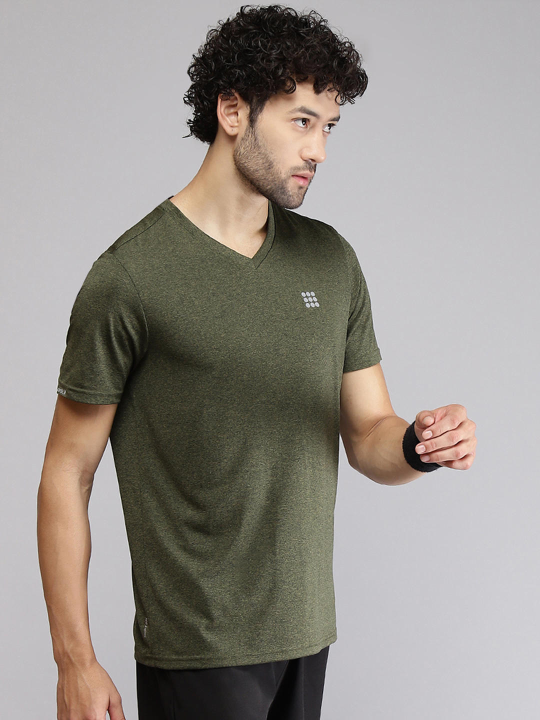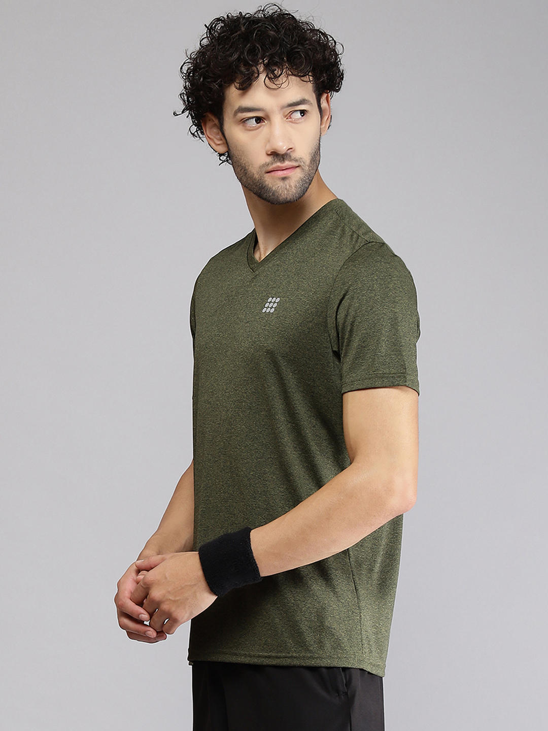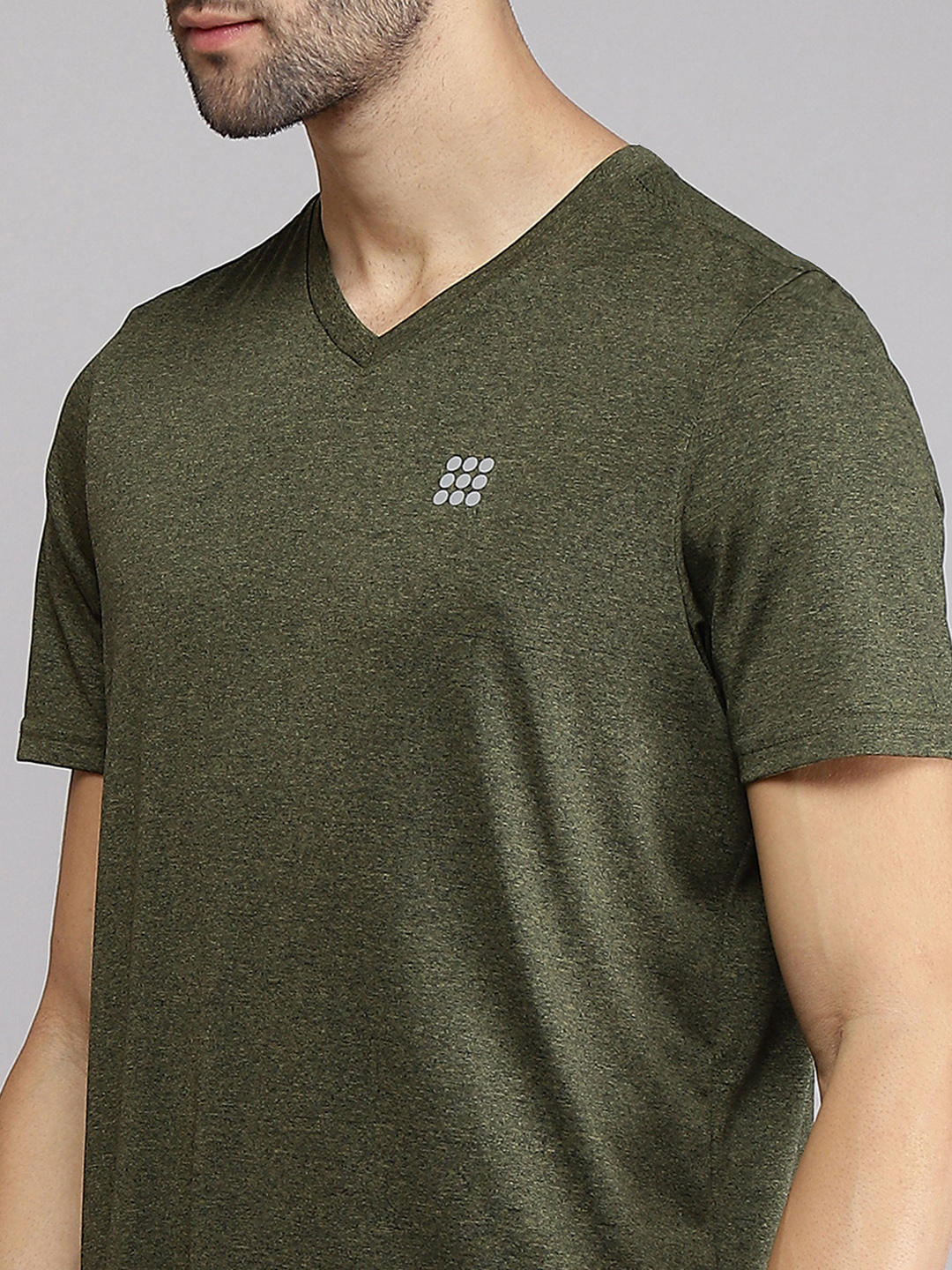 - Men Polyester Blend Olive Solid V Neck T-Shirt