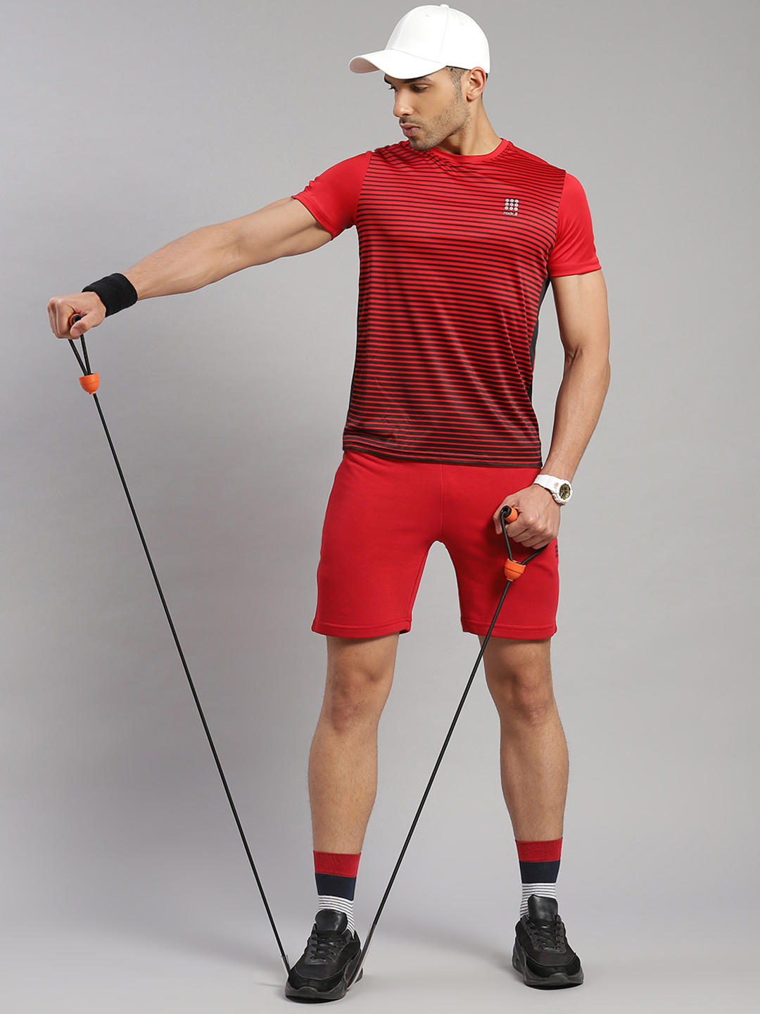 - Men Polyester Blend Red Printed Round Neck T-Shirt