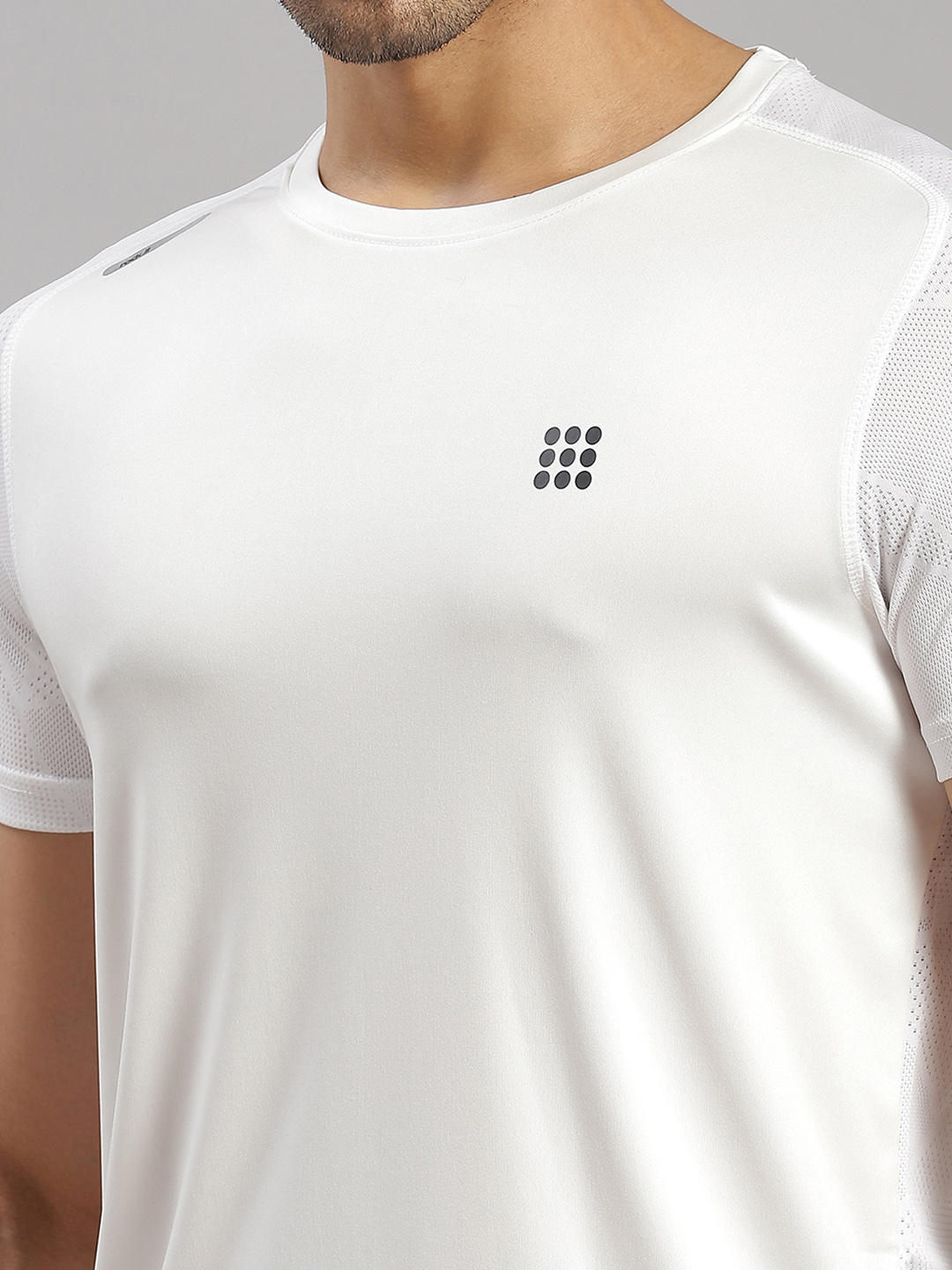 - Men Polyester Blend White Self Design Round Neck T-Shirt