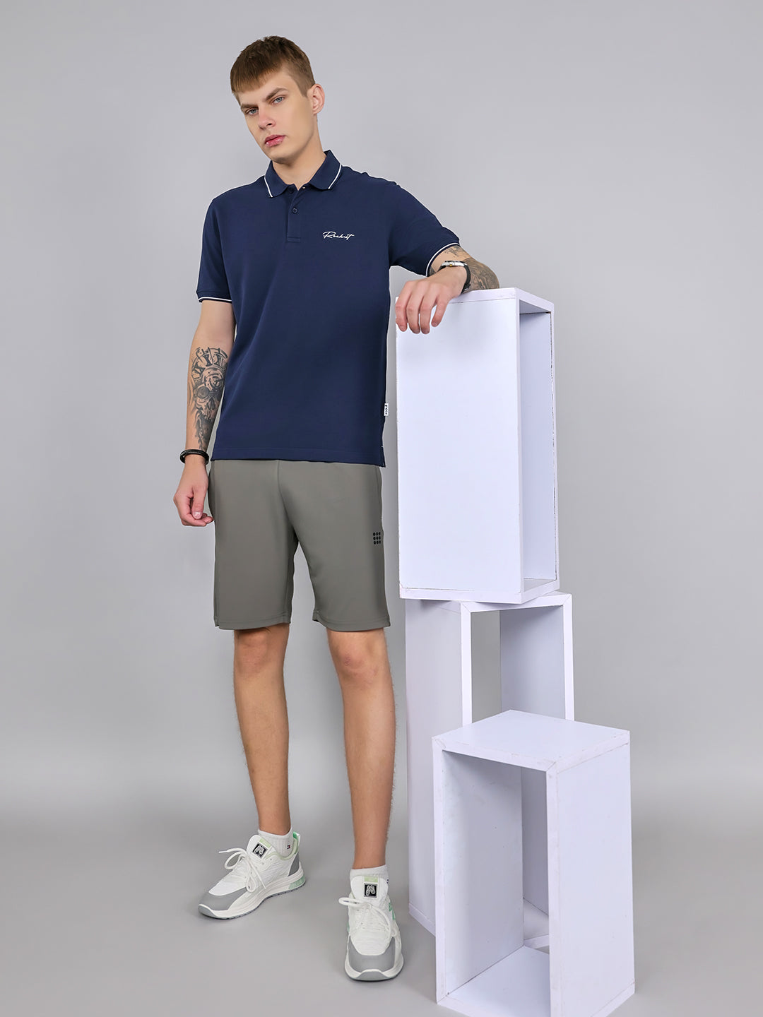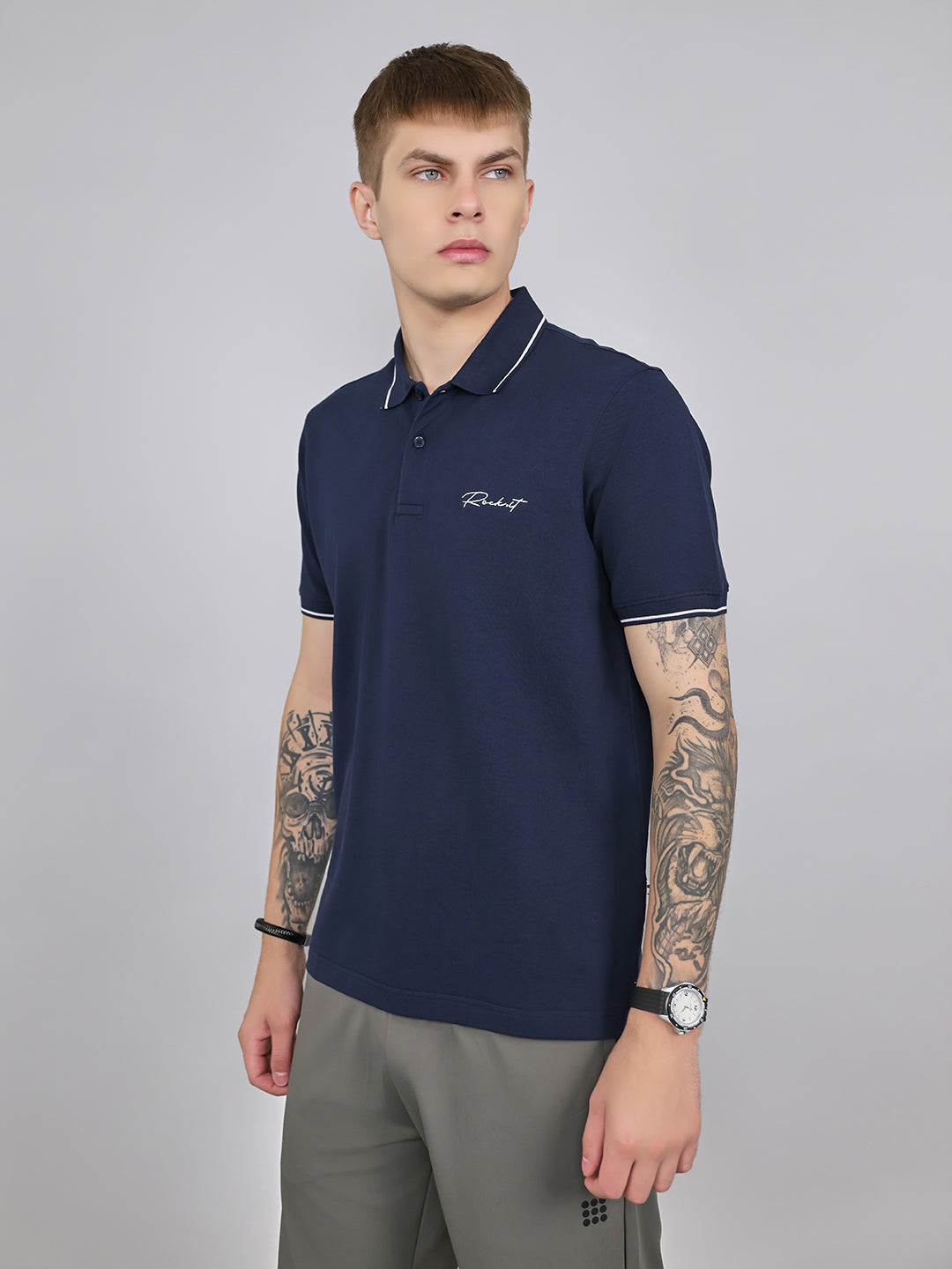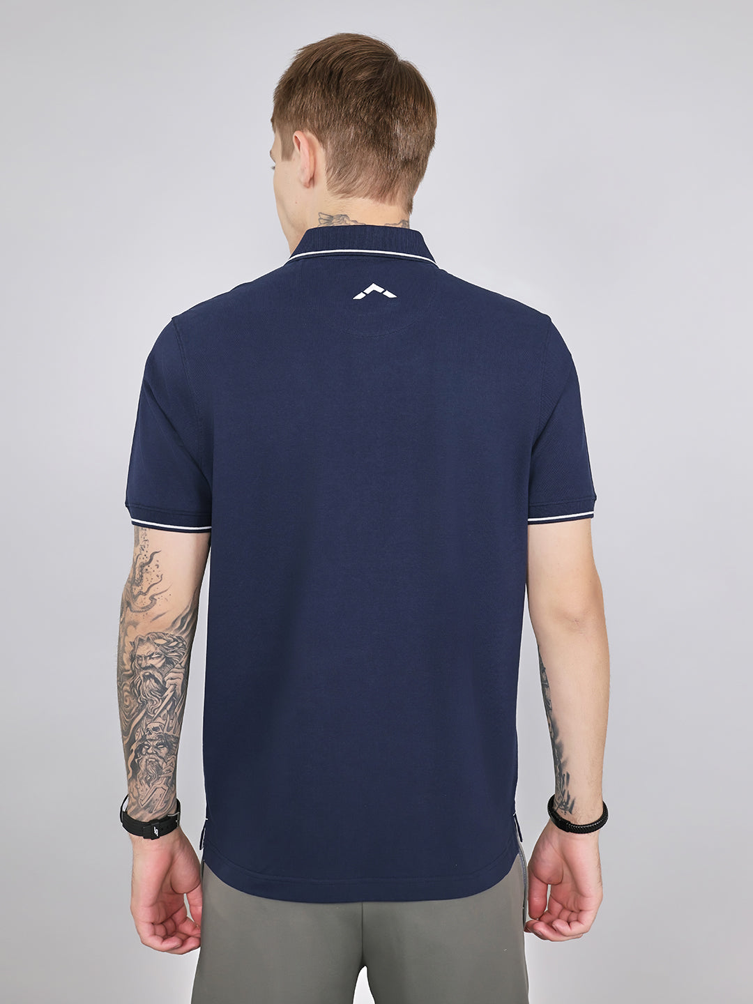 - Men Navy Blue Solid Collar Half Sleeve T-Shirt