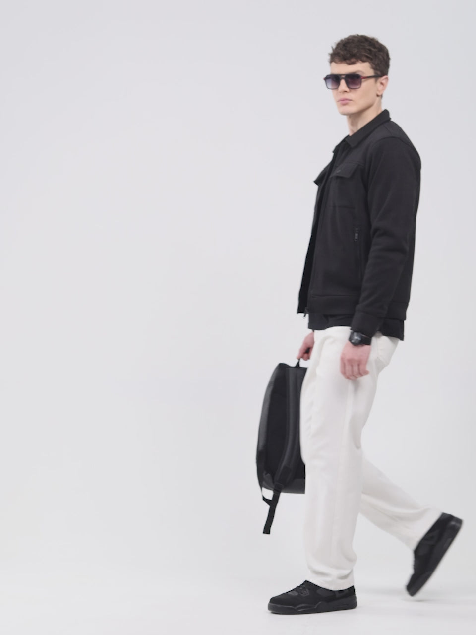 - Men Black Solid Collar Full Sleeve Knitted Jacket