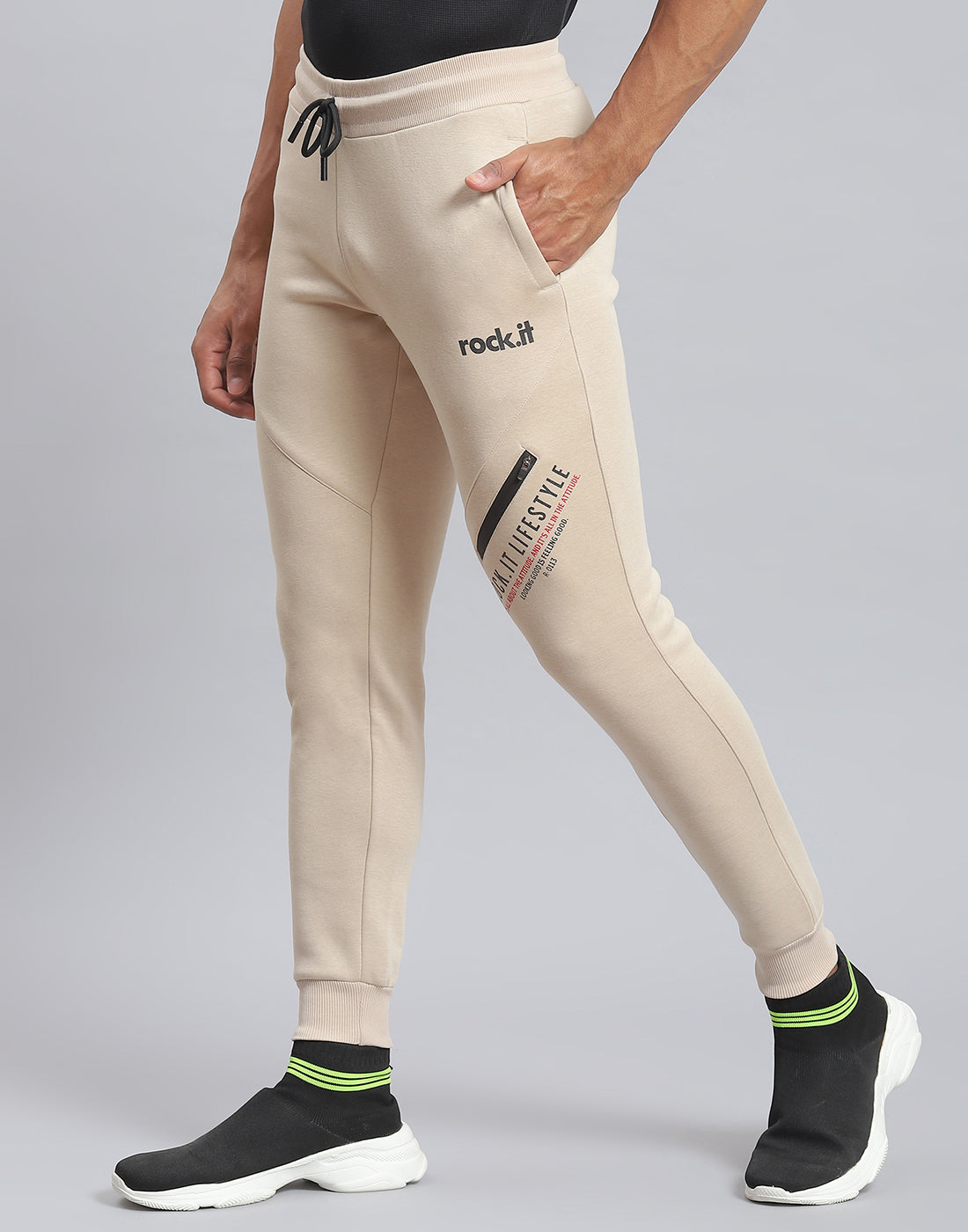 - Men Beige Solid Hooded Full Sleeve Tracksuit
