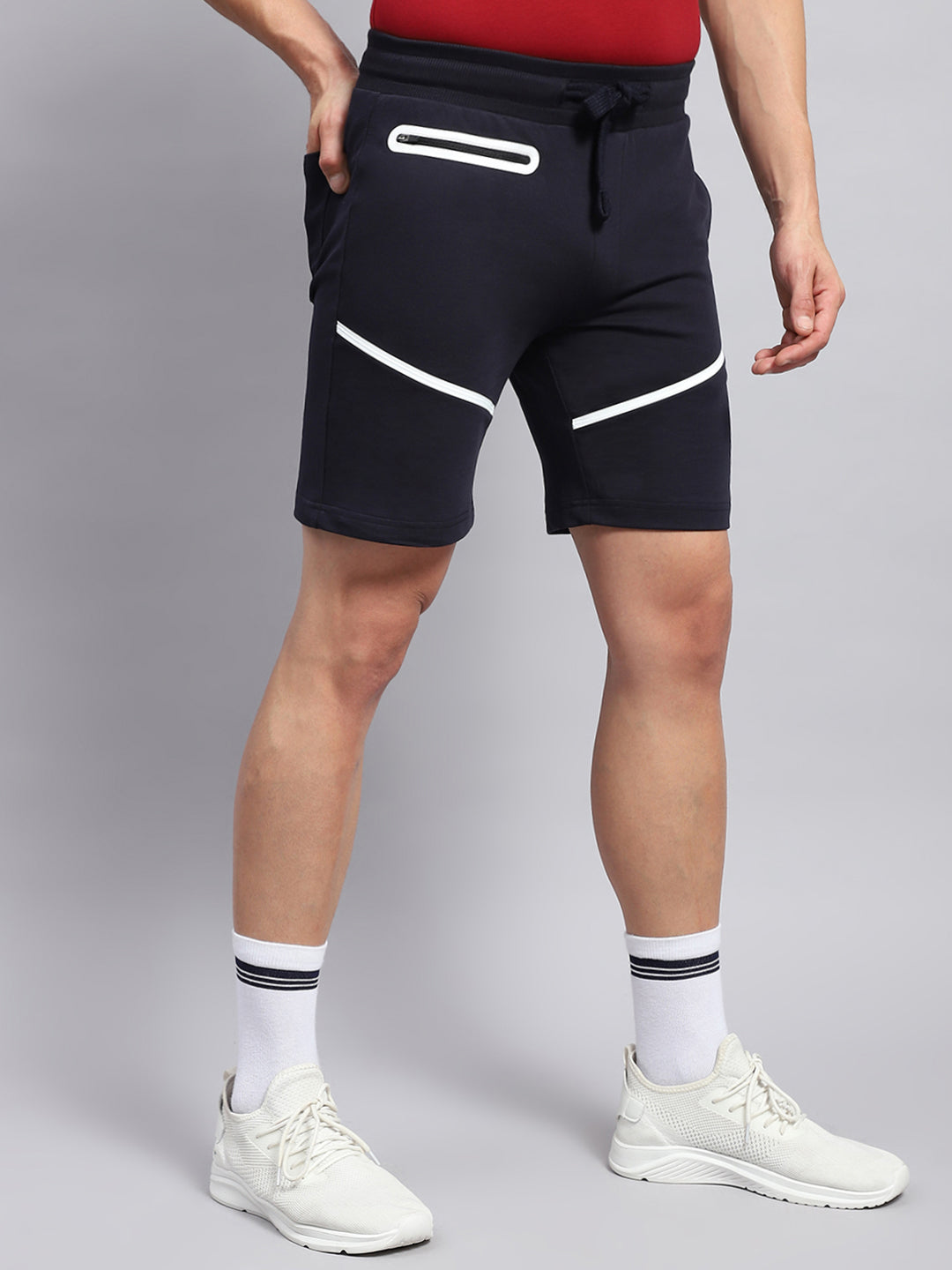 - Men 100% Cotton Navy Blue Solid Short