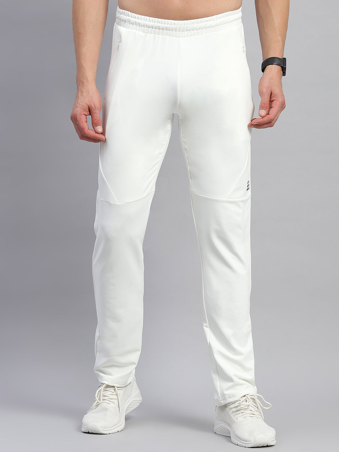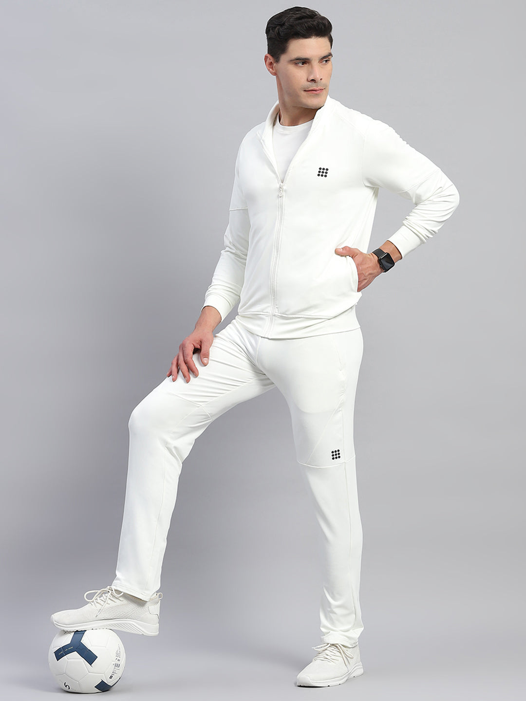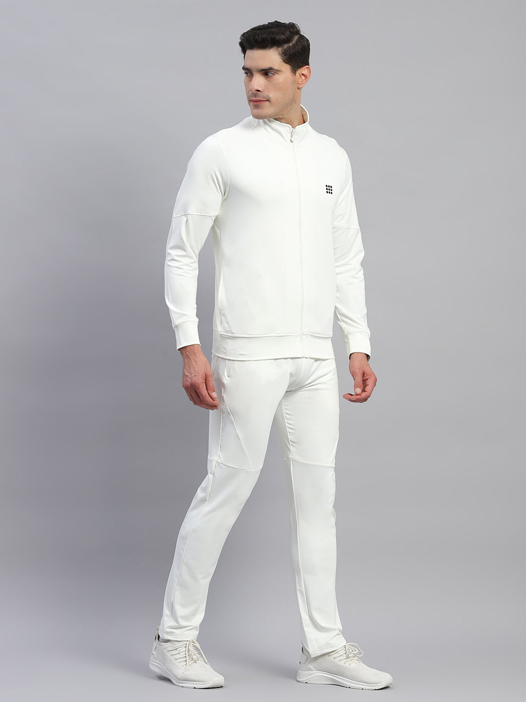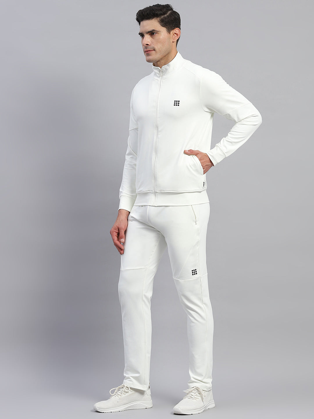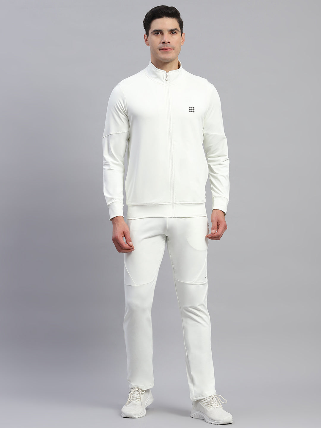 - Men Cream Solid Round Neck Full Sleeve Tracksuit
