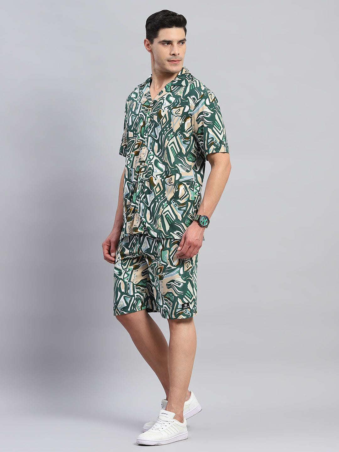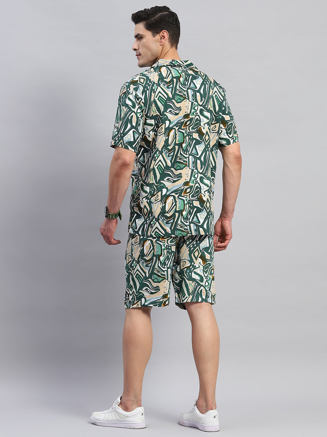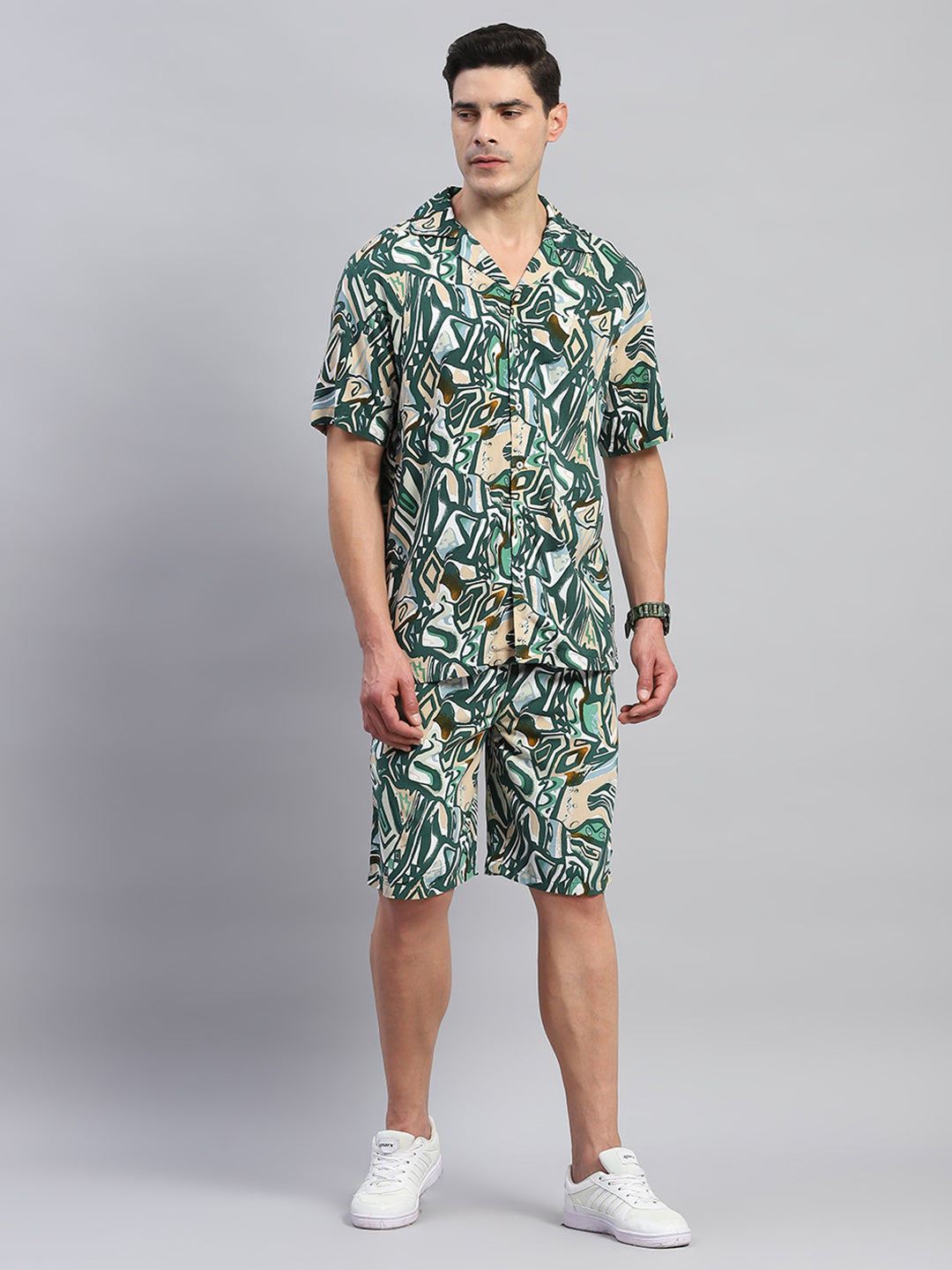 - Men Green Printed Round Neck Half Sleeve Cords Set