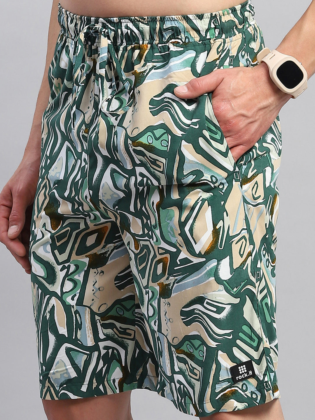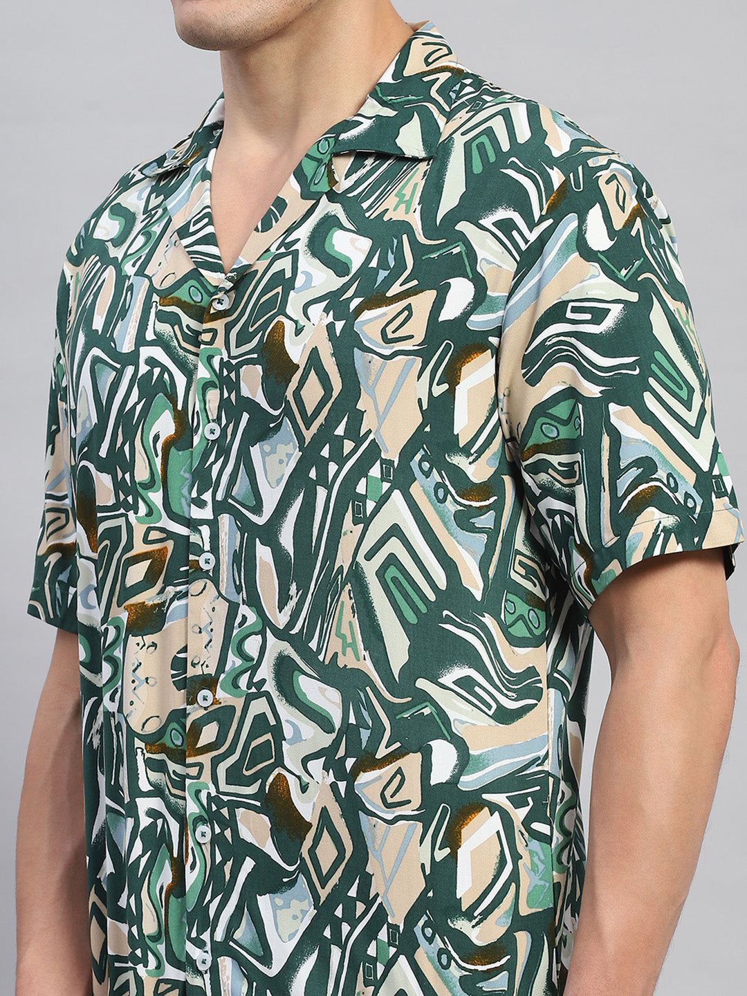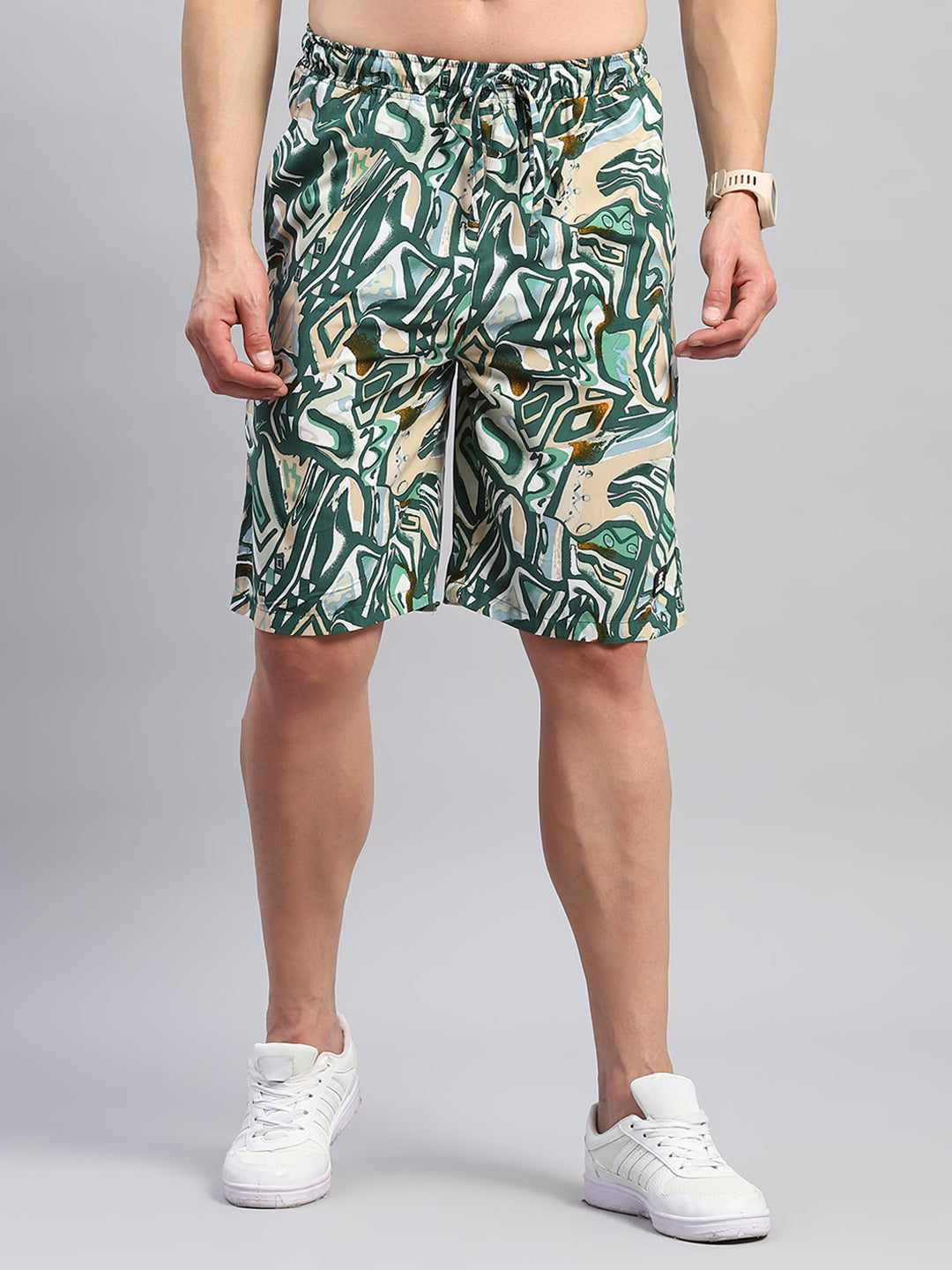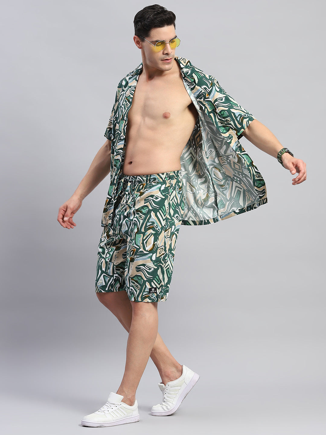 - Men Green Printed Round Neck Half Sleeve Cords Set