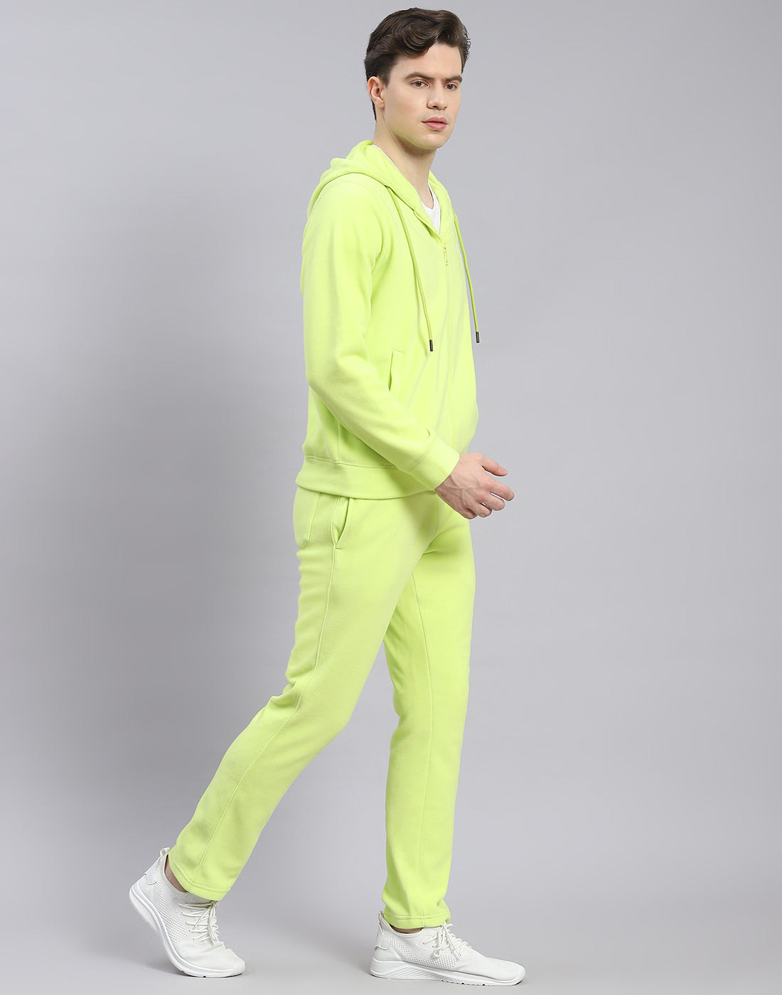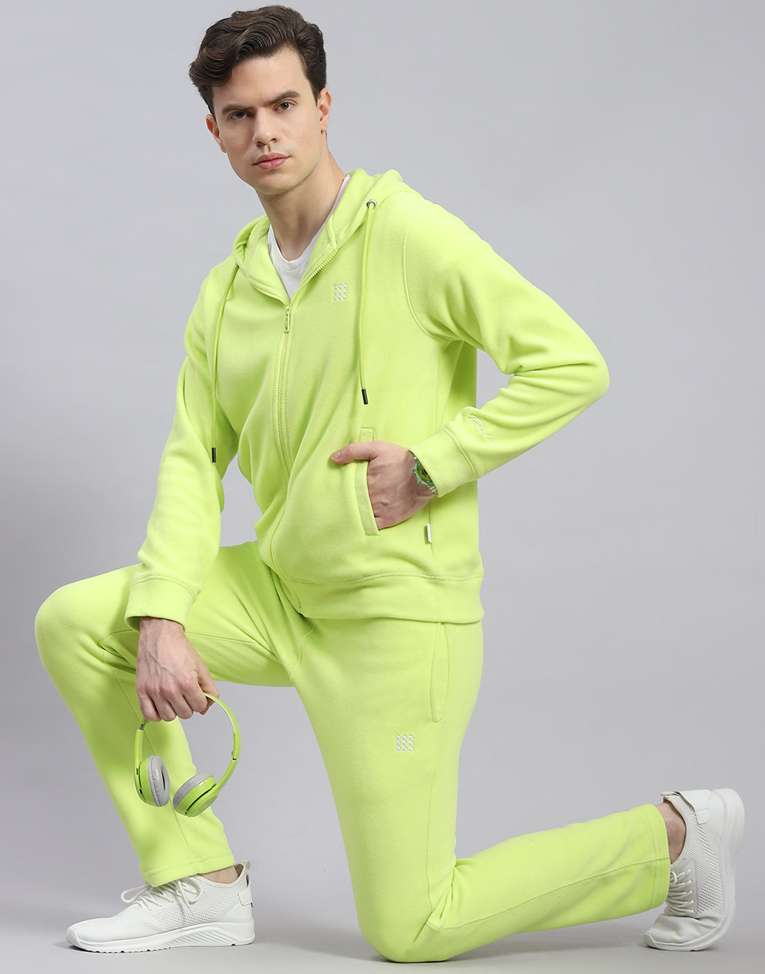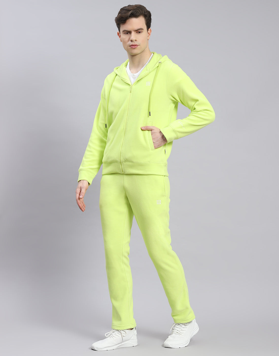 - Men Green Solid Hooded Full Sleeve Tracksuit