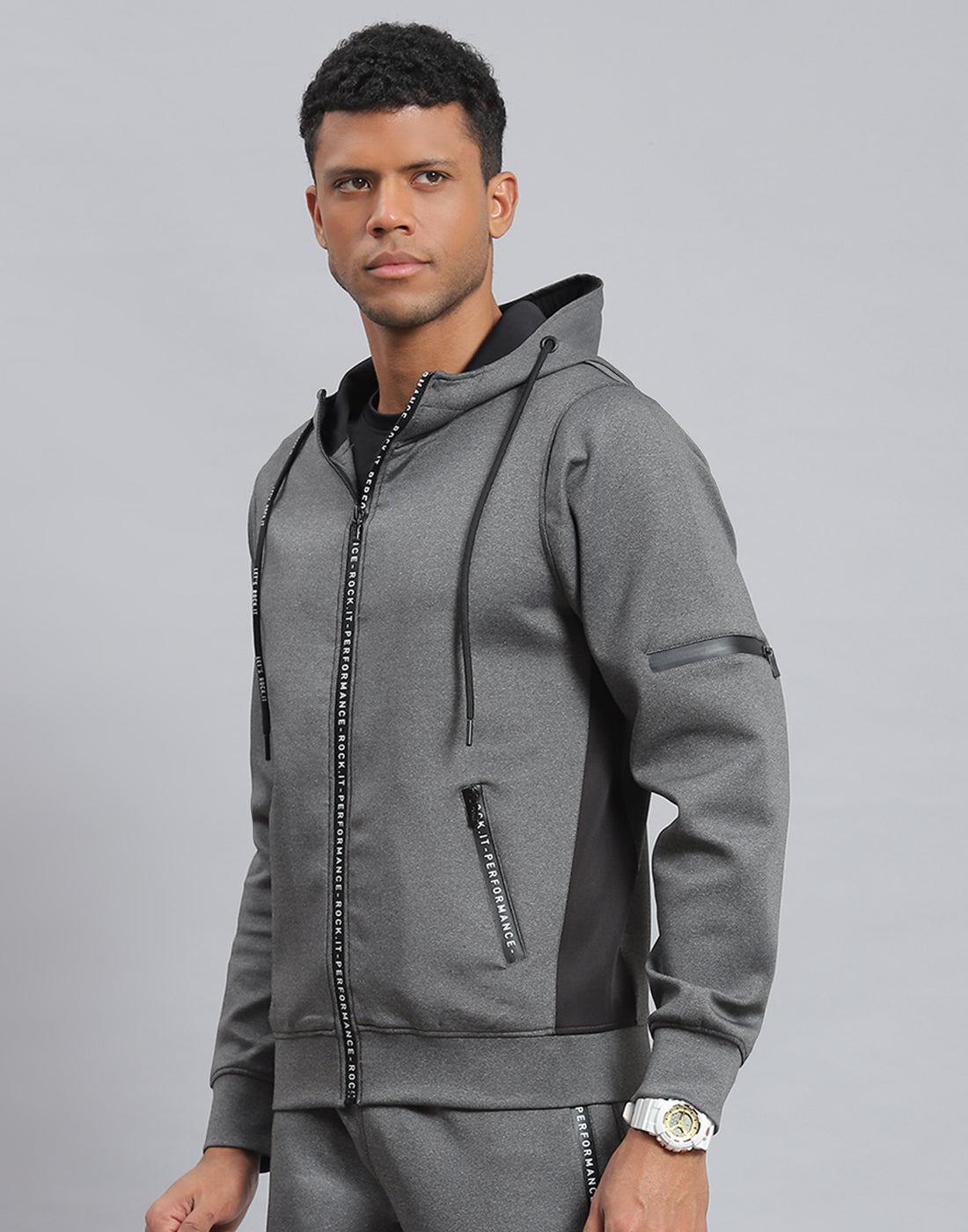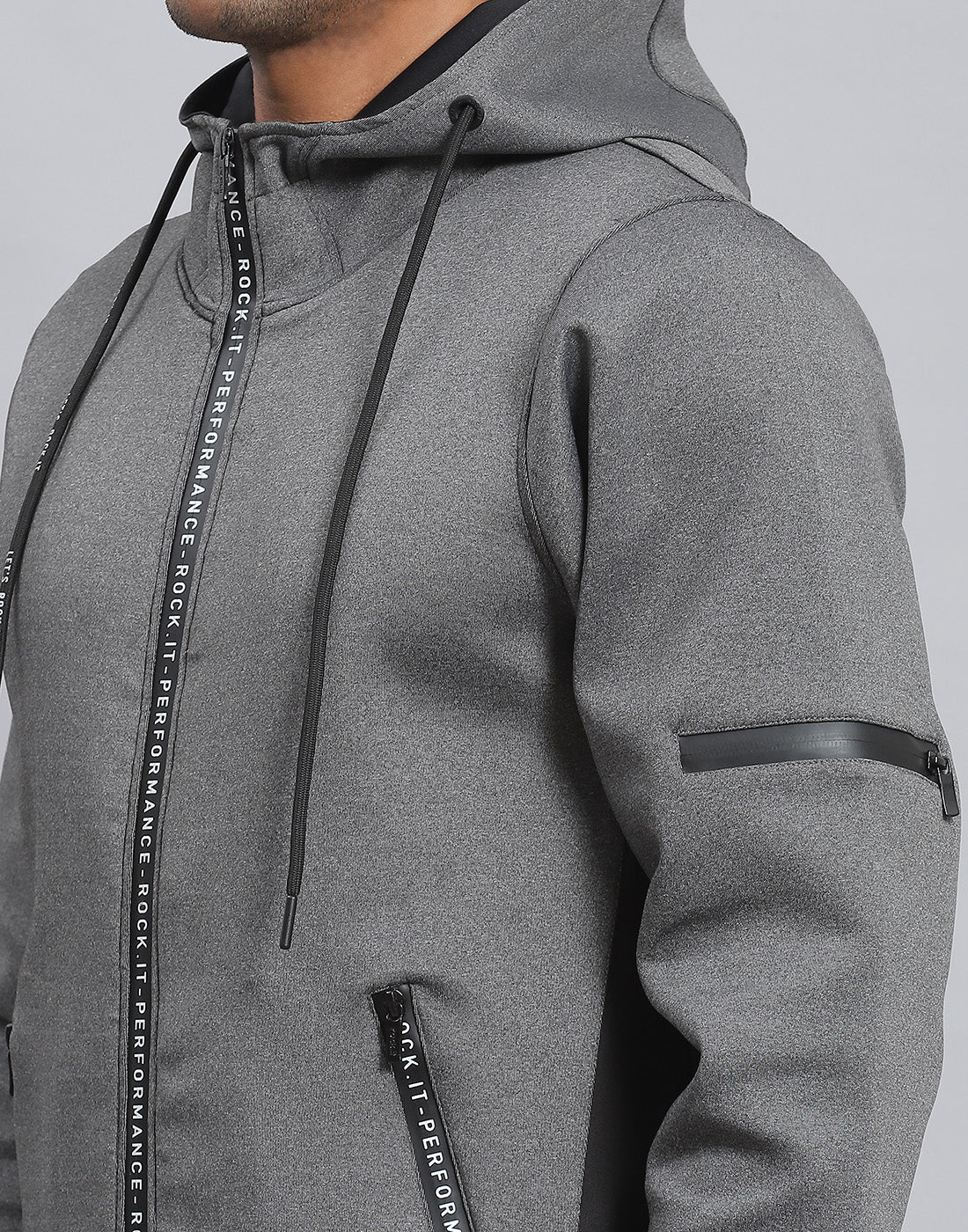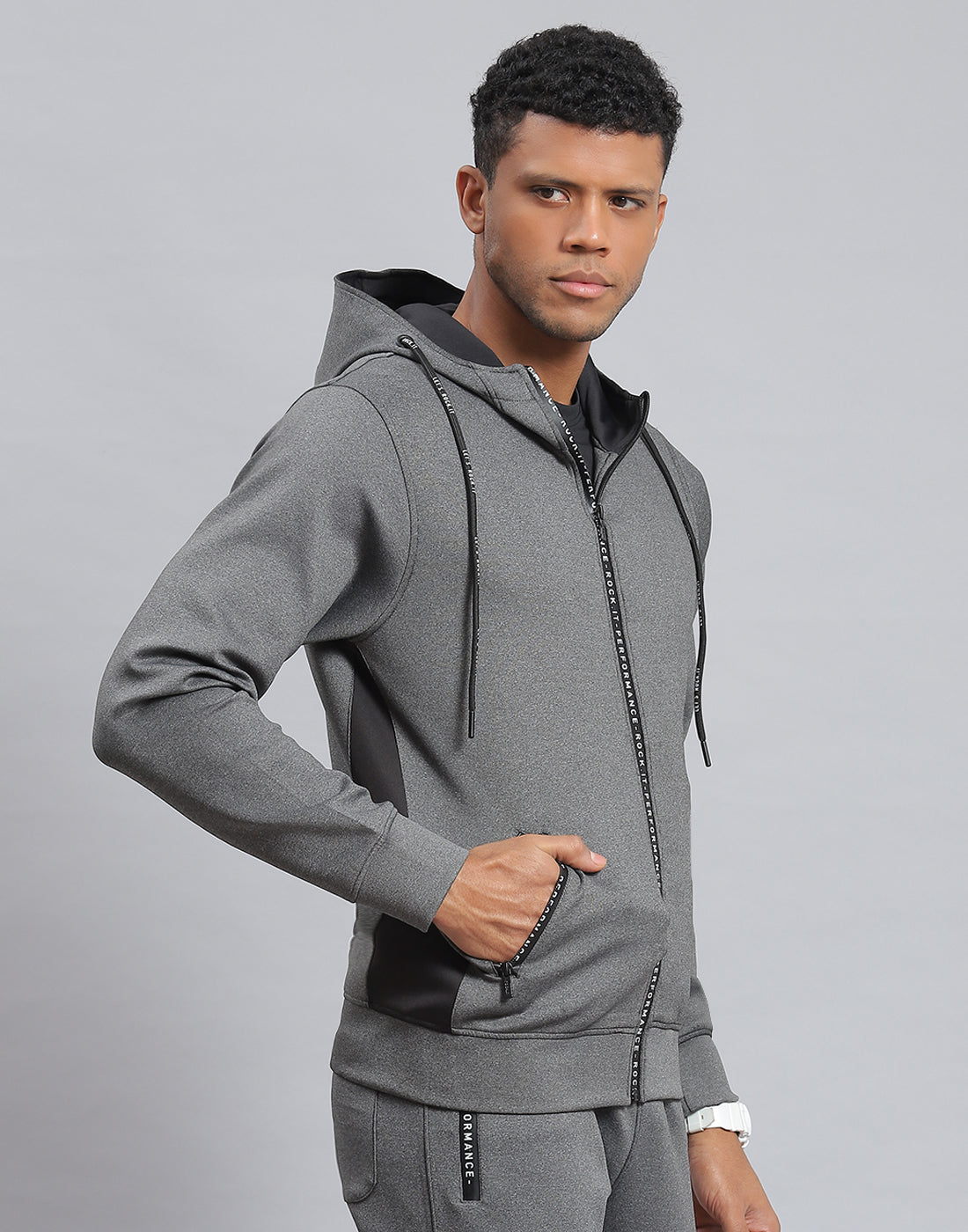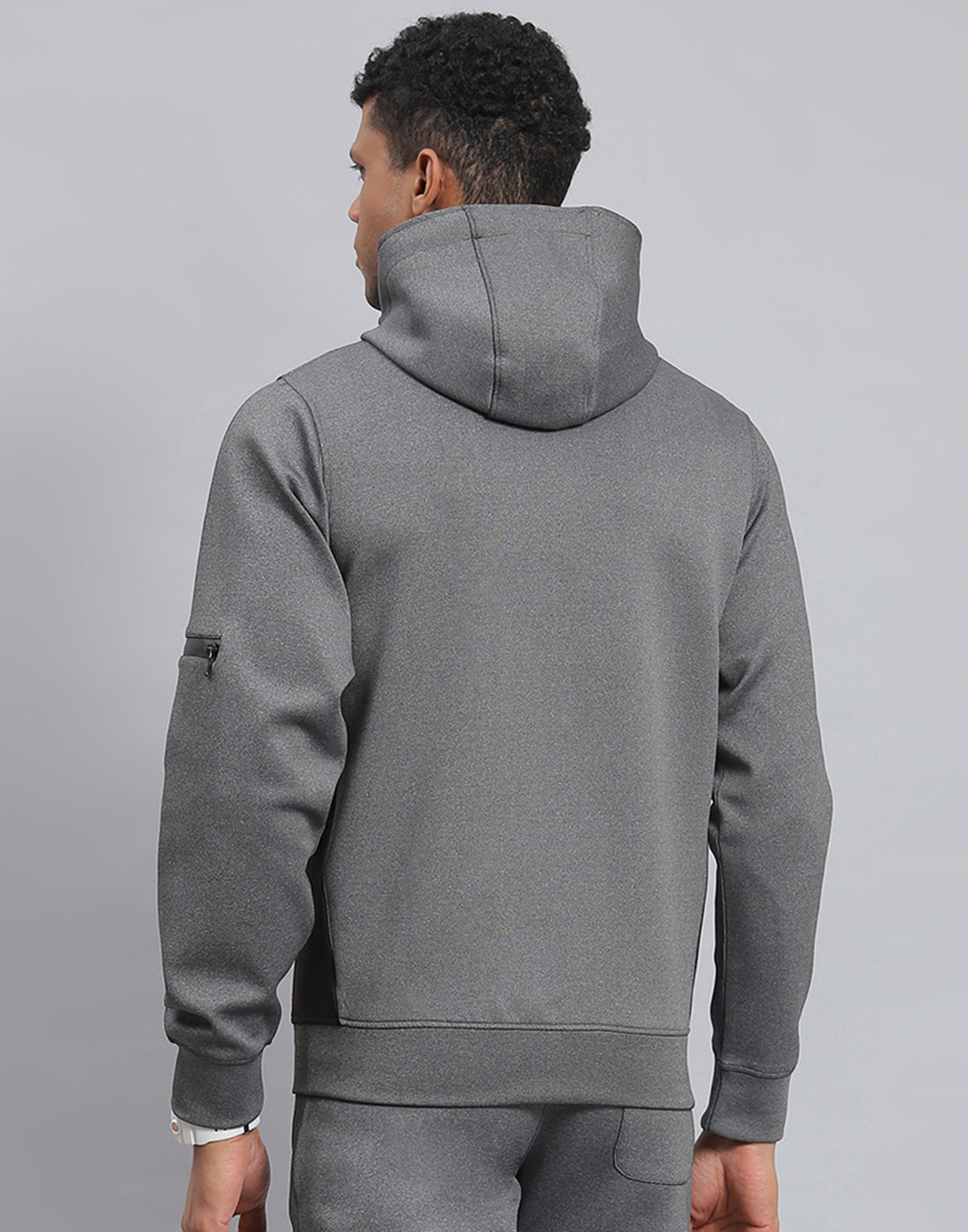 - Men Grey Solid Hooded Full Sleeve Sweatshirt