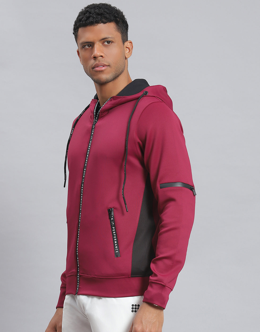 - Men Magenta Solid Hooded Full Sleeve Sweatshirt