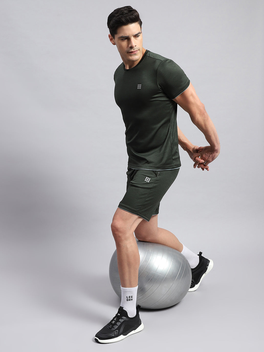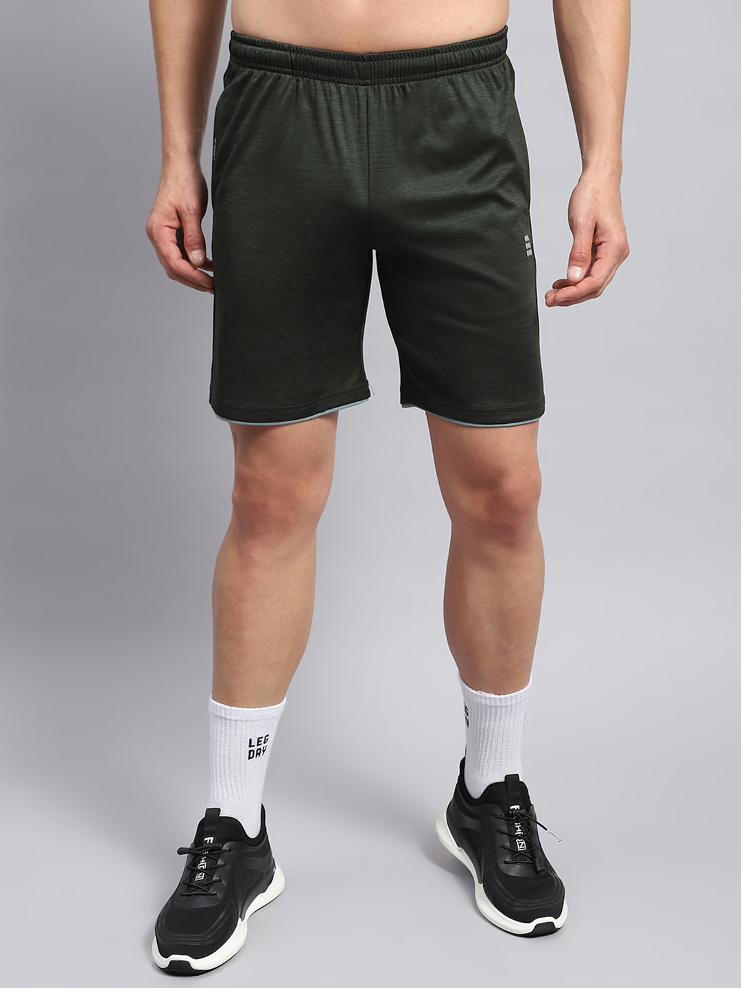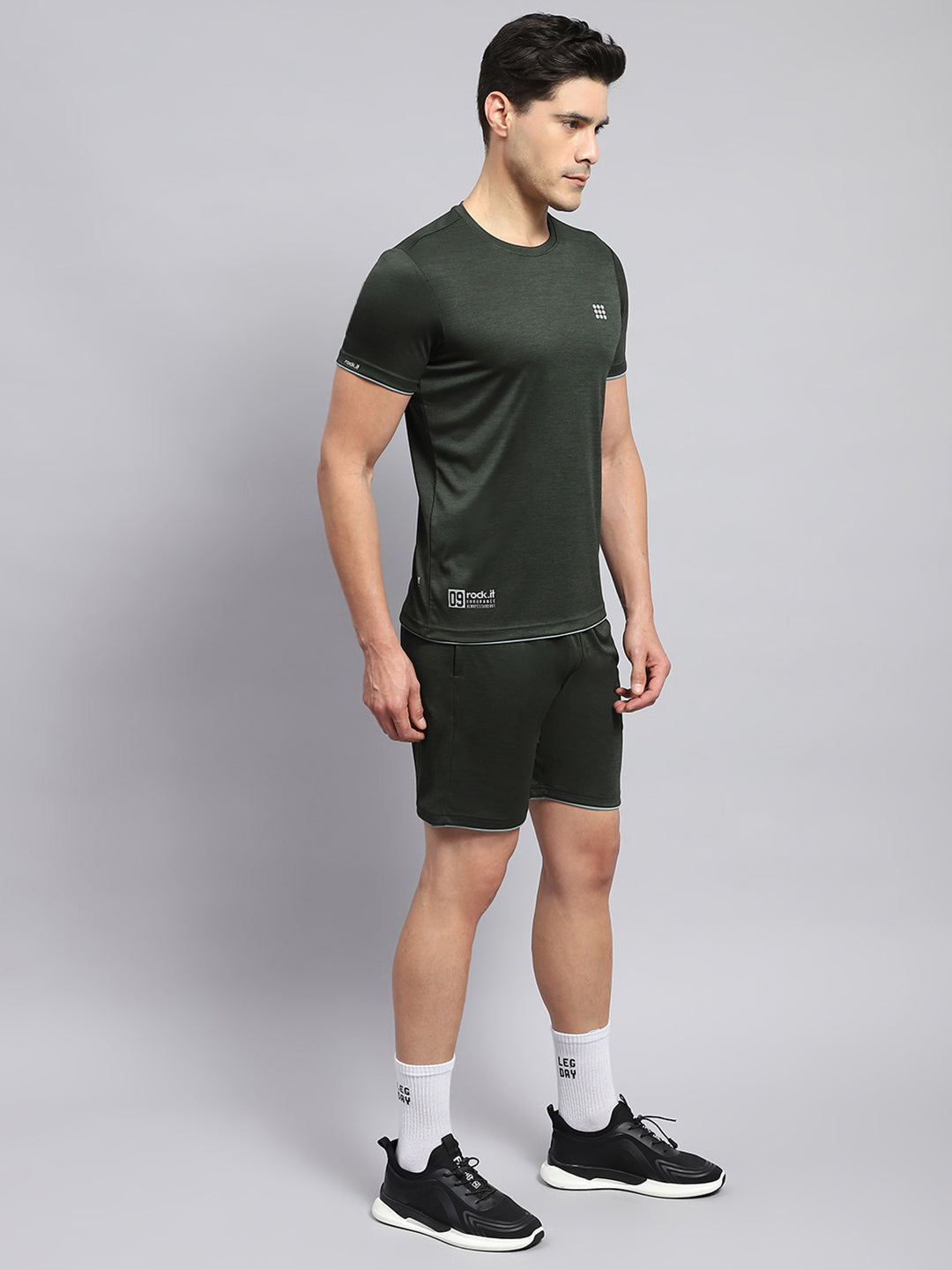 - Men Olive Solid Round Neck Half Sleeve Short Set
