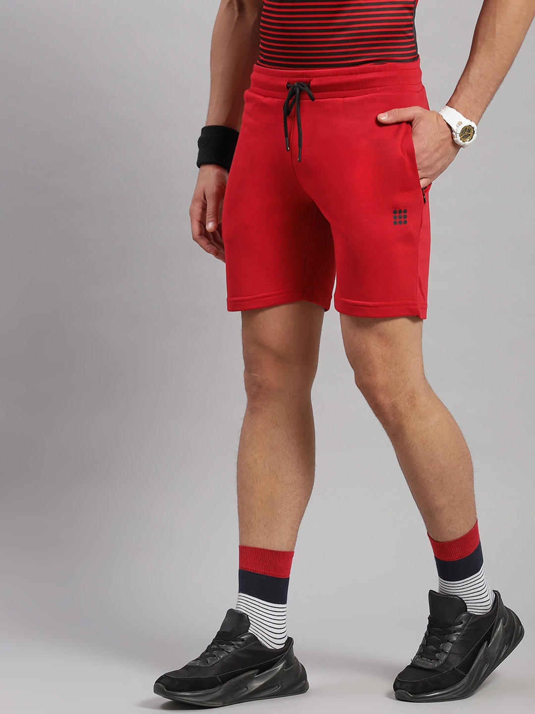 - Men Cotton Blend Red Solid Short