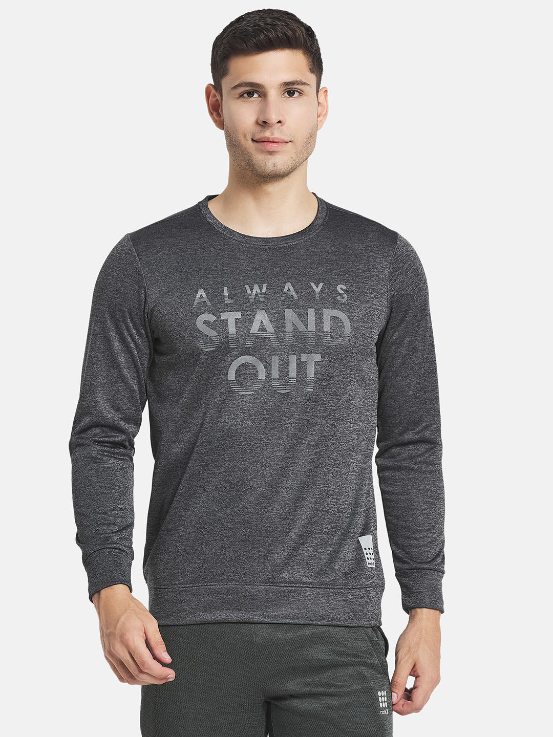 Men Grey Round Neck Full Sleeve Sweatshirt