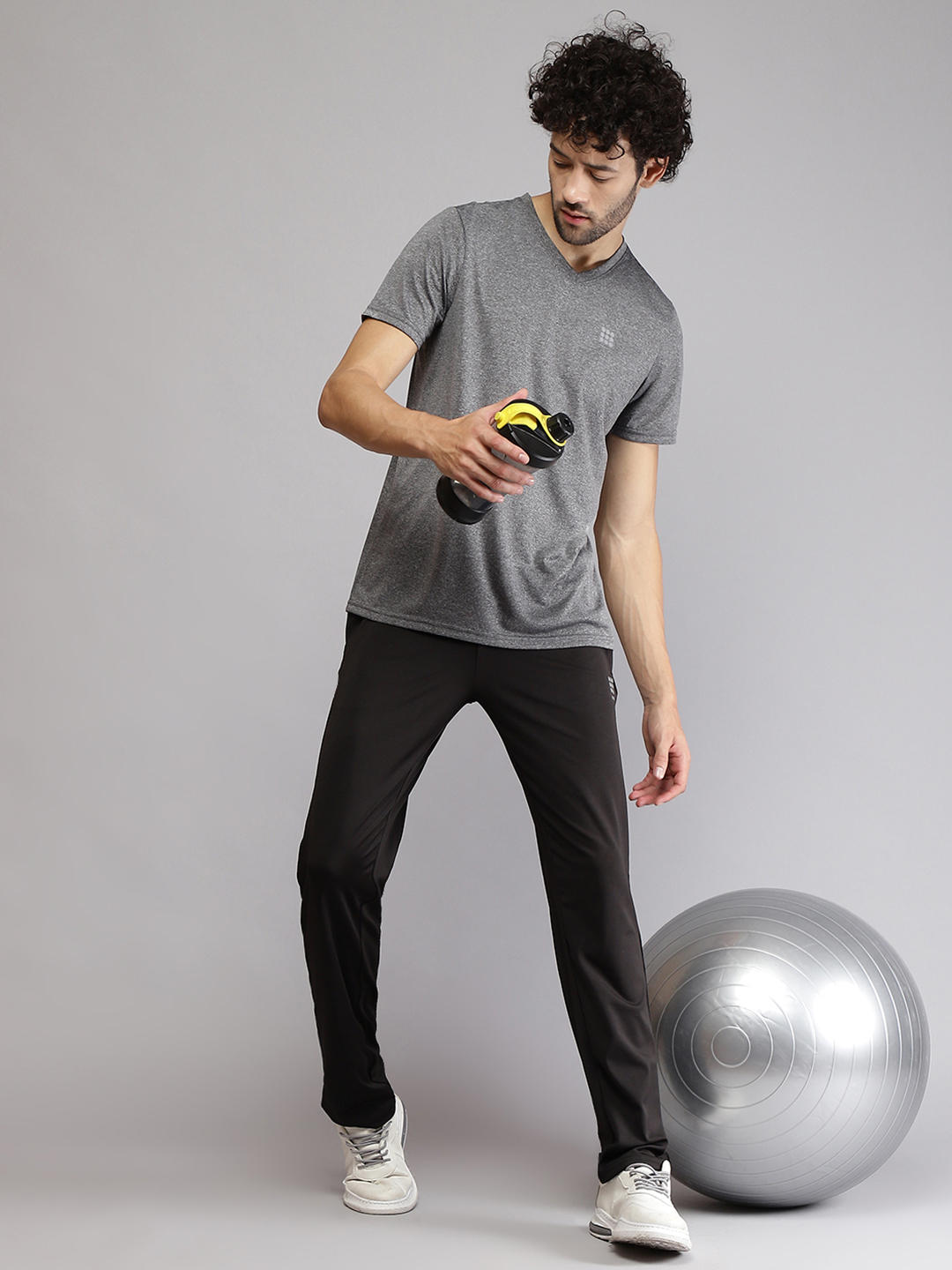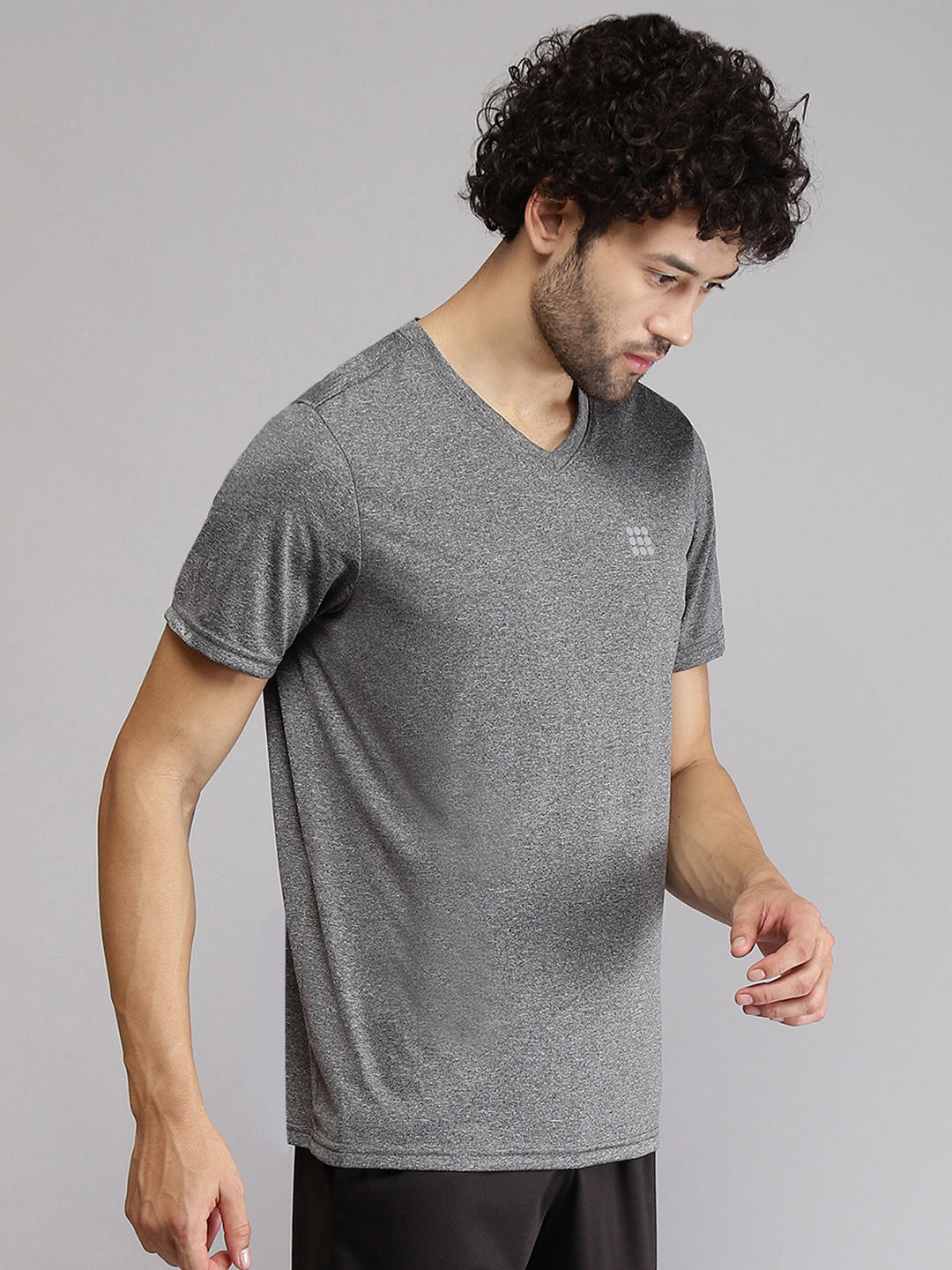 - Mens Polyester Blend Grey Printed Round Neck T-Shirt