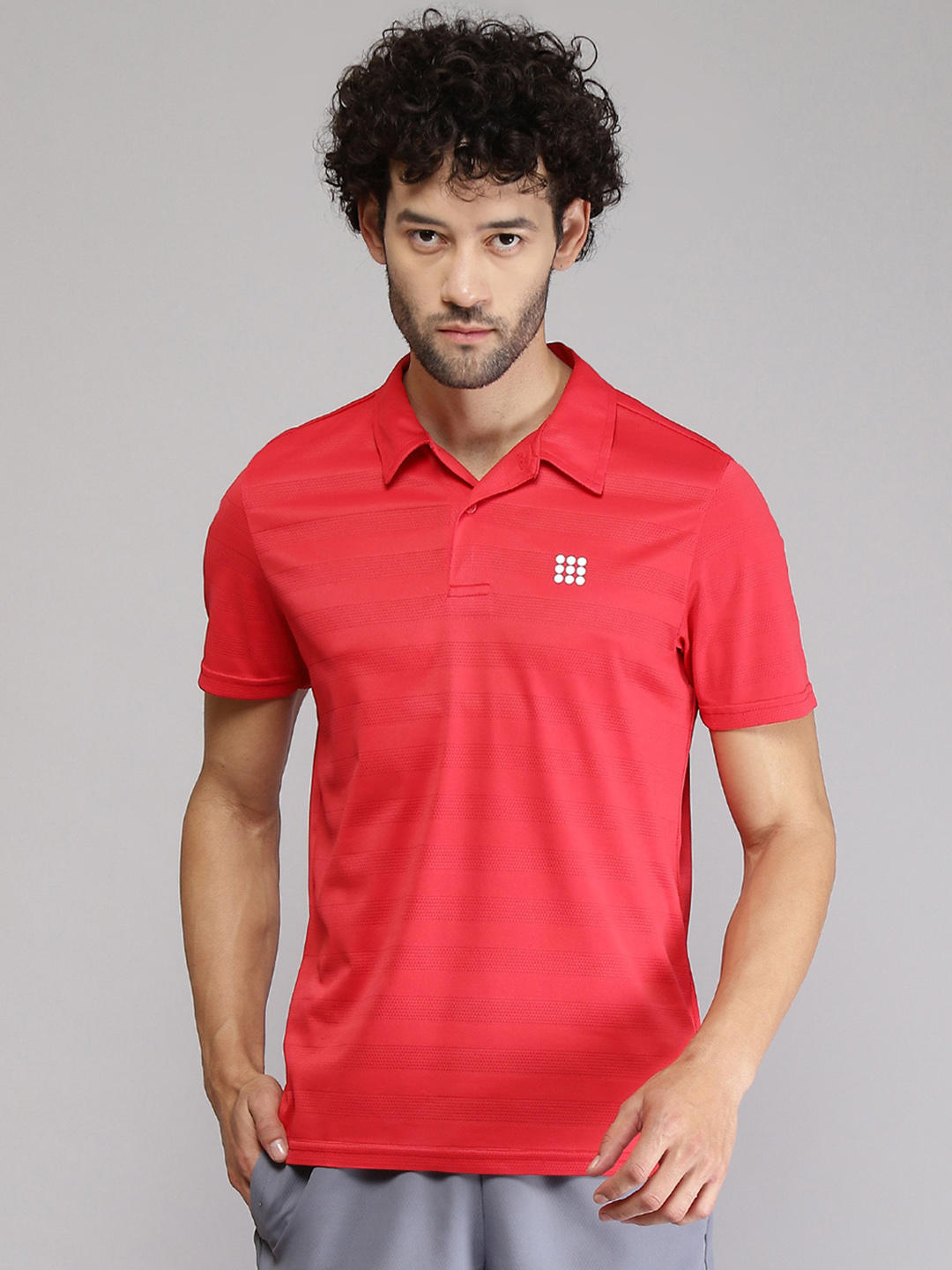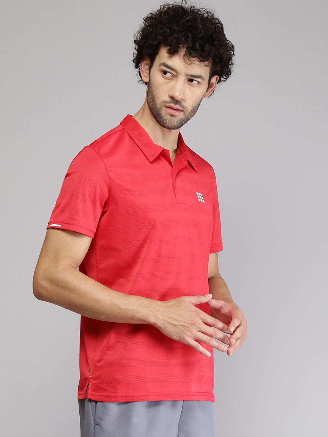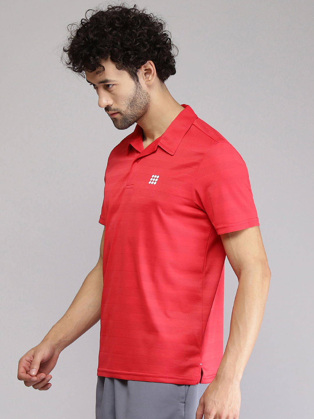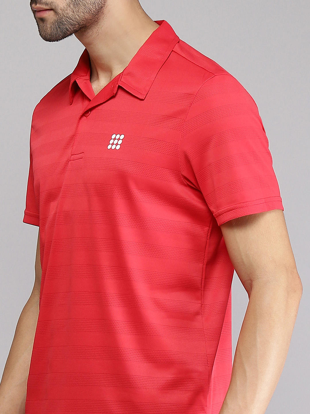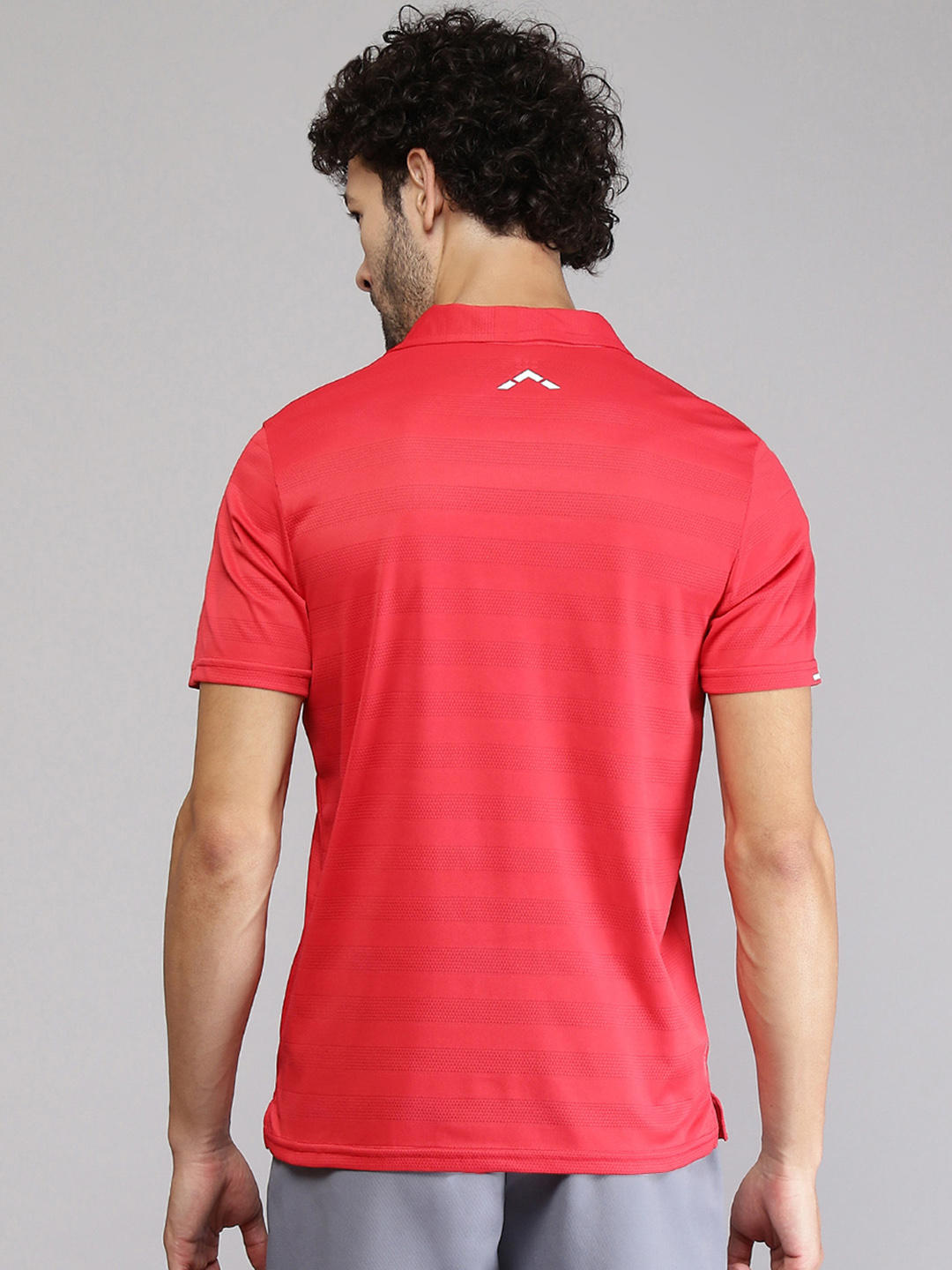 - Mens Polyester Blend Red Self Design Collar T-Shirt