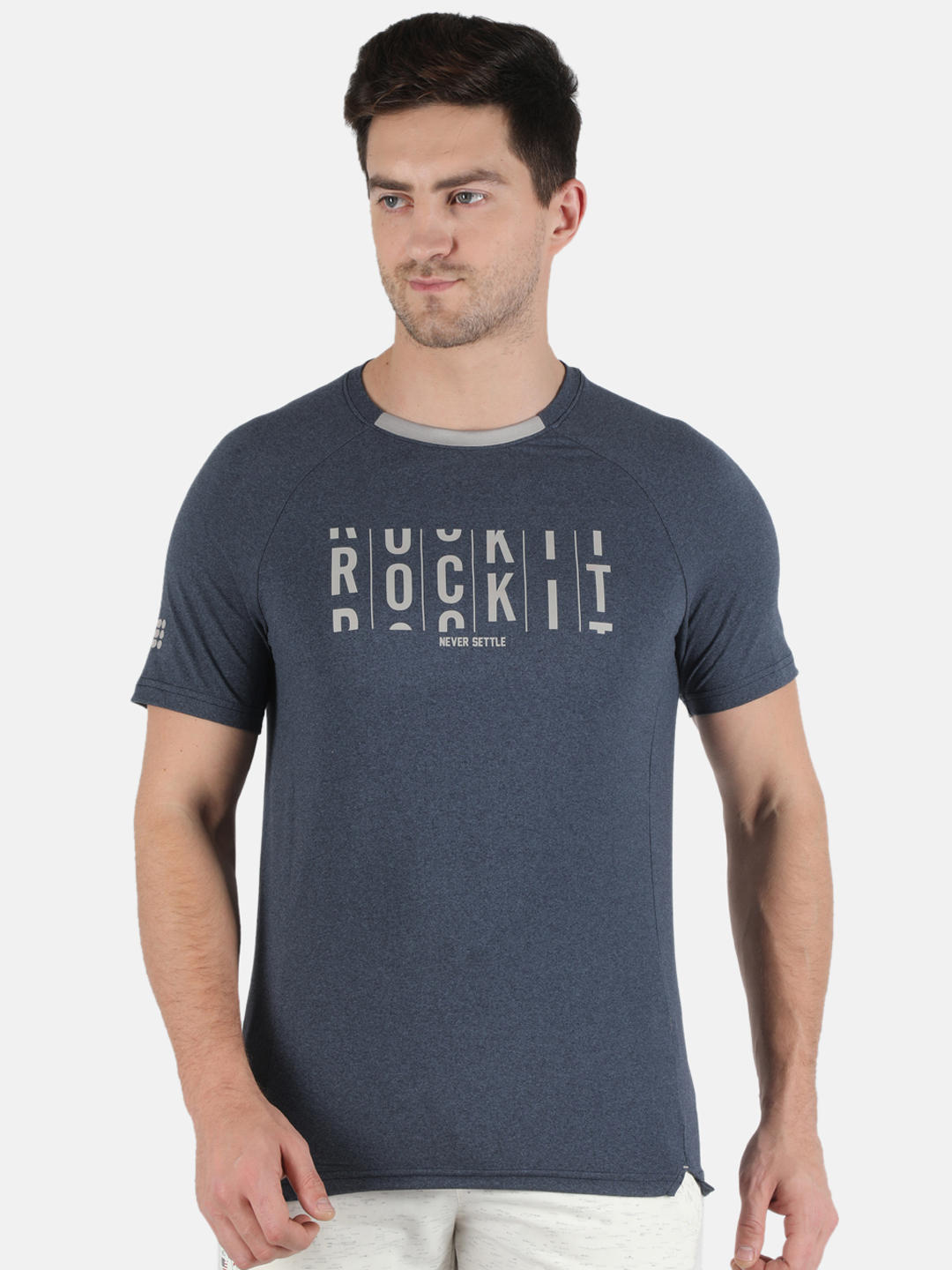 - Men Navy Round Neck Smart Fit Half Sleeve T-Shirt