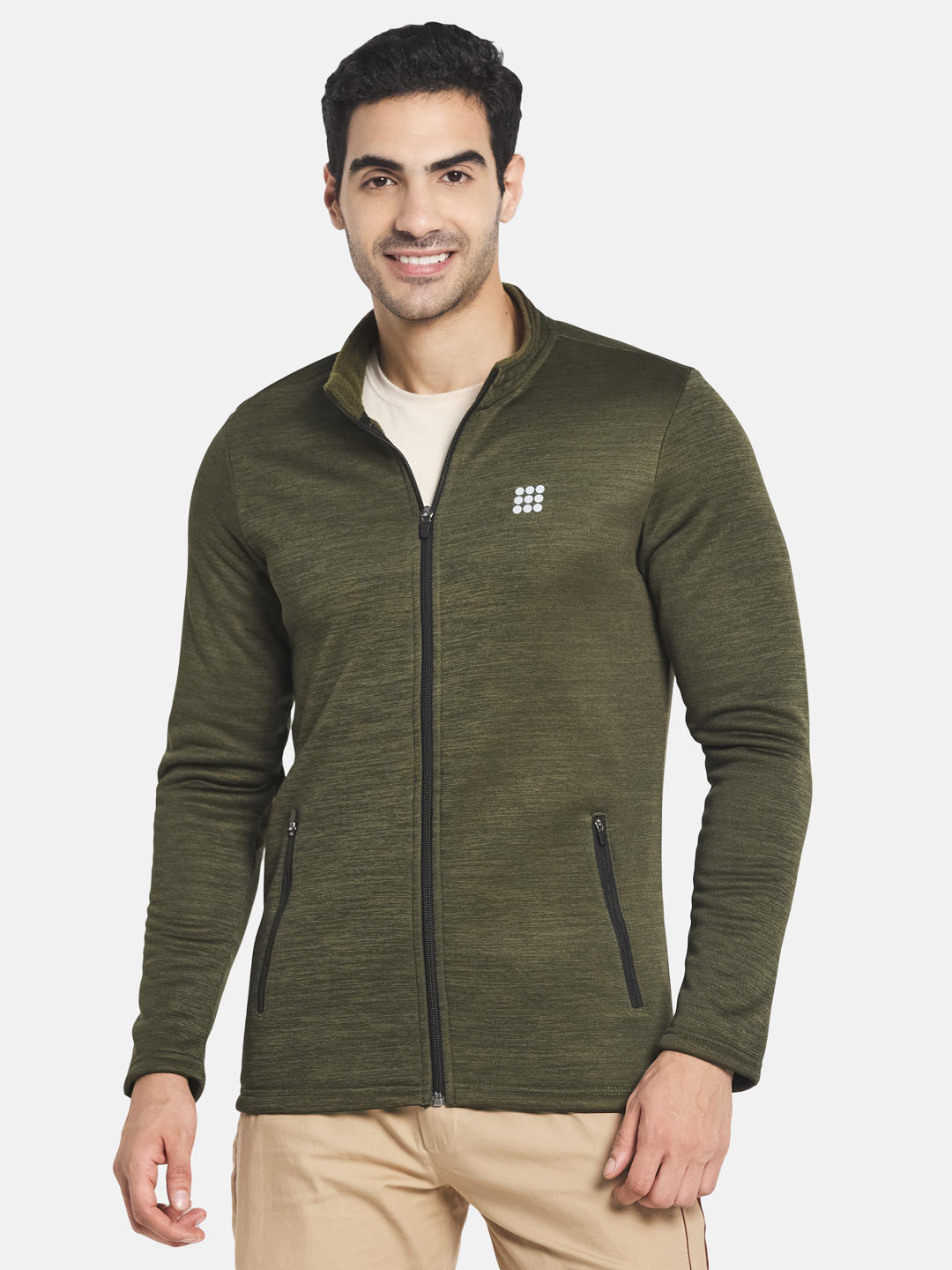 - Men Olive Round Neck Smart Fit Full Sleeve Sweatshirt