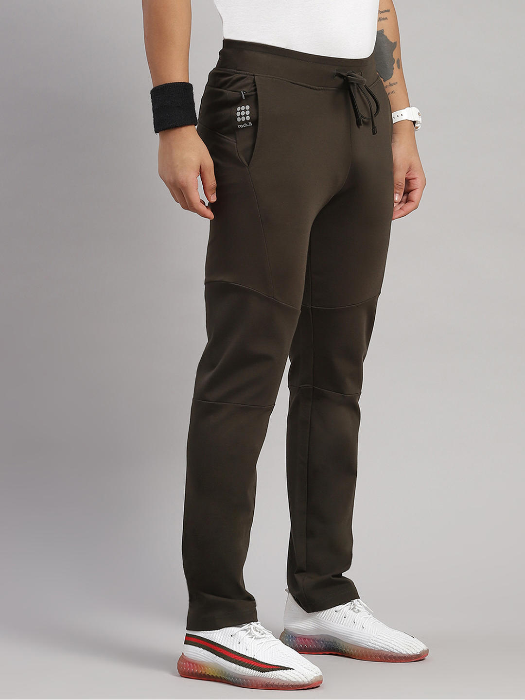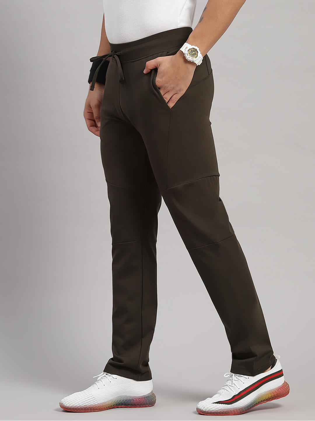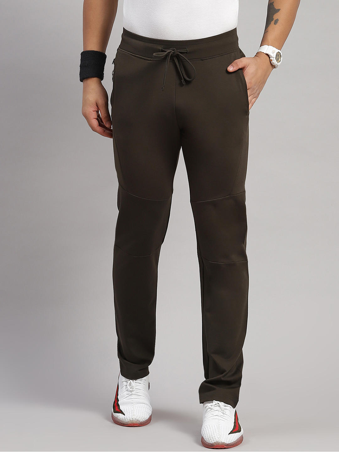 Men Polyester Blend Olive Solid Lower