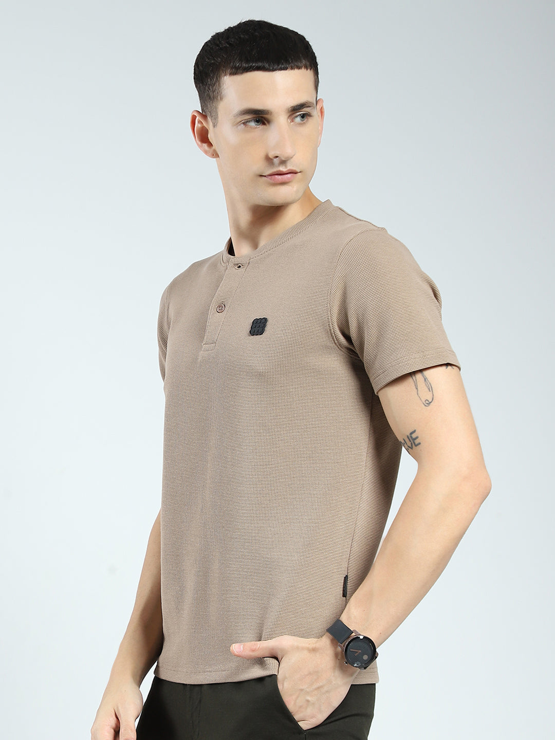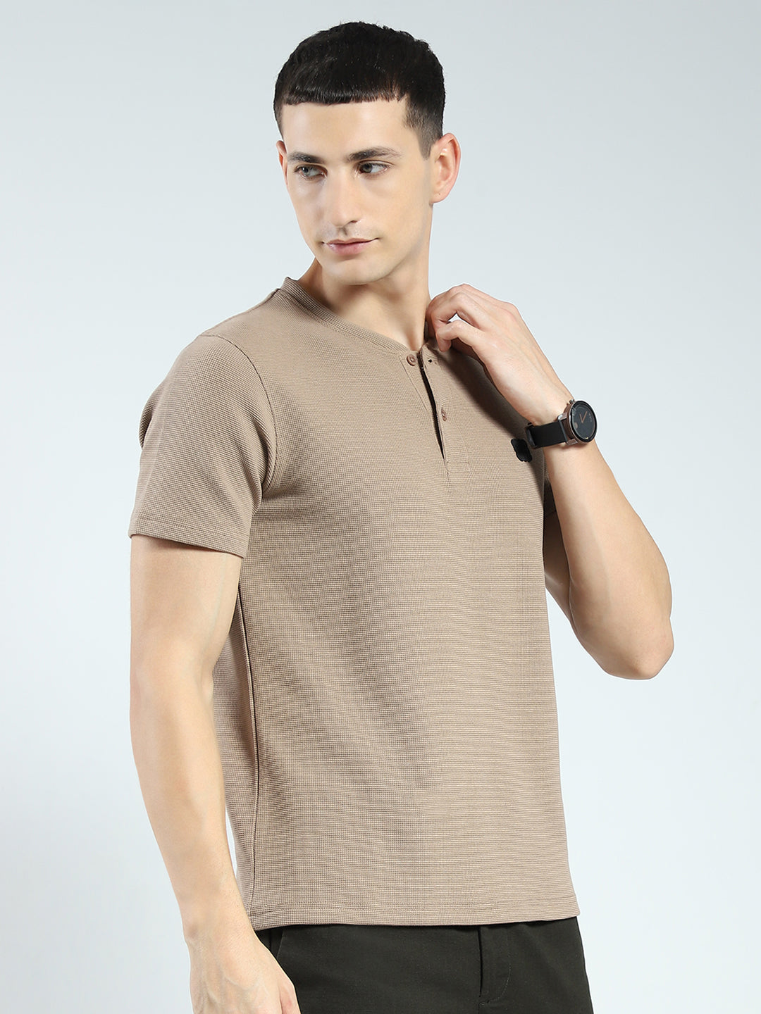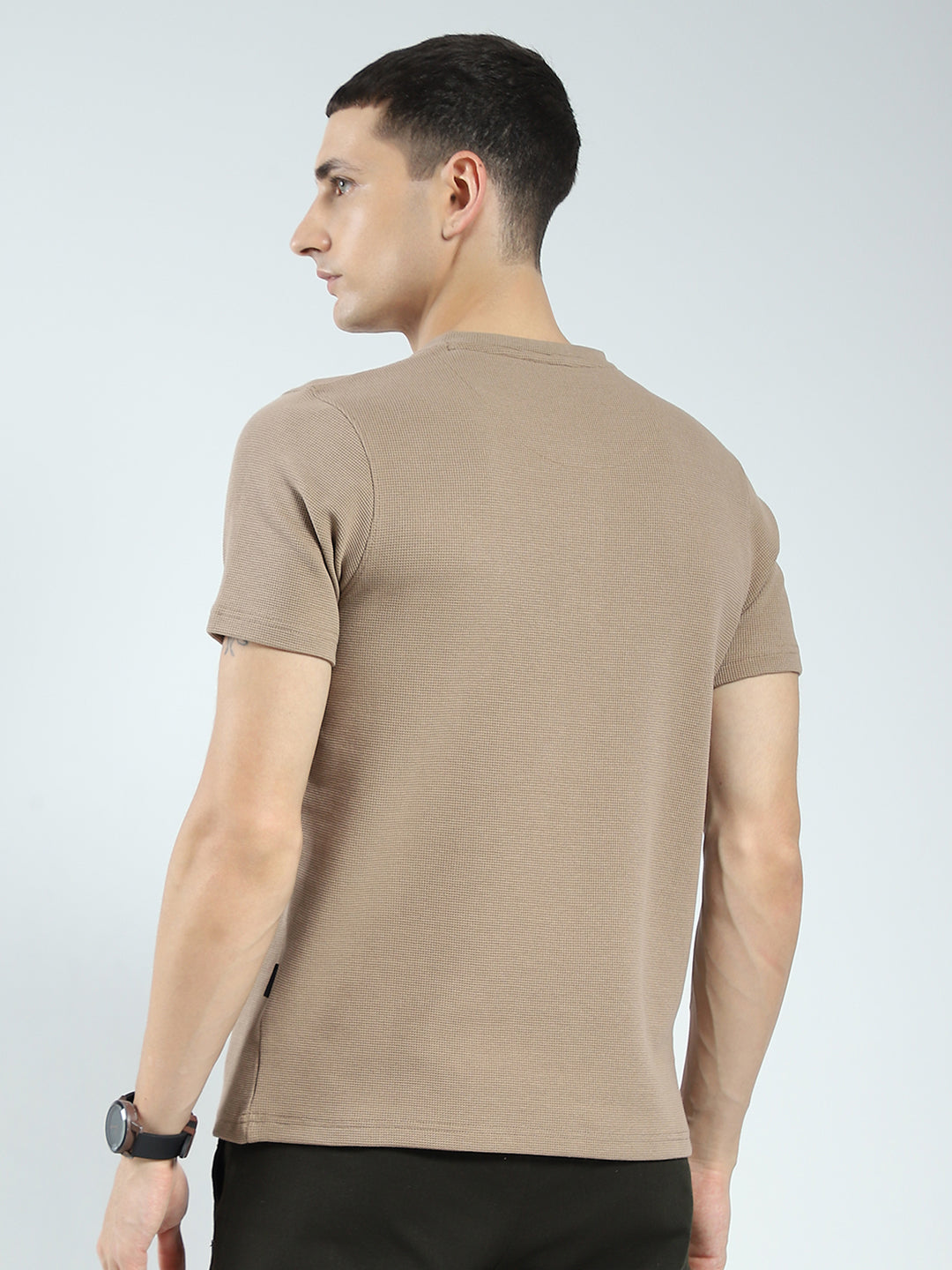 - Men Beige Solid Round Neck Half Sleeve T-Shirt