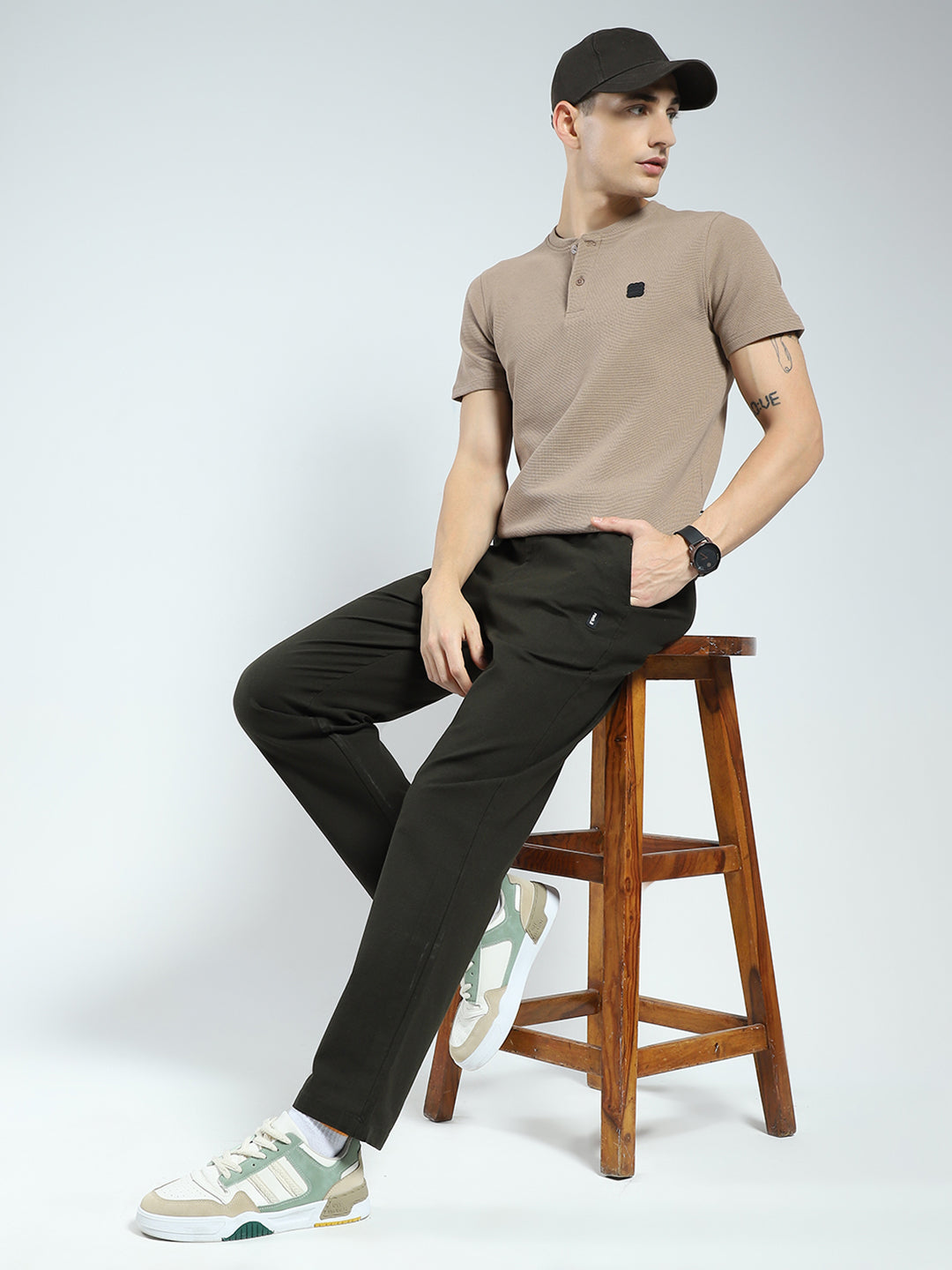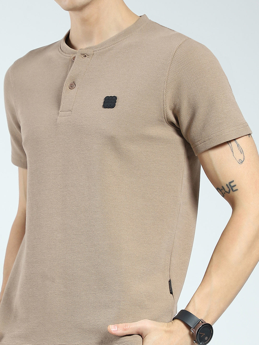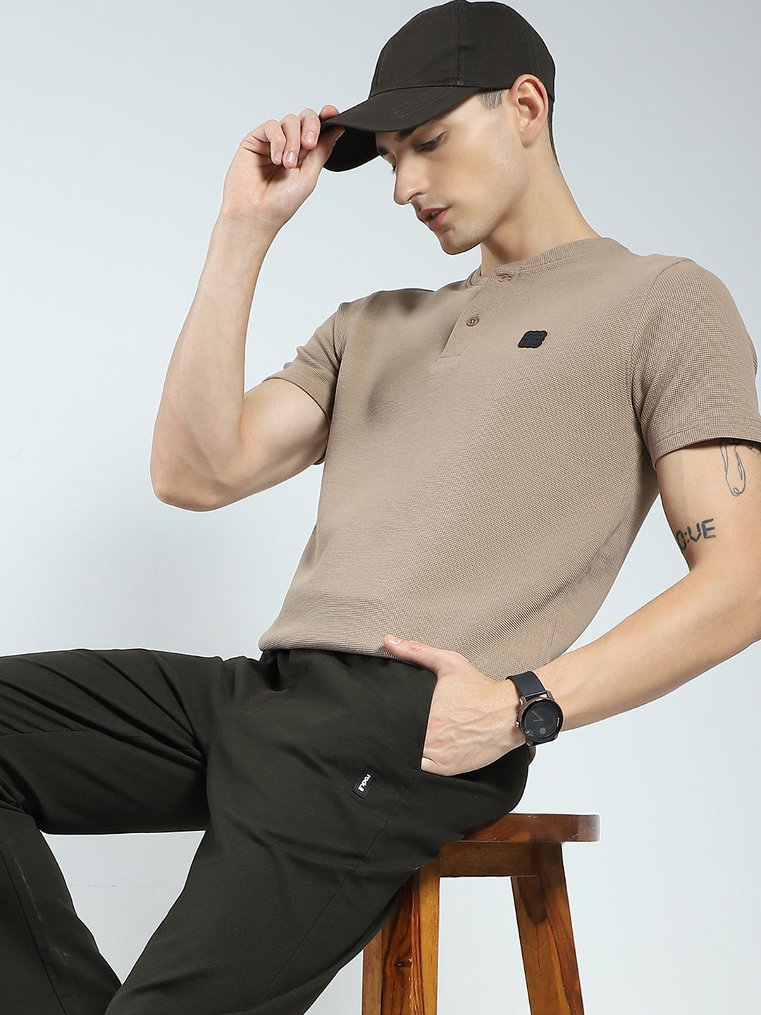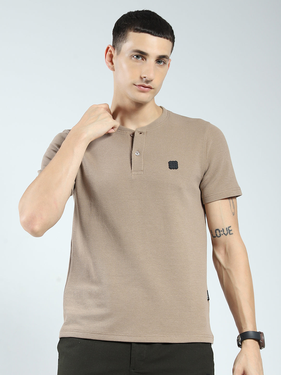 - Men Beige Solid Round Neck Half Sleeve T-Shirt