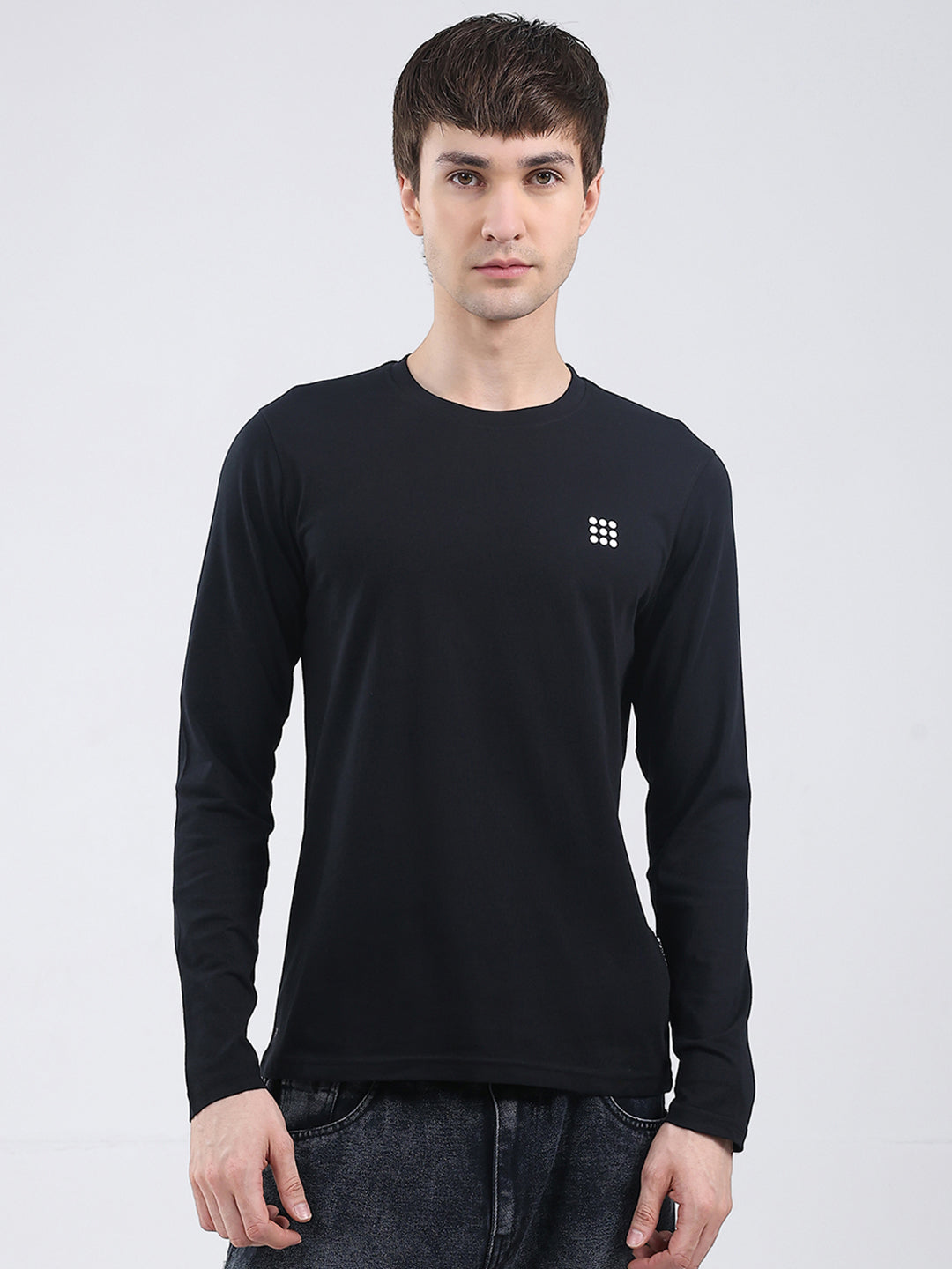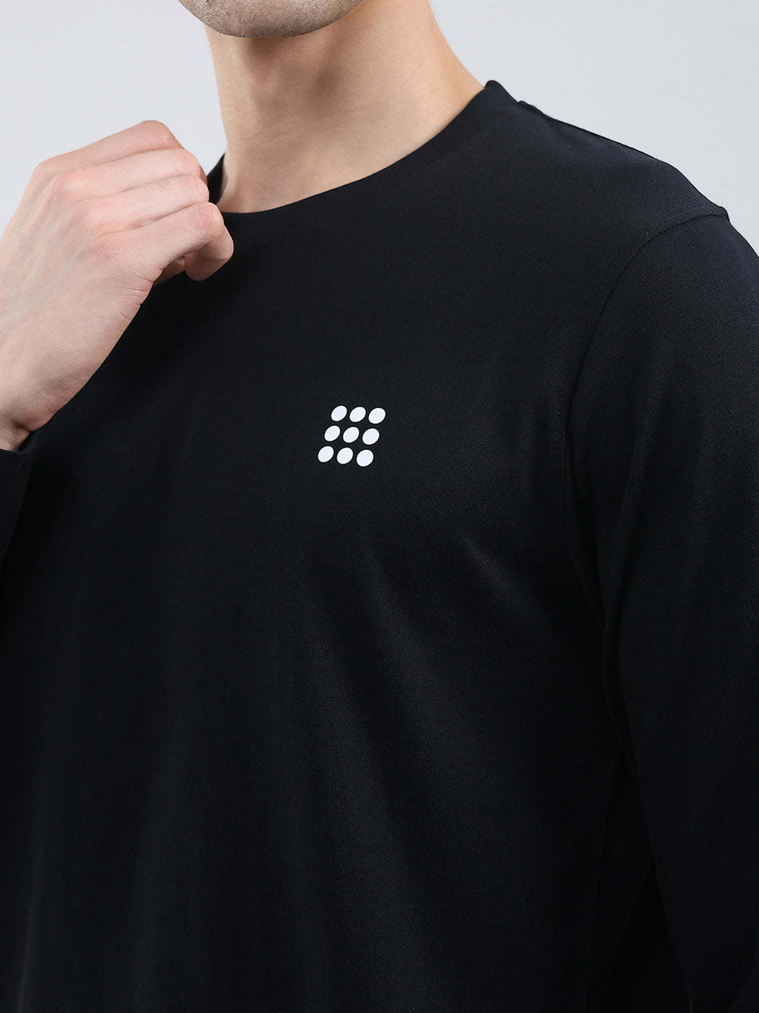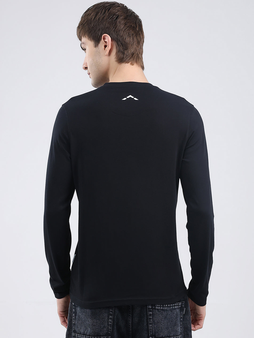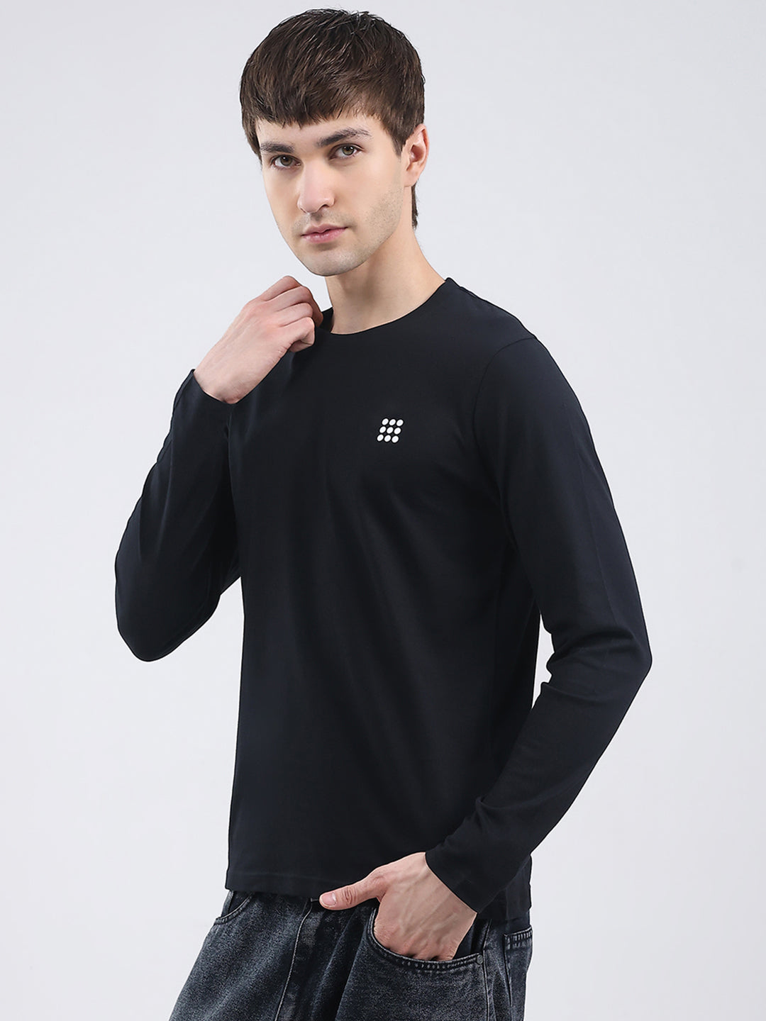 - Men Black Solid Round Neck Full Sleeve Winter T-Shirt