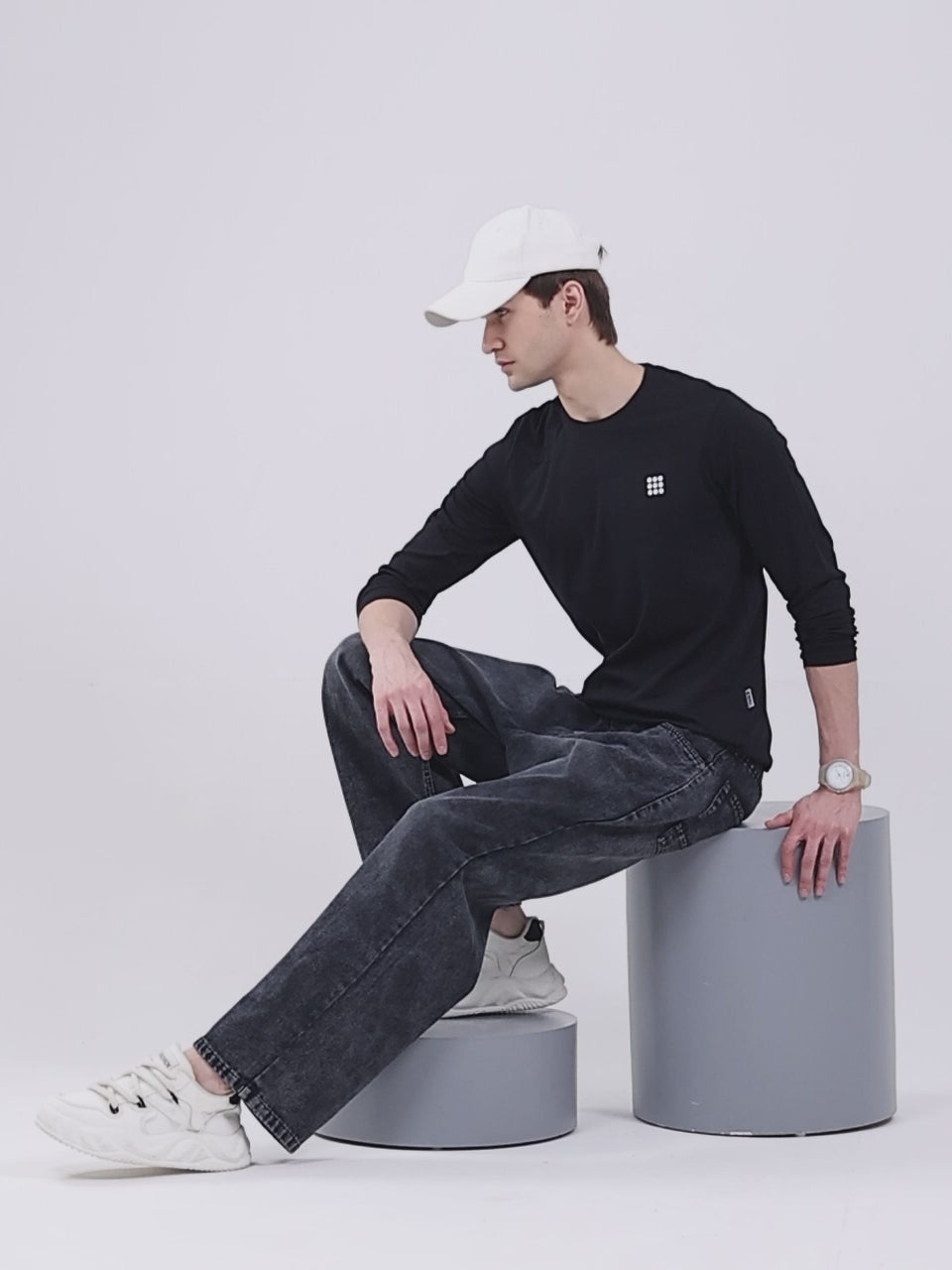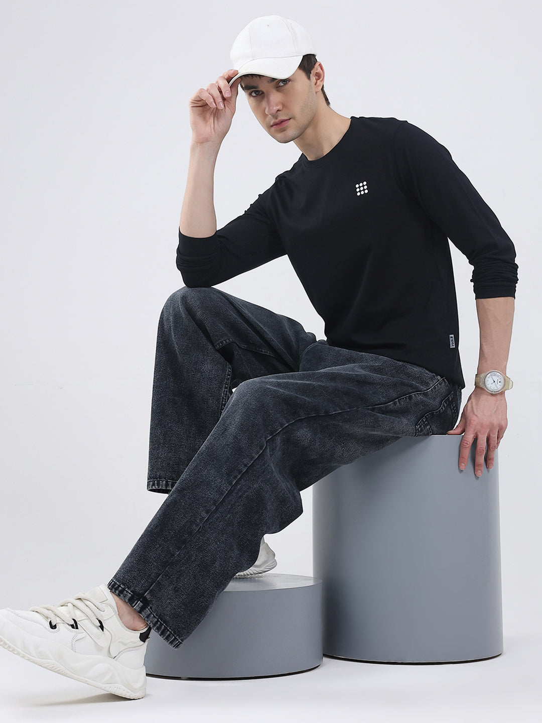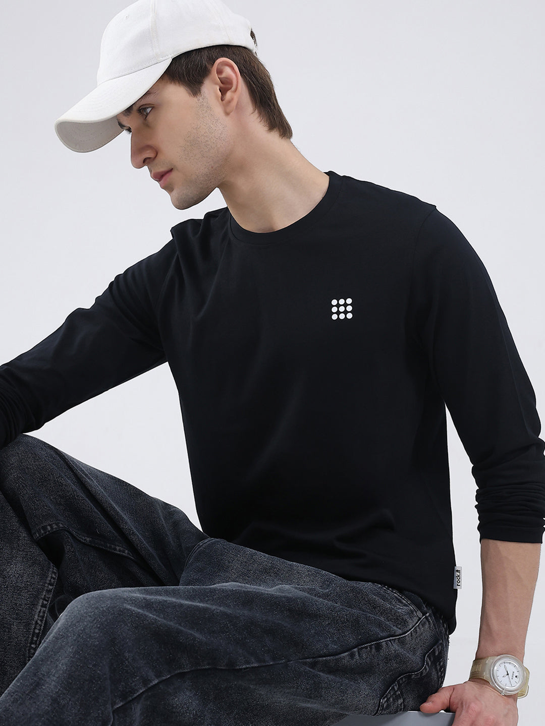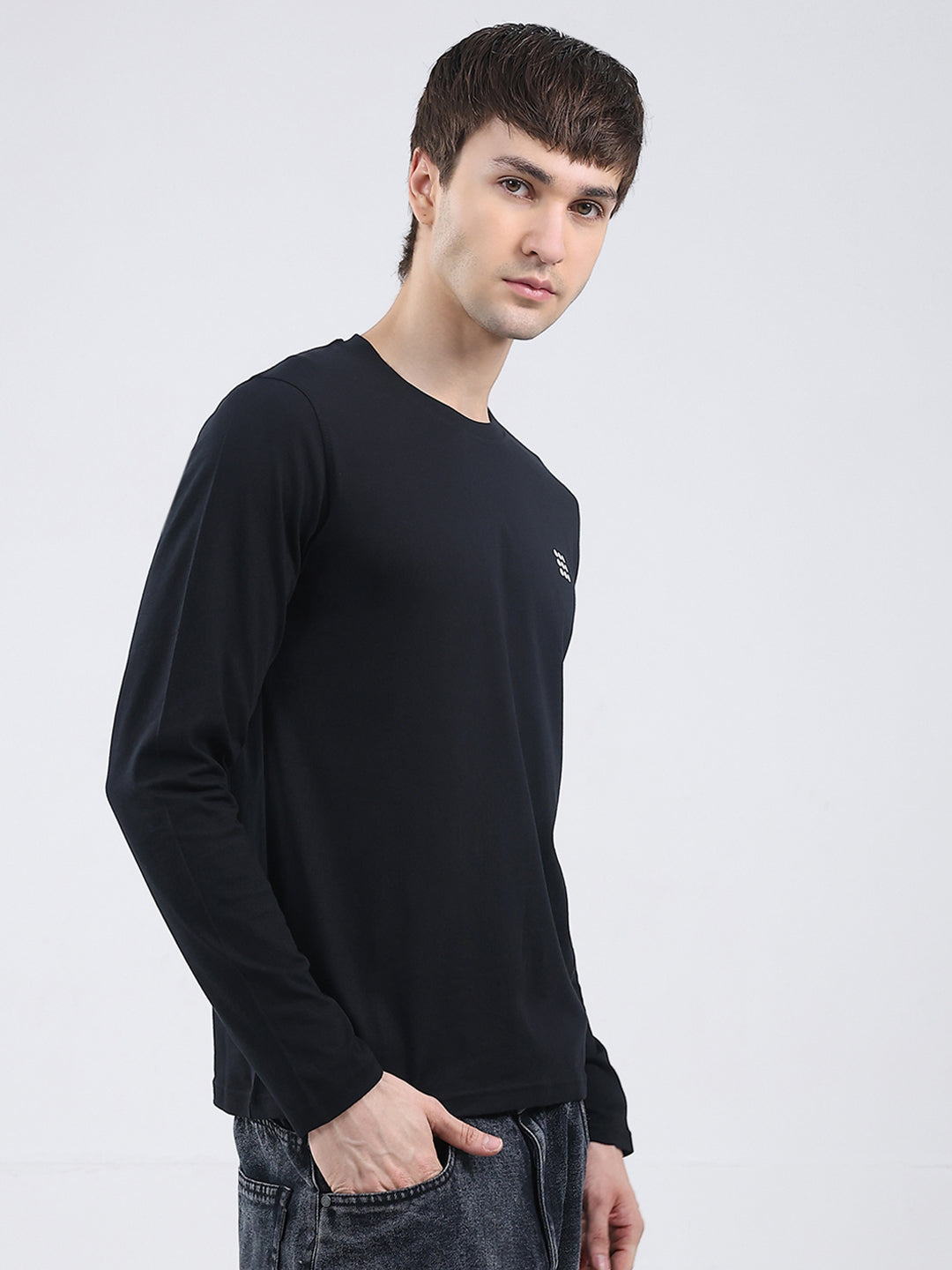 - Men Black Solid Round Neck Full Sleeve Winter T-Shirt