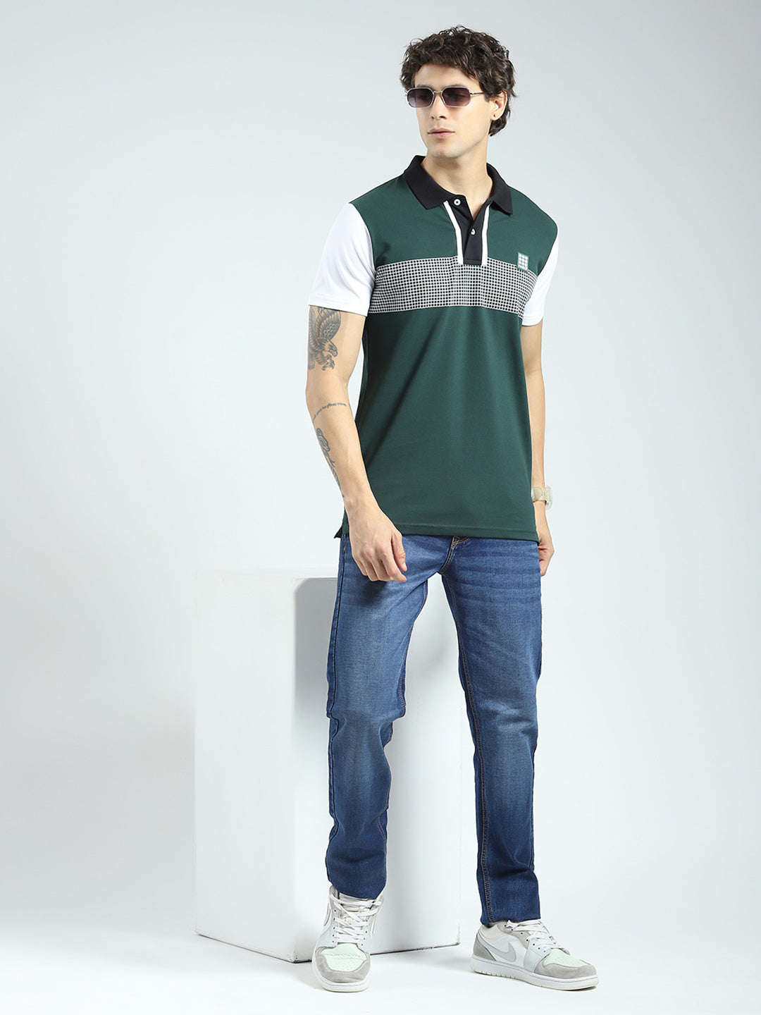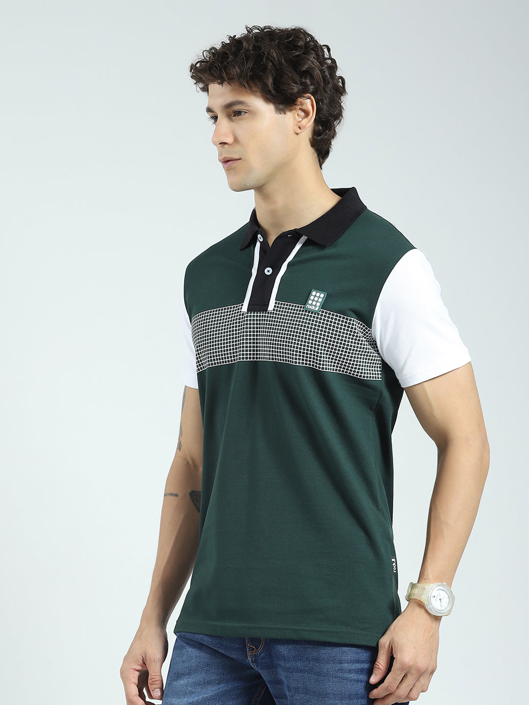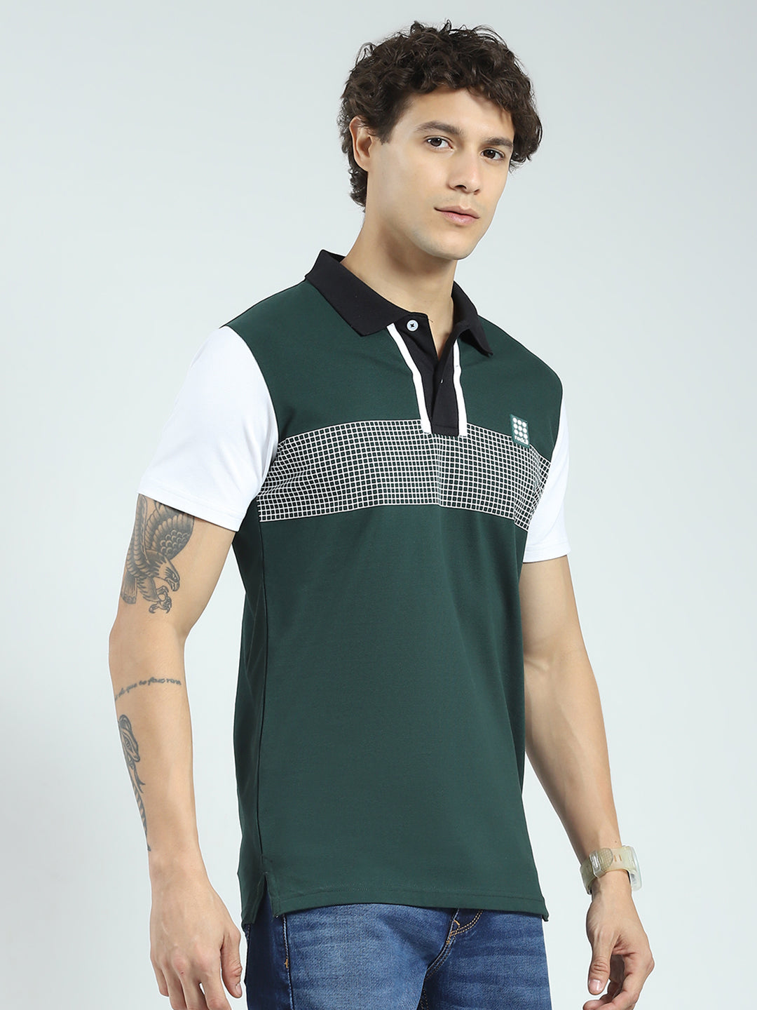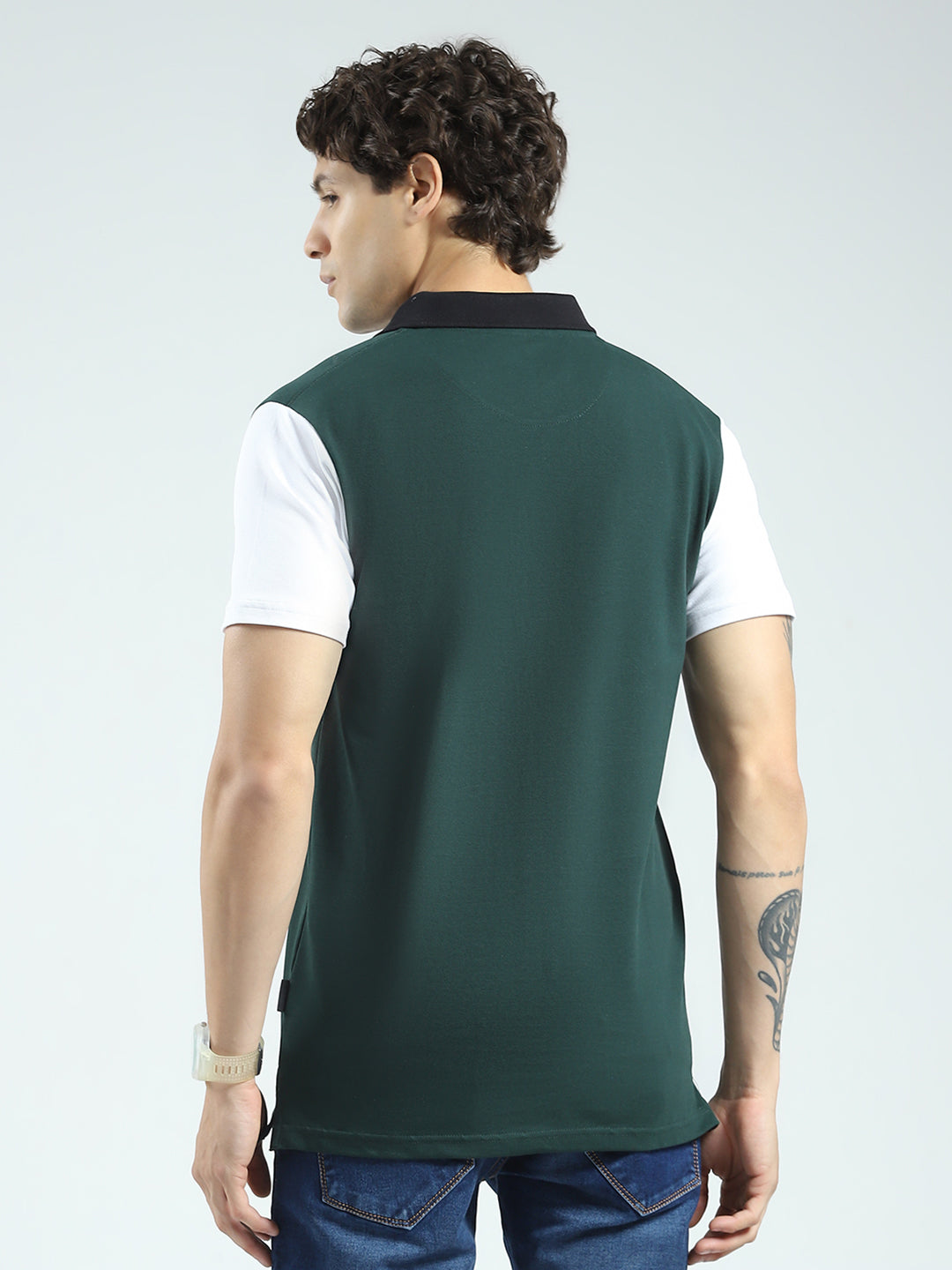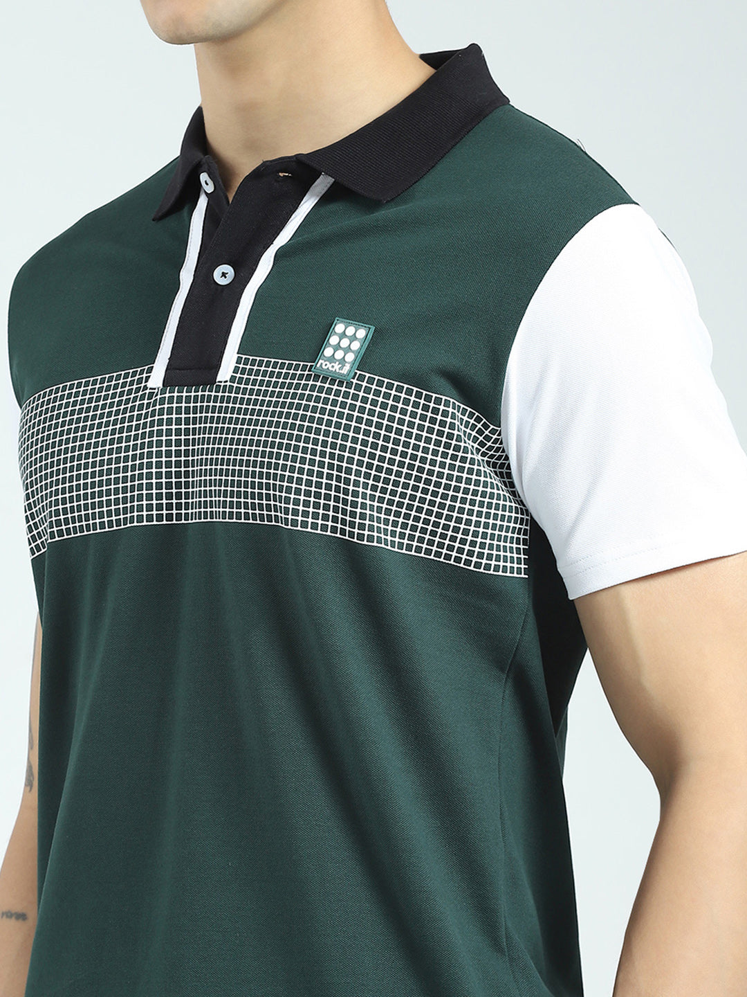 - Men Green Printed Collar Half Sleeve T-Shirt