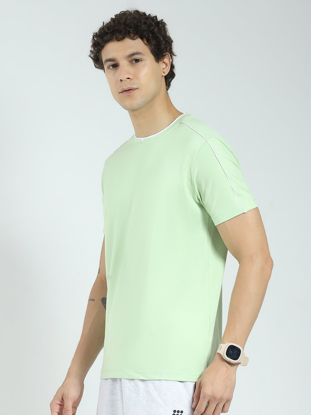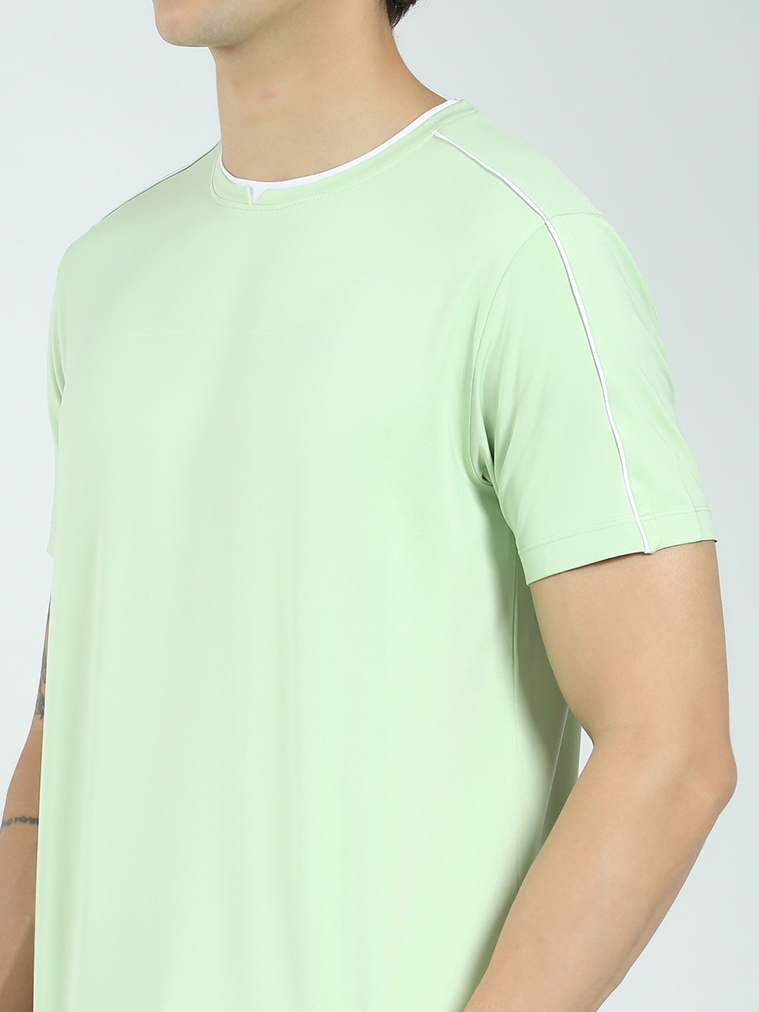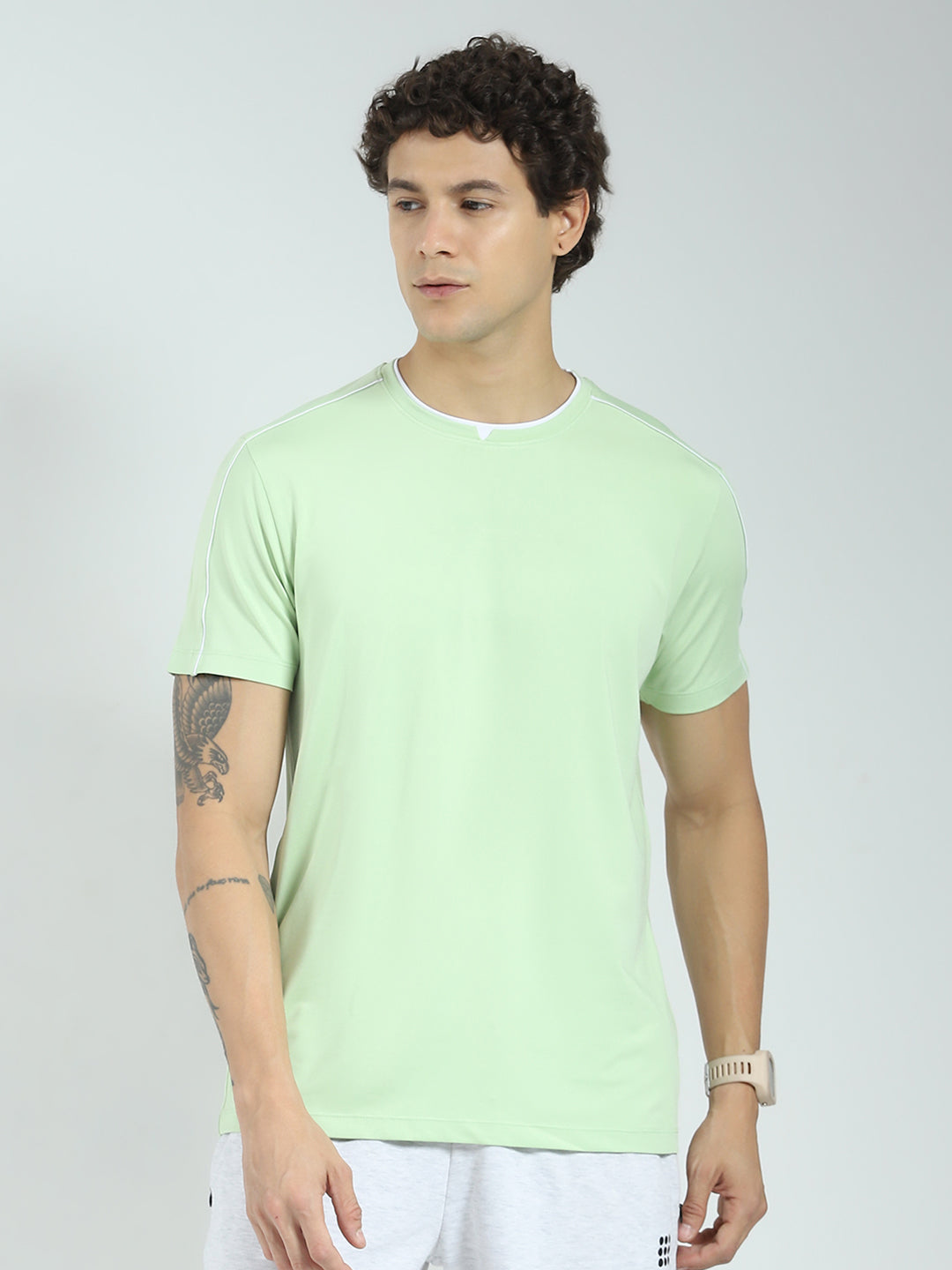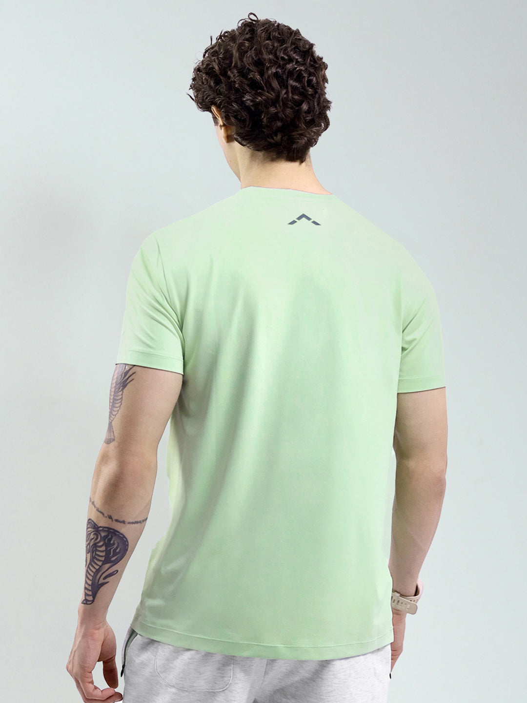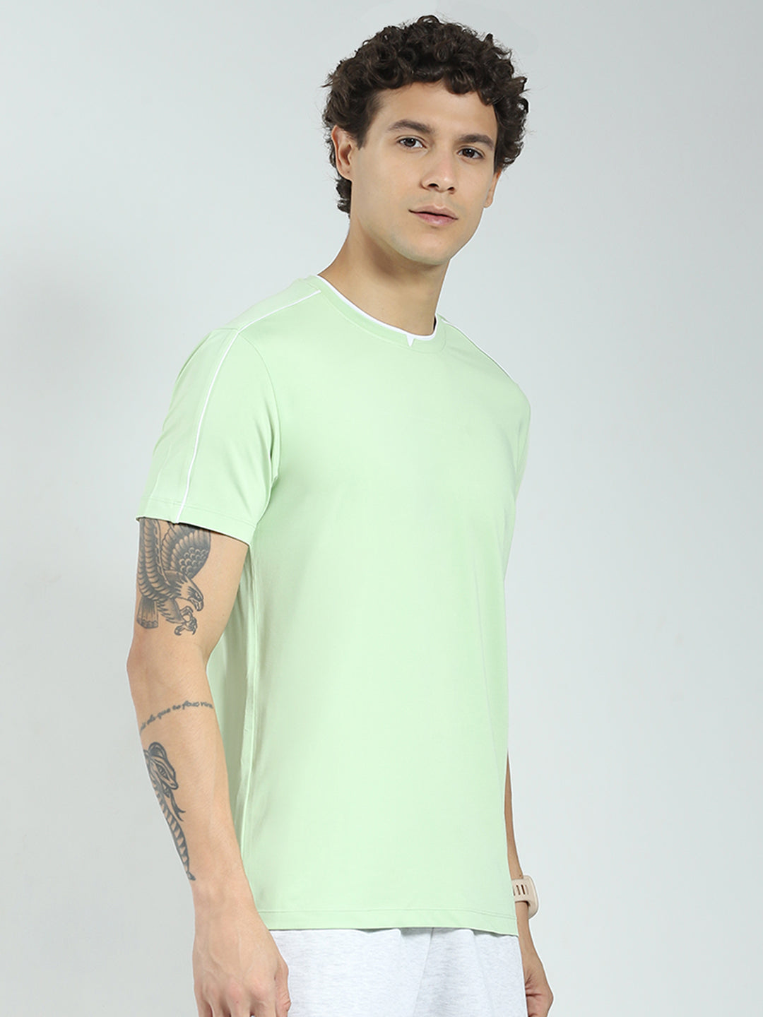 - Men Green Solid V Neck Half Sleeve T-Shirt