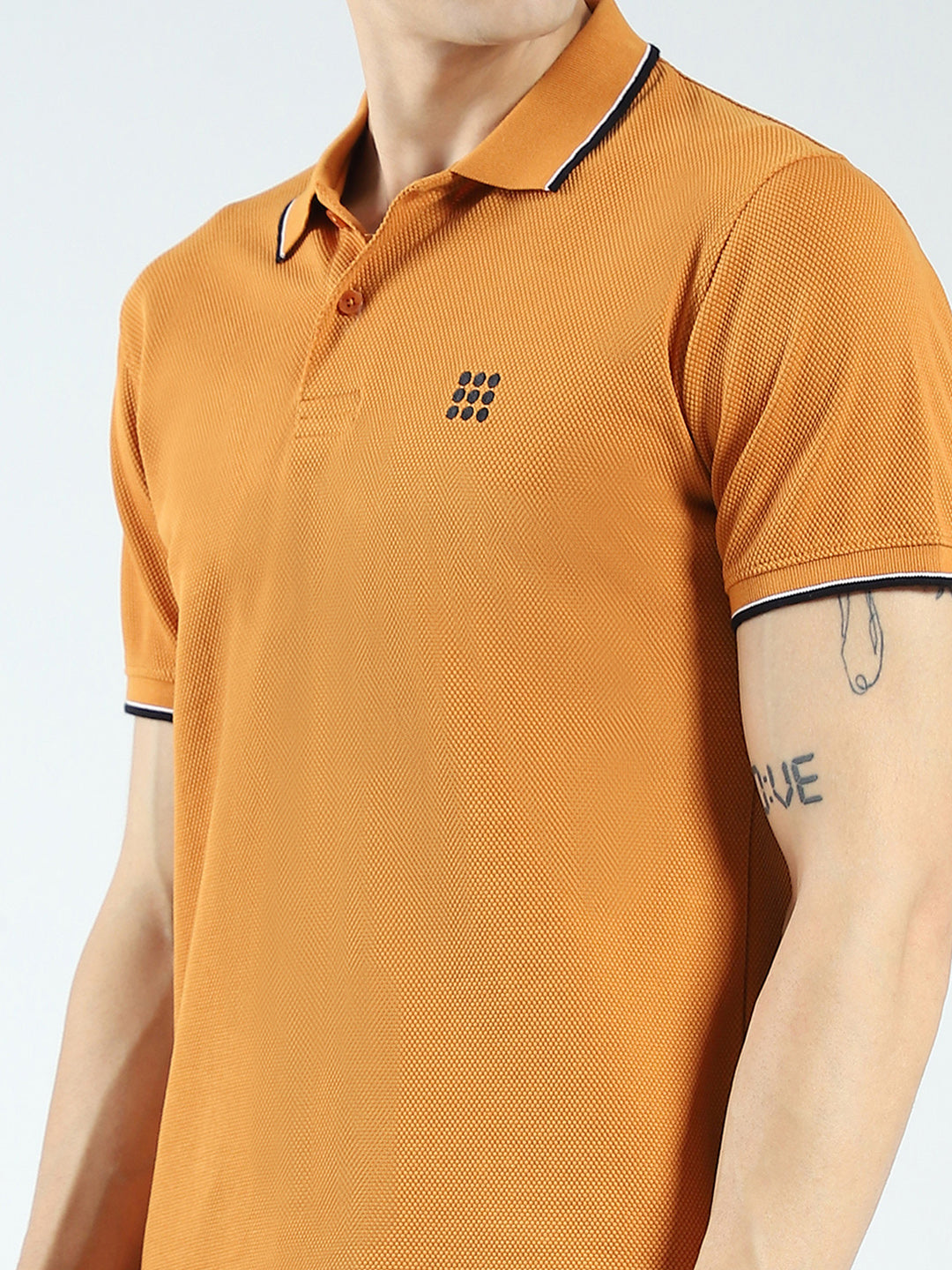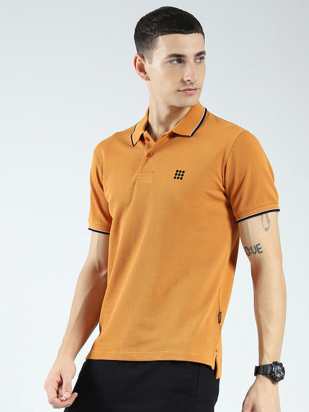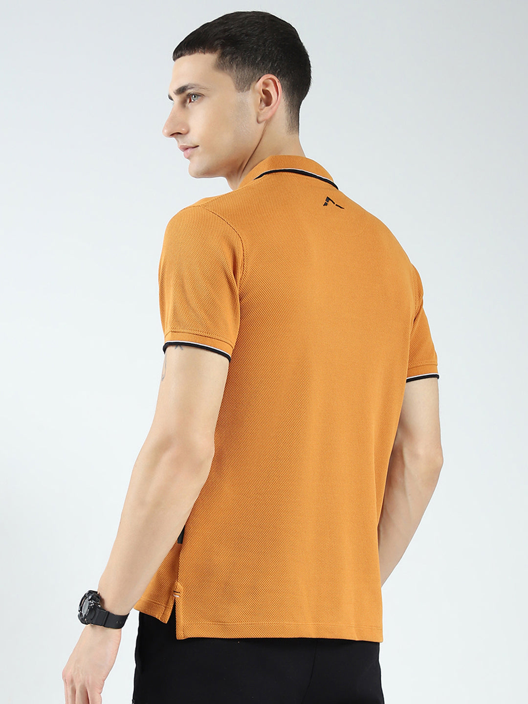 - Men Mustard Self Design Collar Half Sleeve T-Shirt