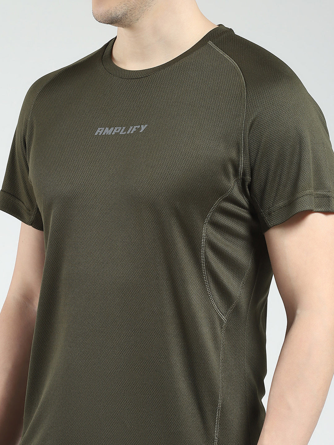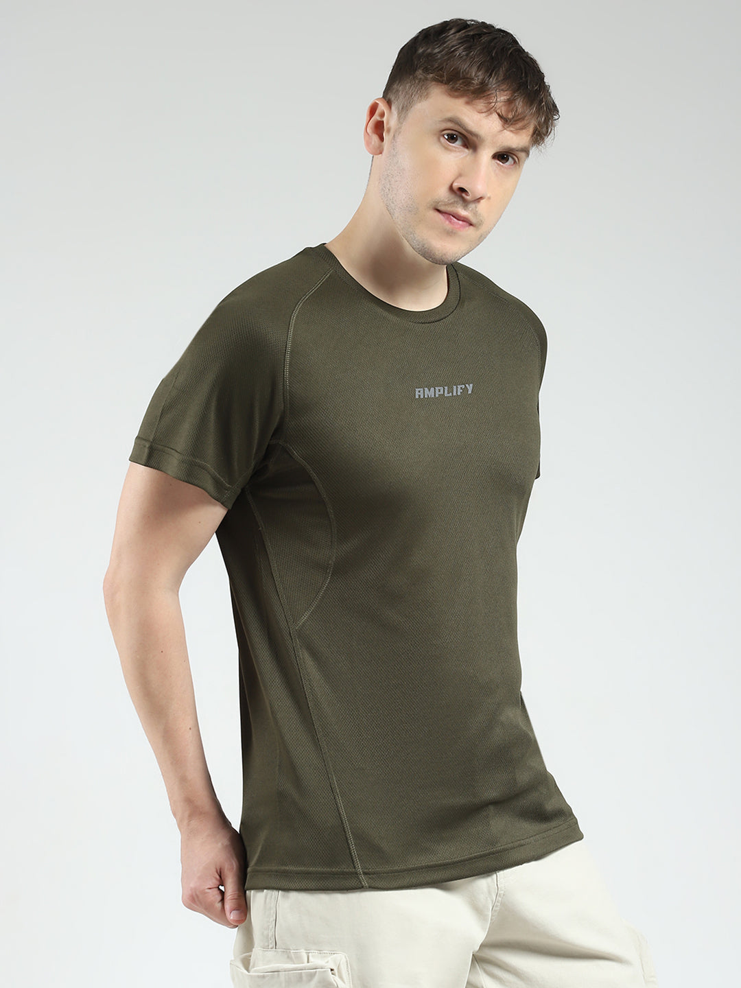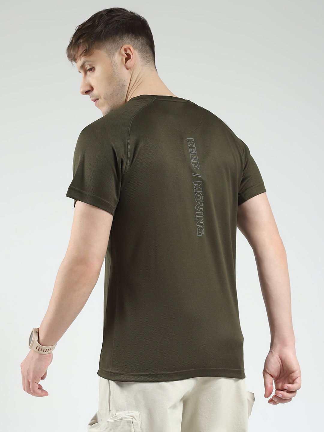 - Men Olive Printed V Neck Half Sleeve T-Shirt