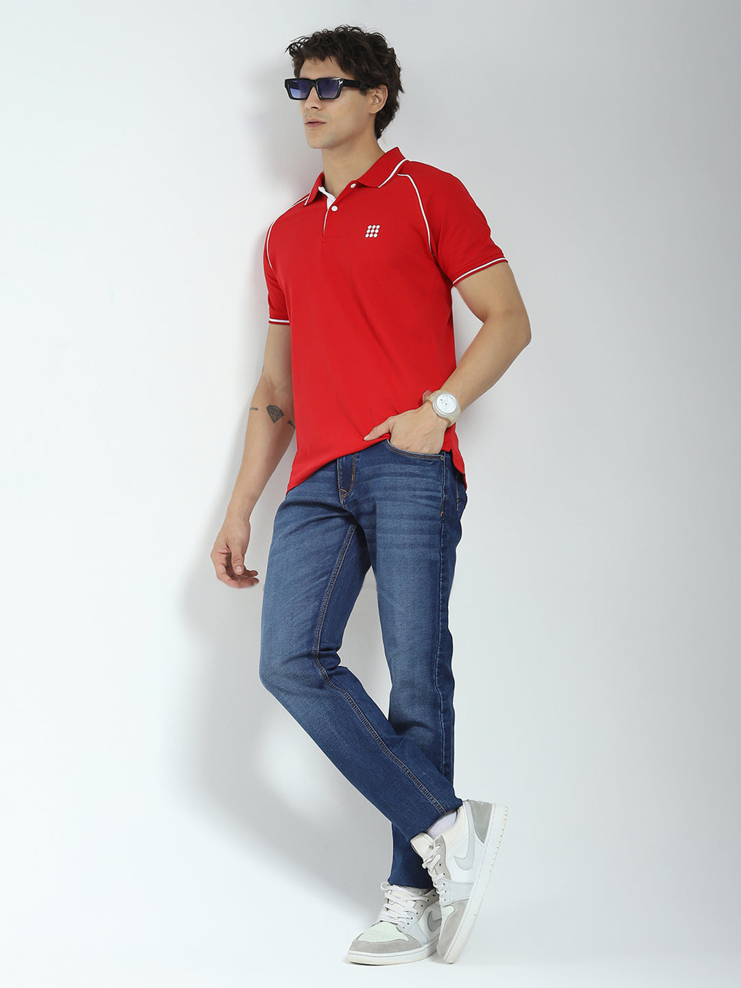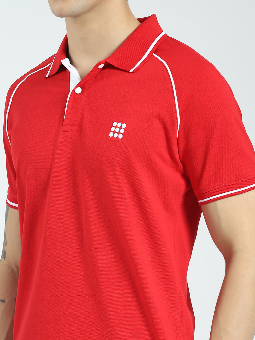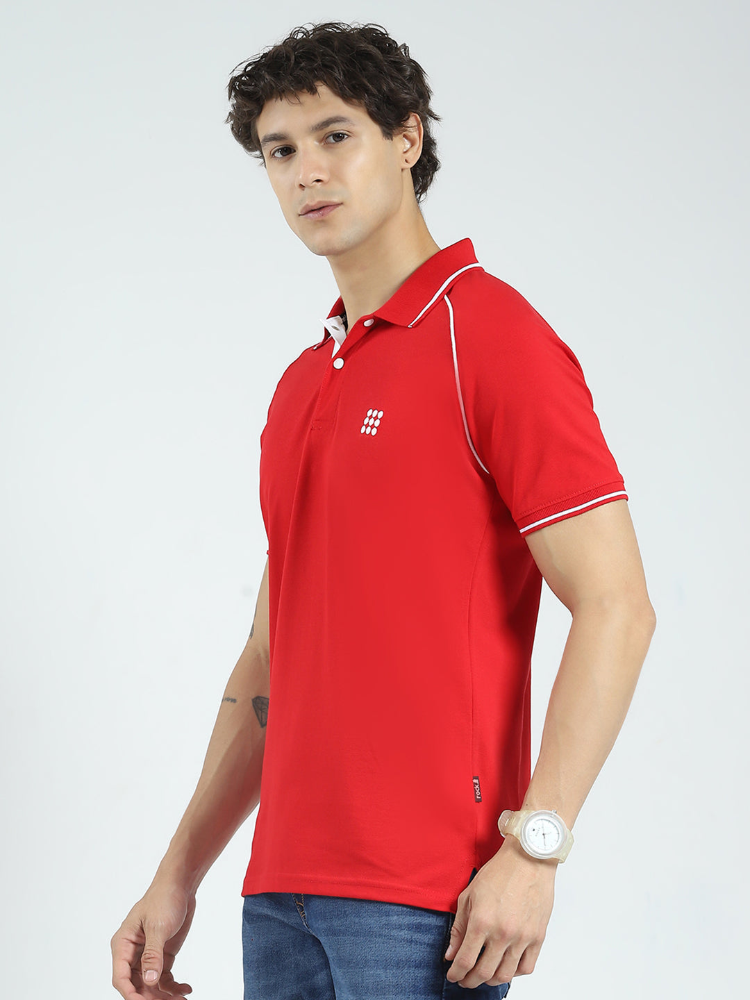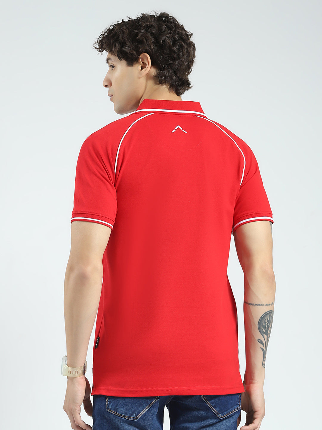 - Men Red Solid Collar Half Sleeve T-Shirt