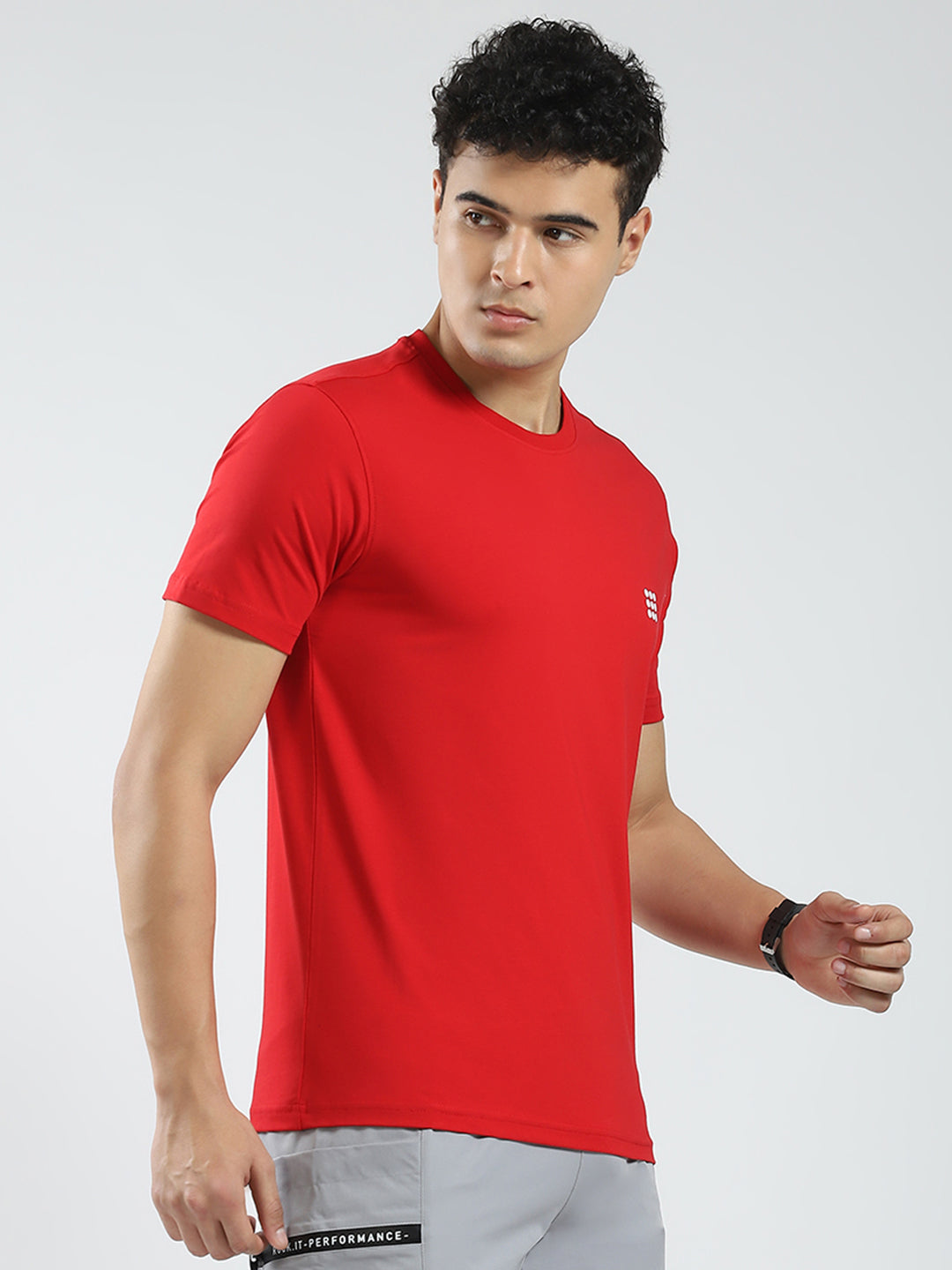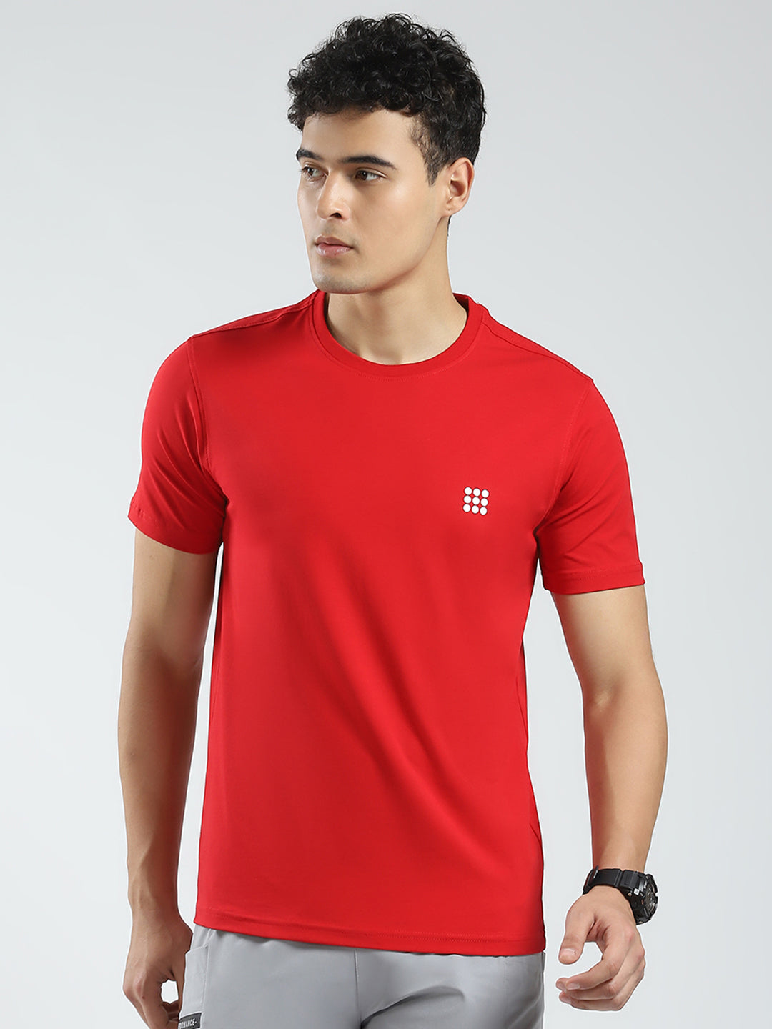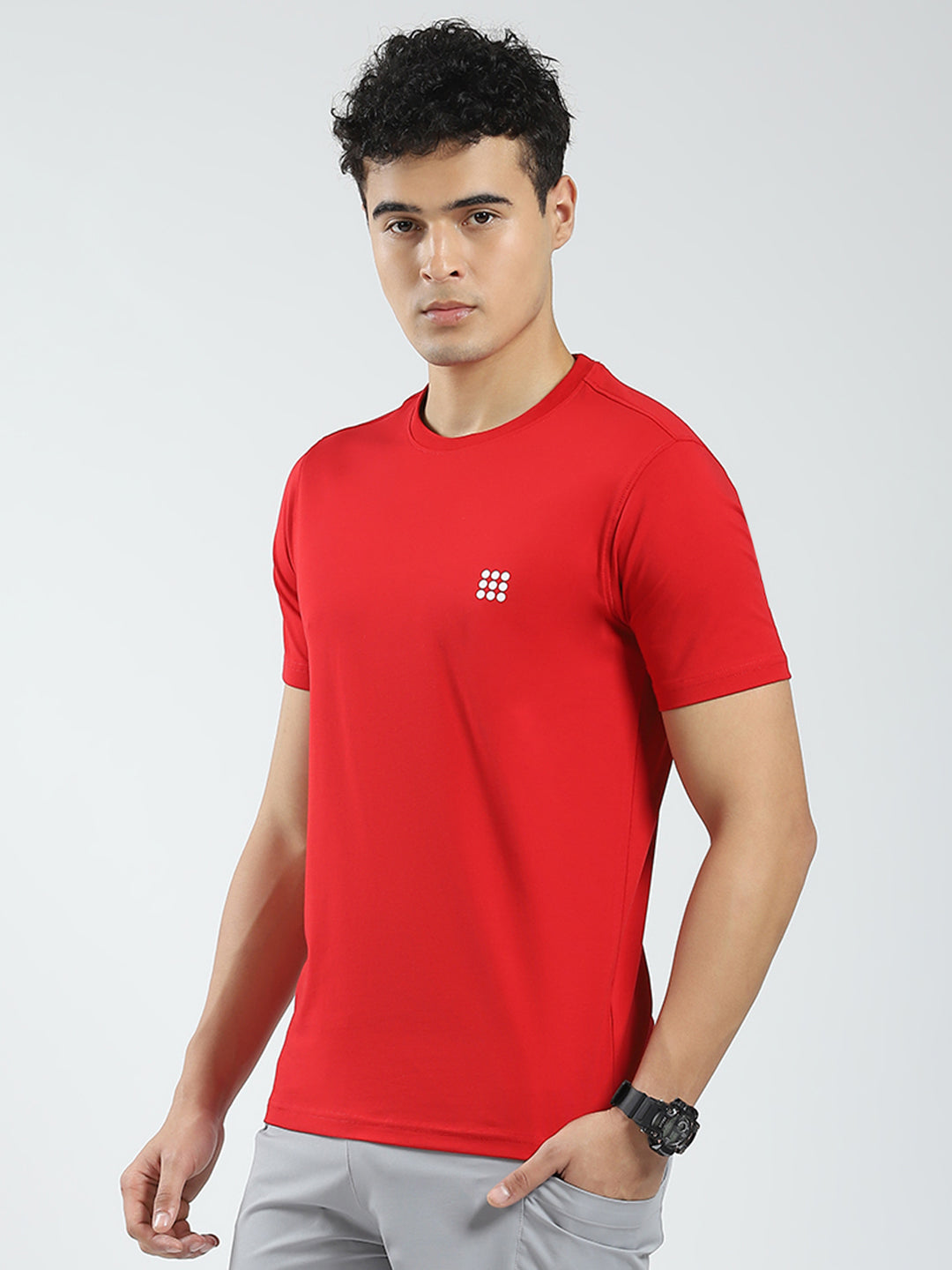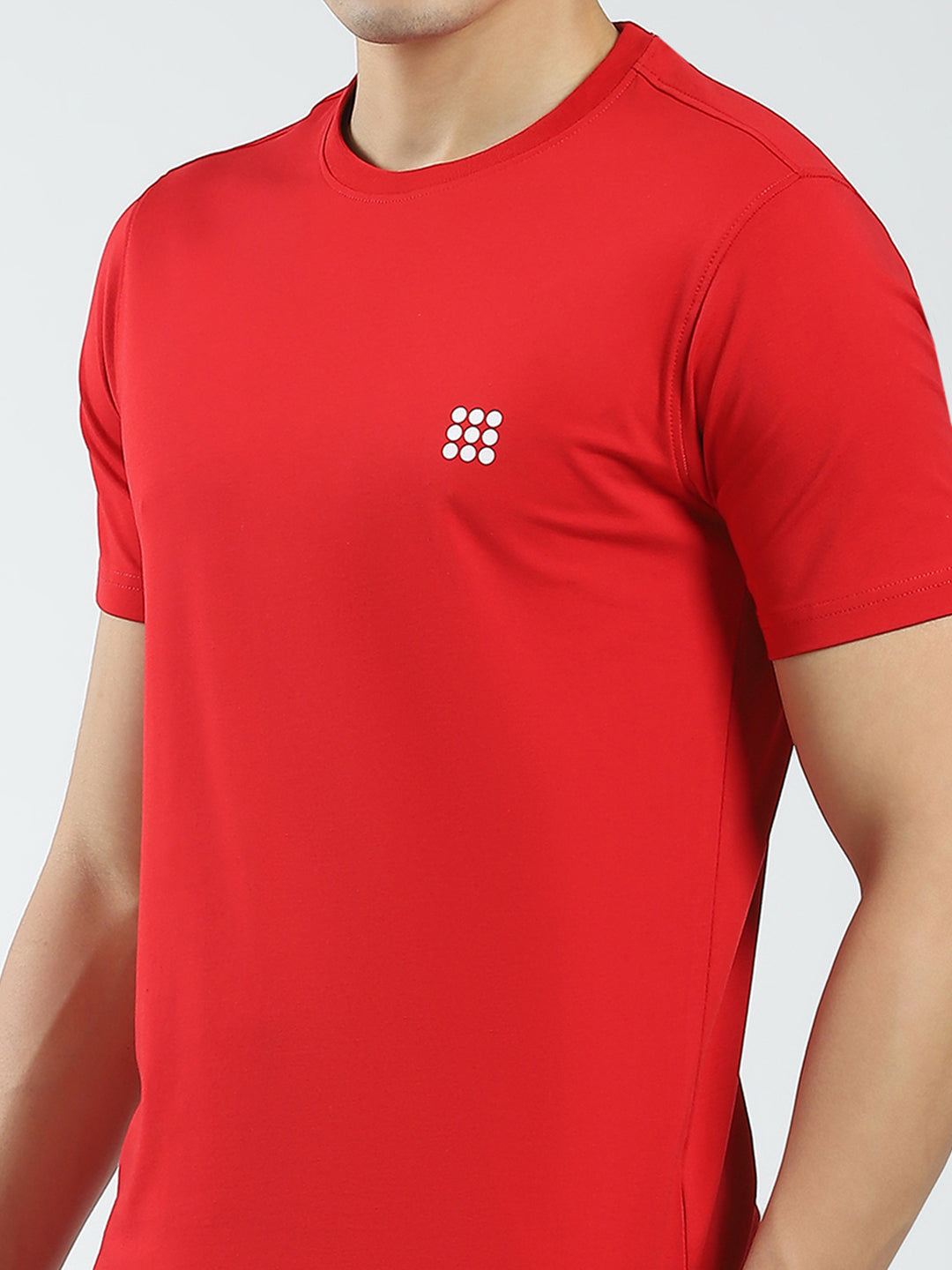 - Men Red Solid Round Neck Half Sleeve T-Shirt