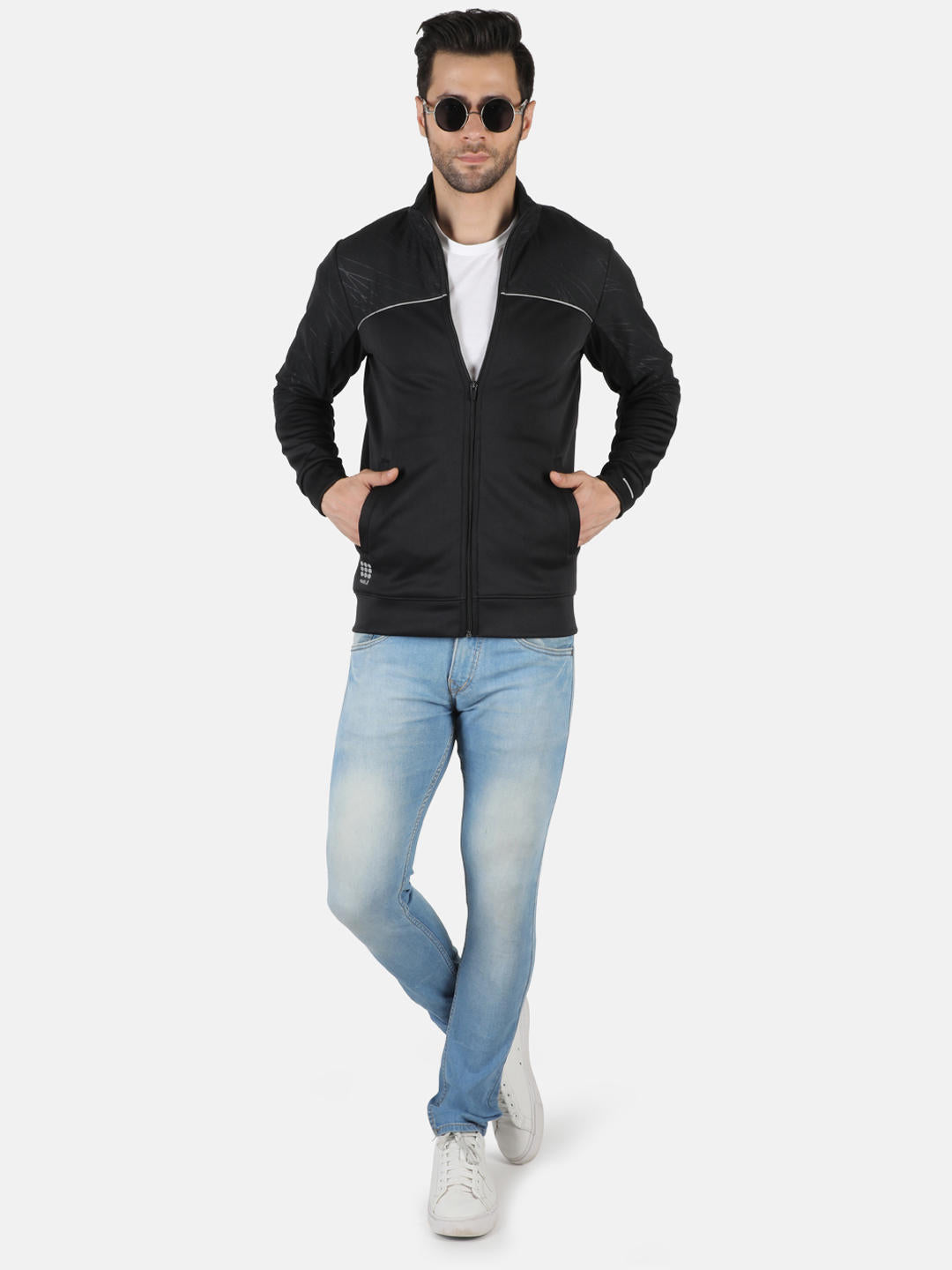- Men Black Regular Fit Full Sleeve Collar Neck Sweatshirt