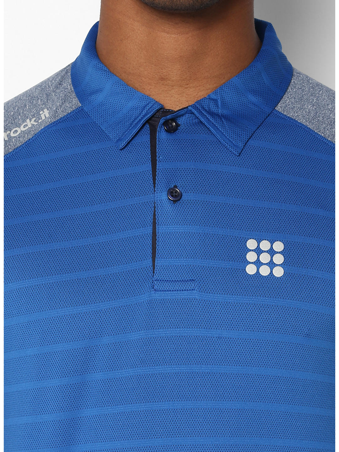 - Men Blue Grey Collar Smart Fit T-Shirt