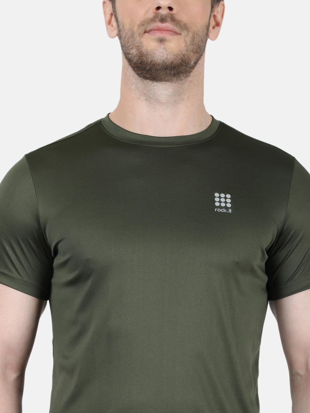 - Men Forest Green Round Neck Regular Fit T-Shirt