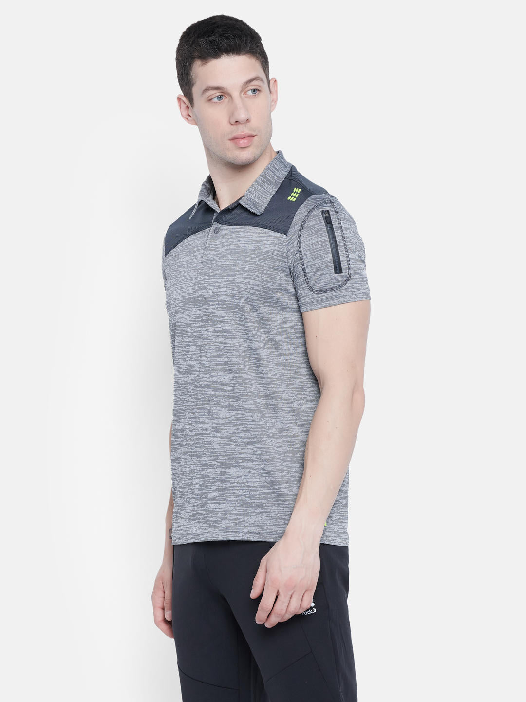 - Men Grey Collar Regular Fit T-shirt