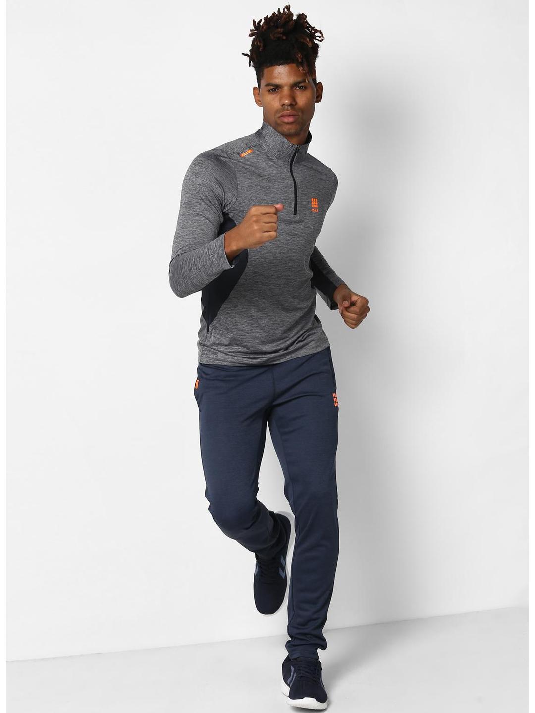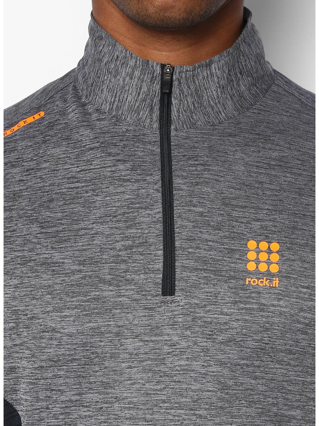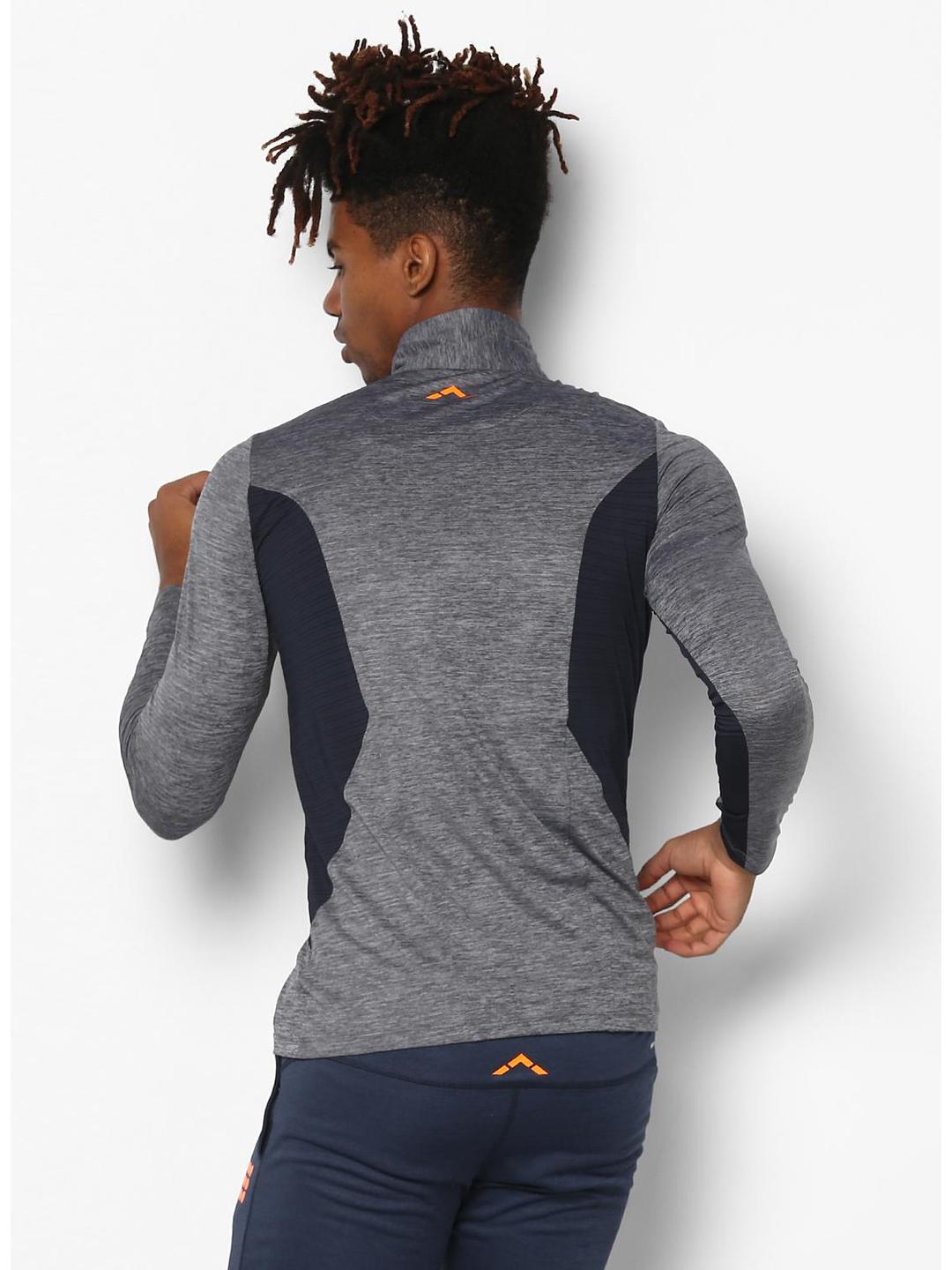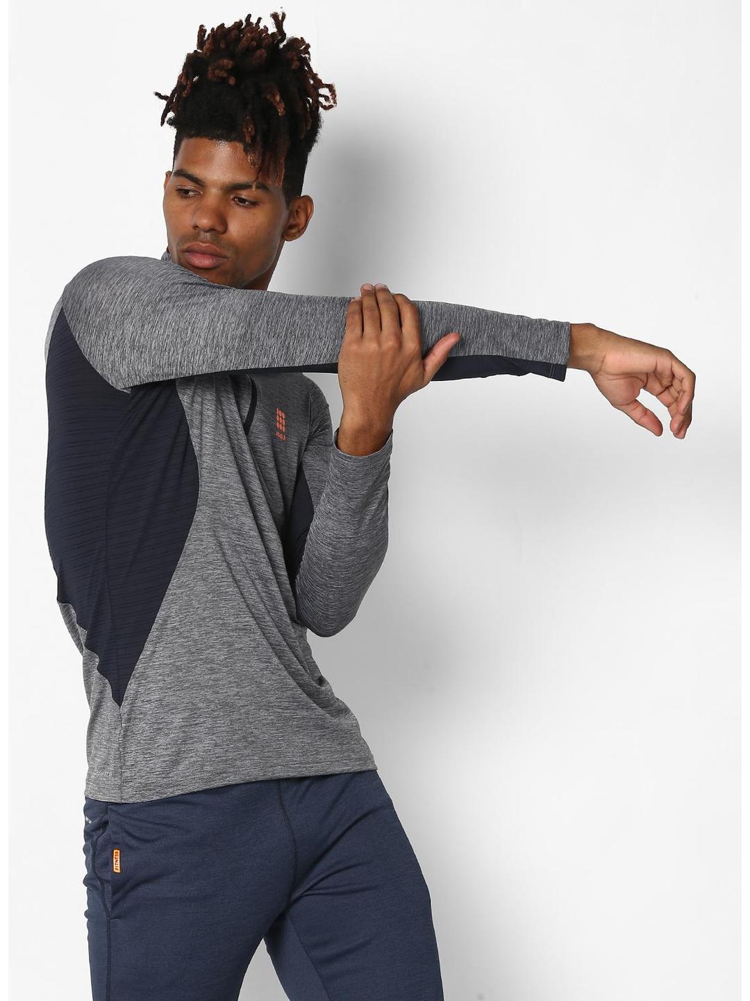 - Men Grey Navy Collar Smart Fit T-Shirt