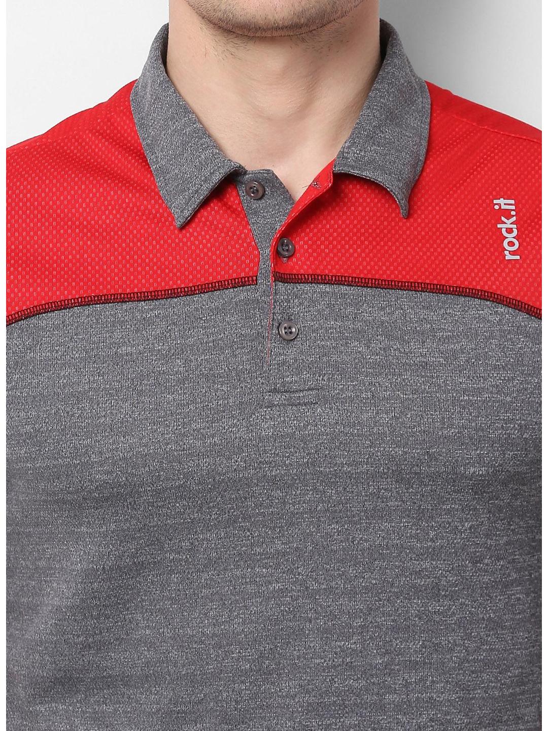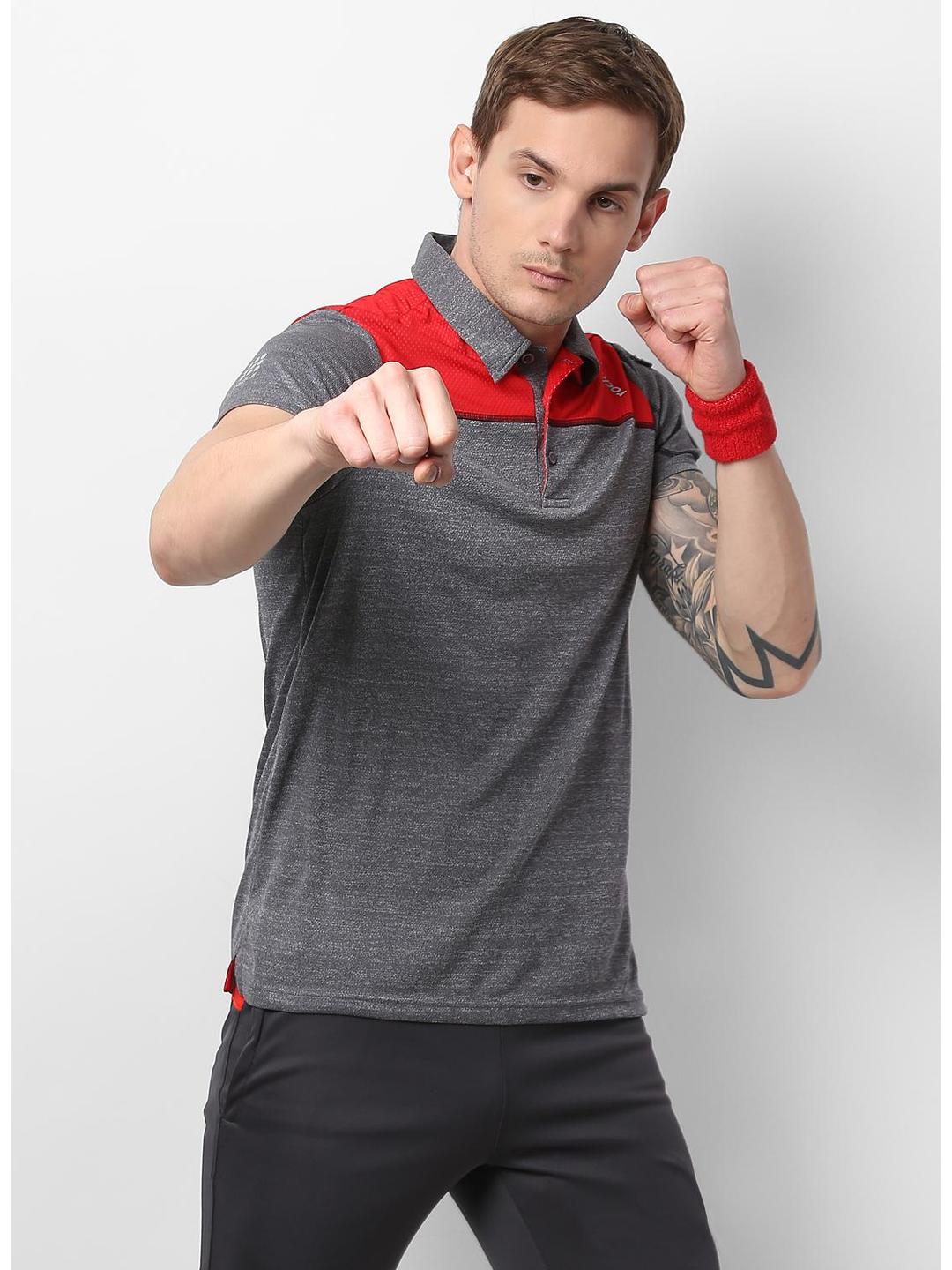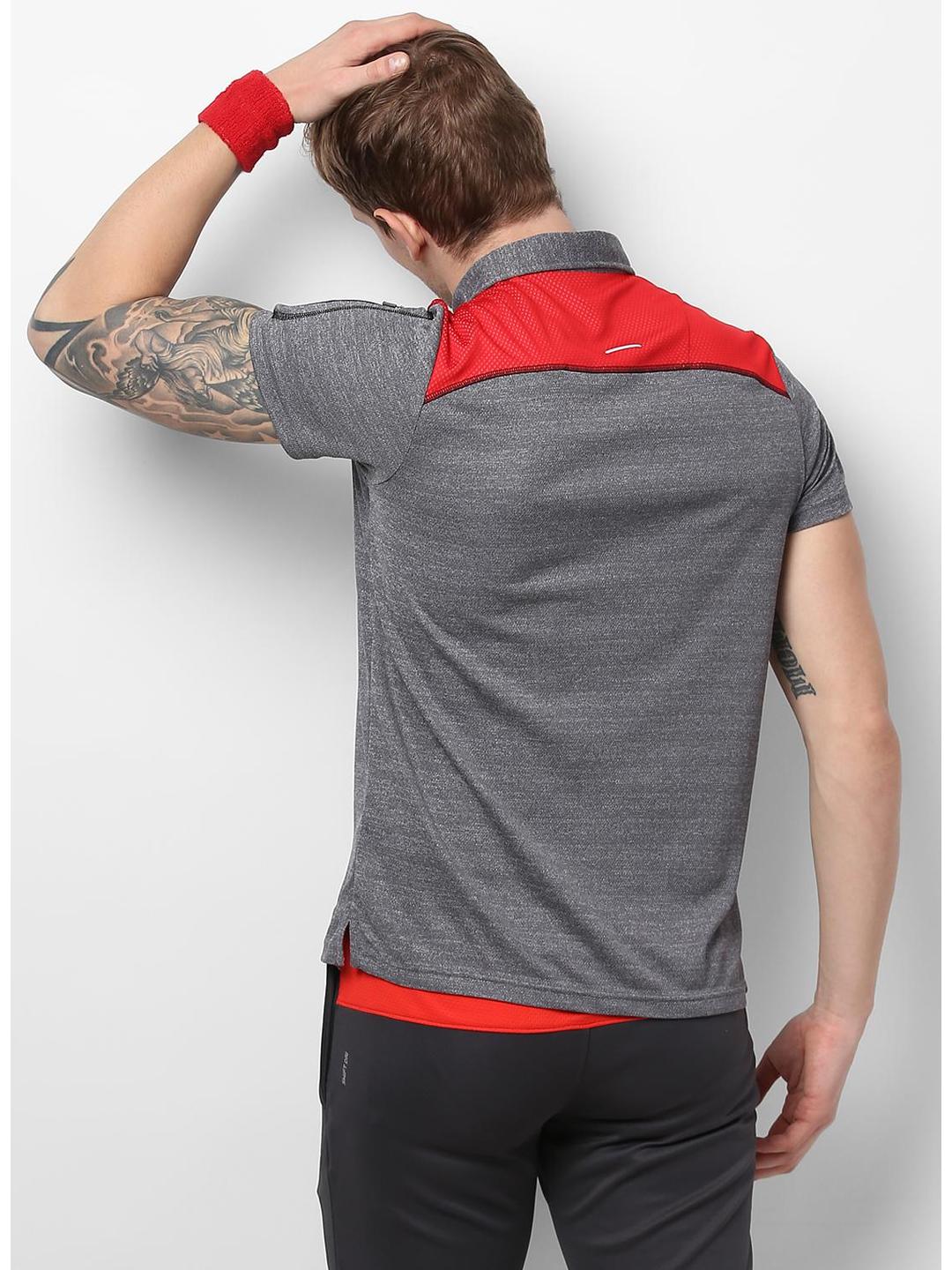 - Men Grey Red Collar Smart Fit T-Shirt