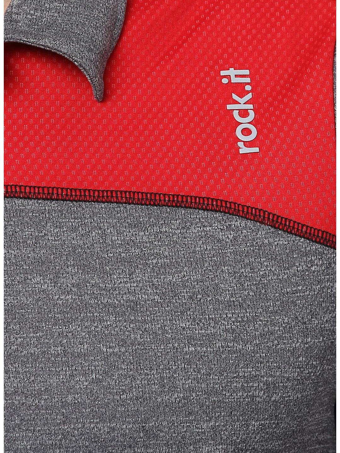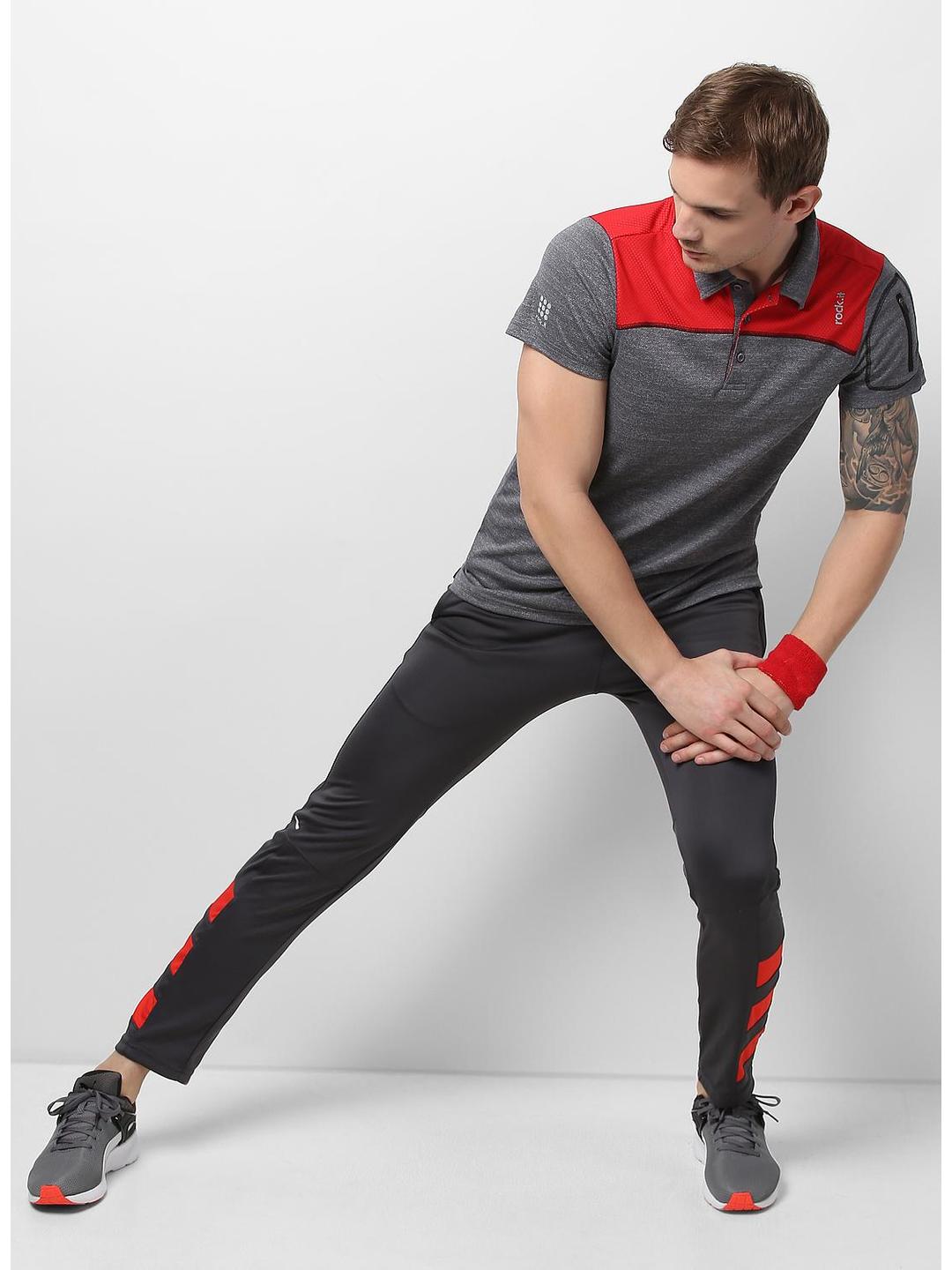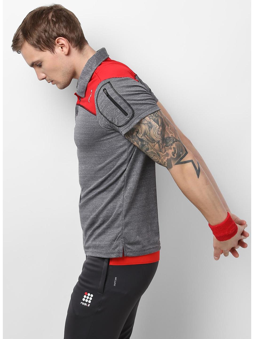 - Men Grey Red Collar Smart Fit T-Shirt